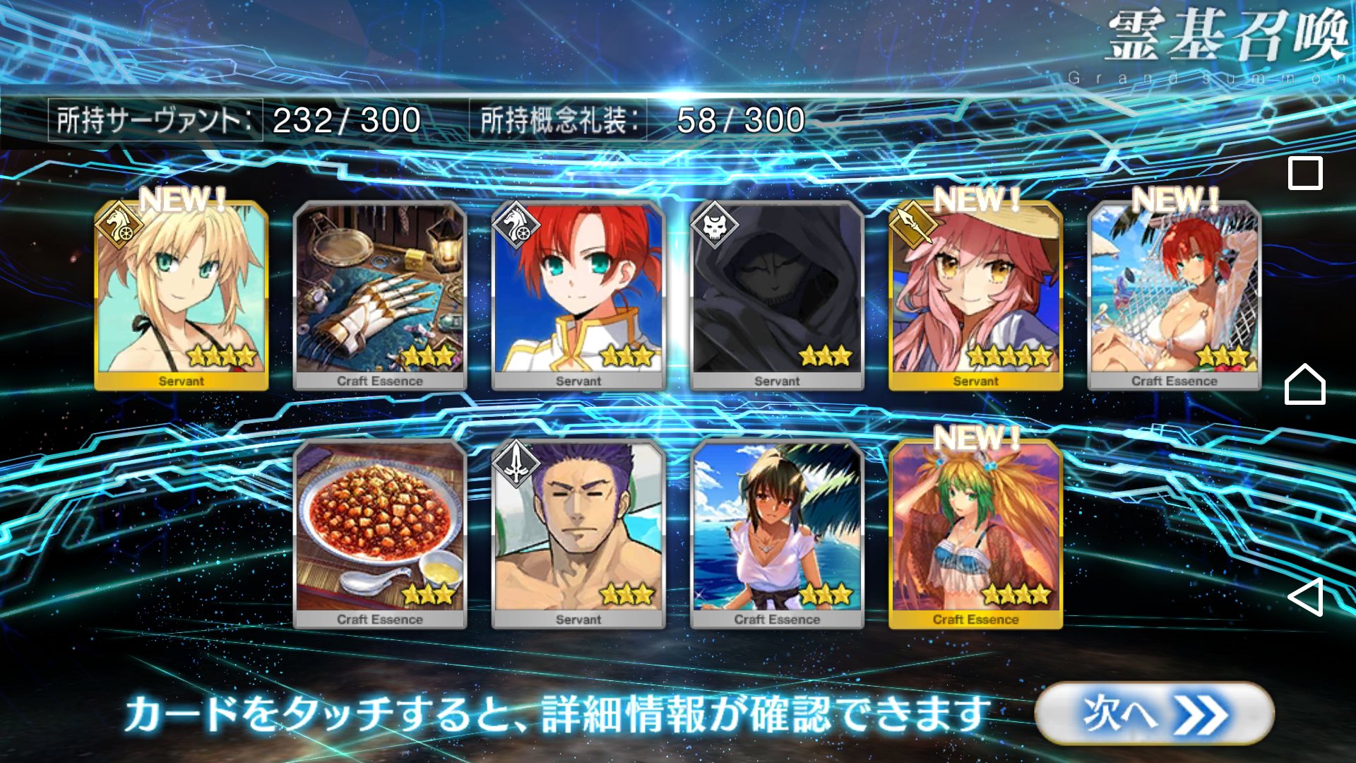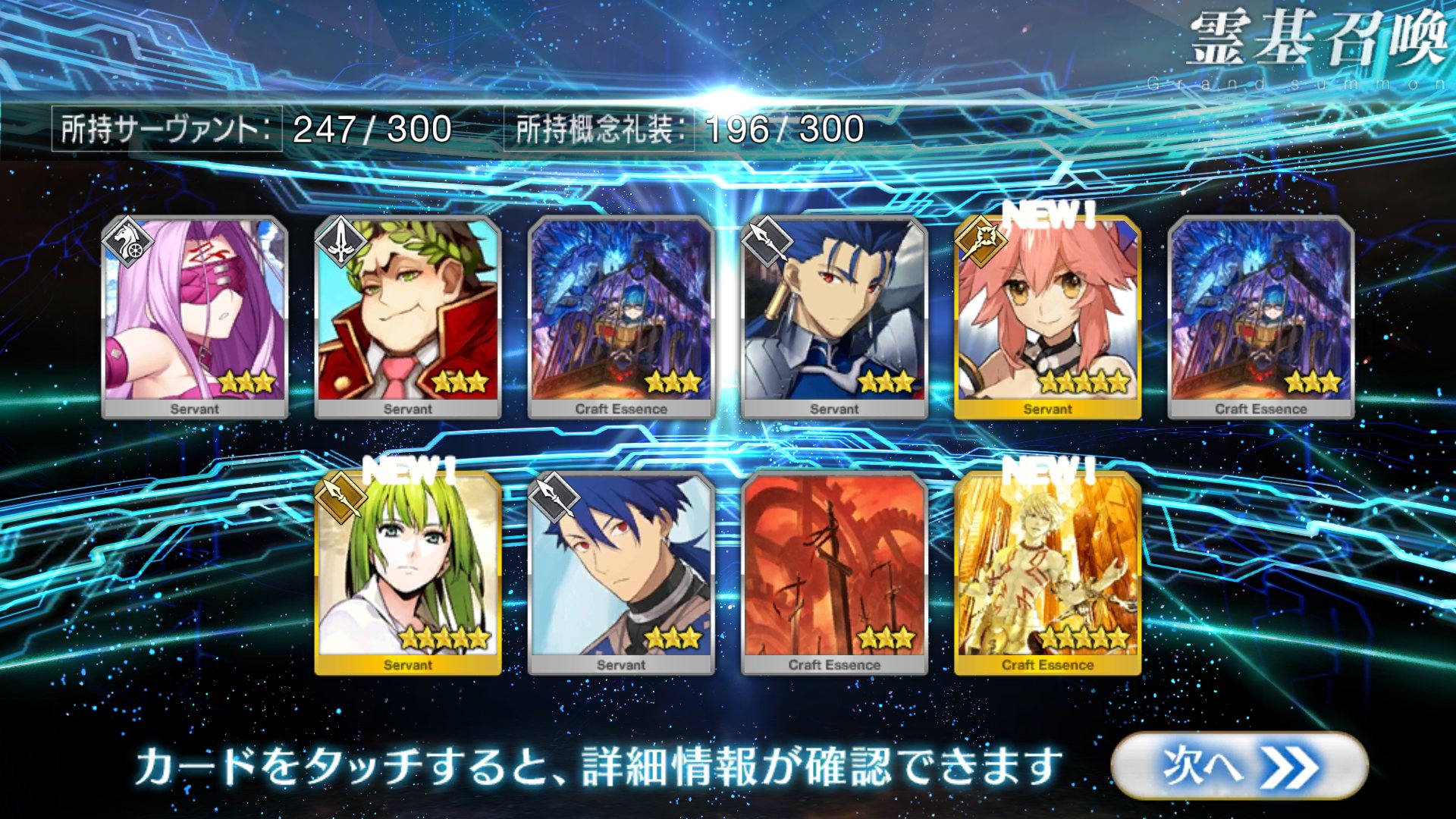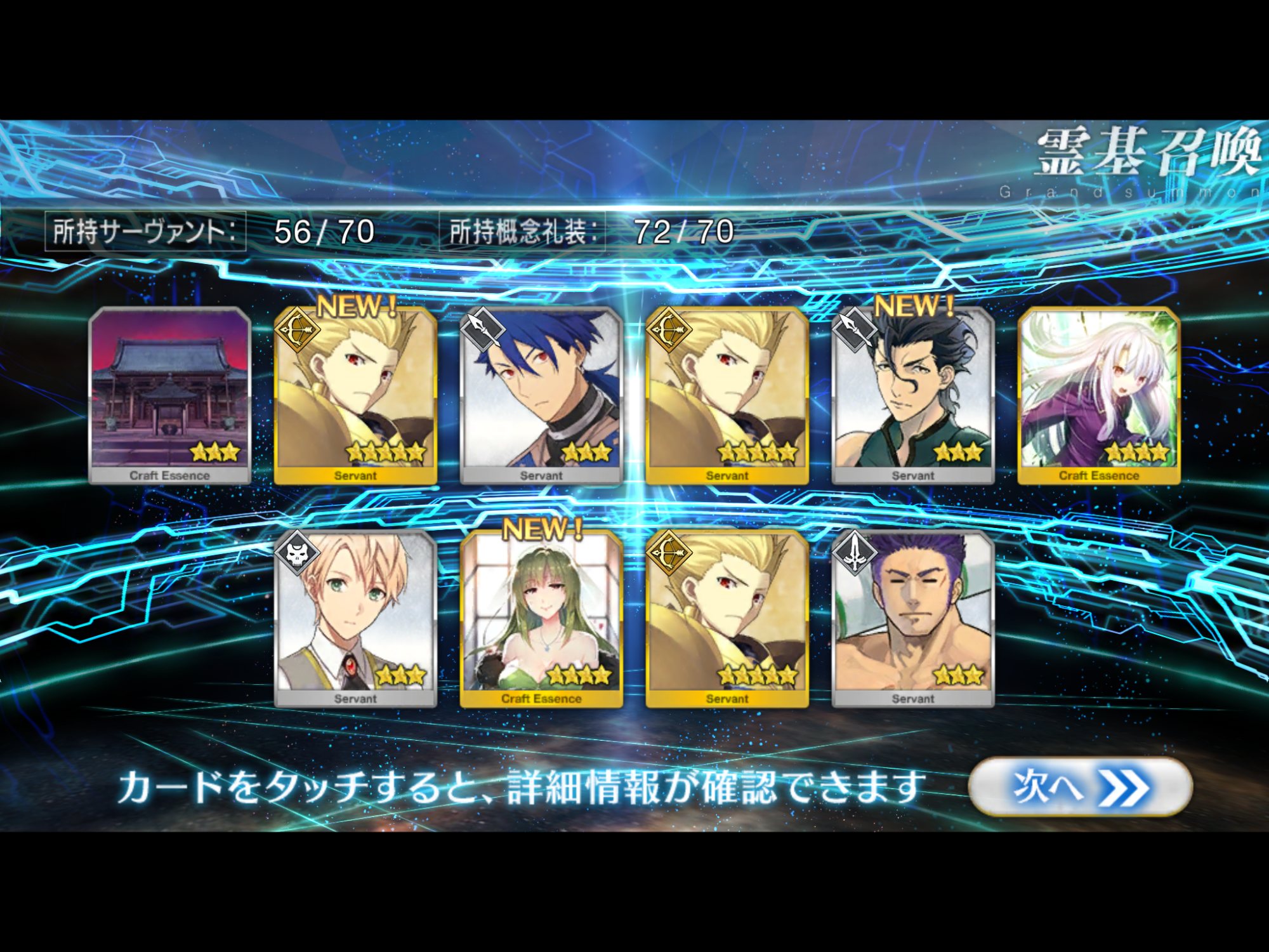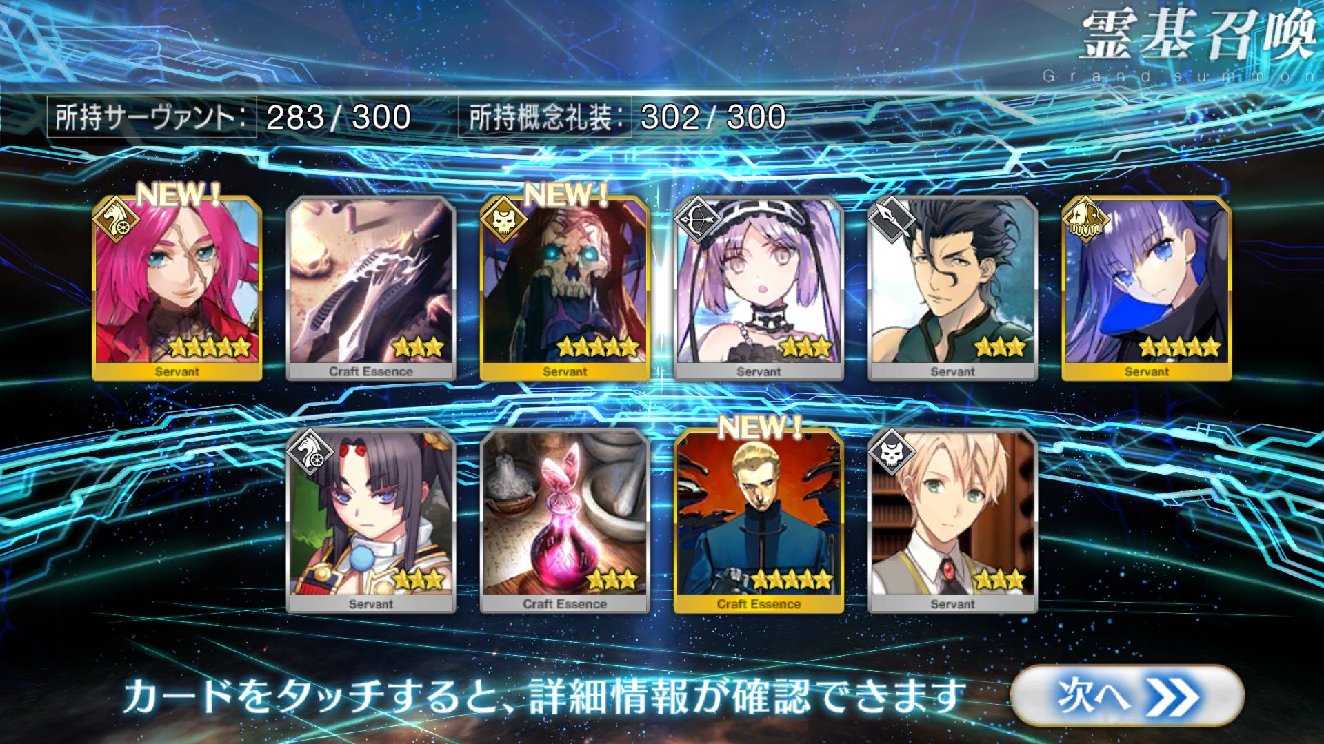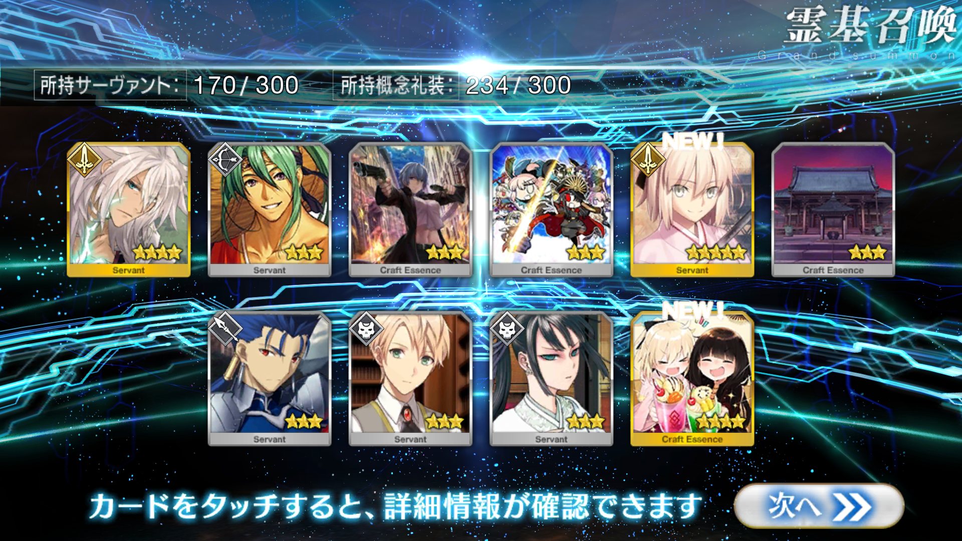 すり抜けてくれたのはずっと欲しかったジークフリート、あと三蔵は宝具を2にできた。