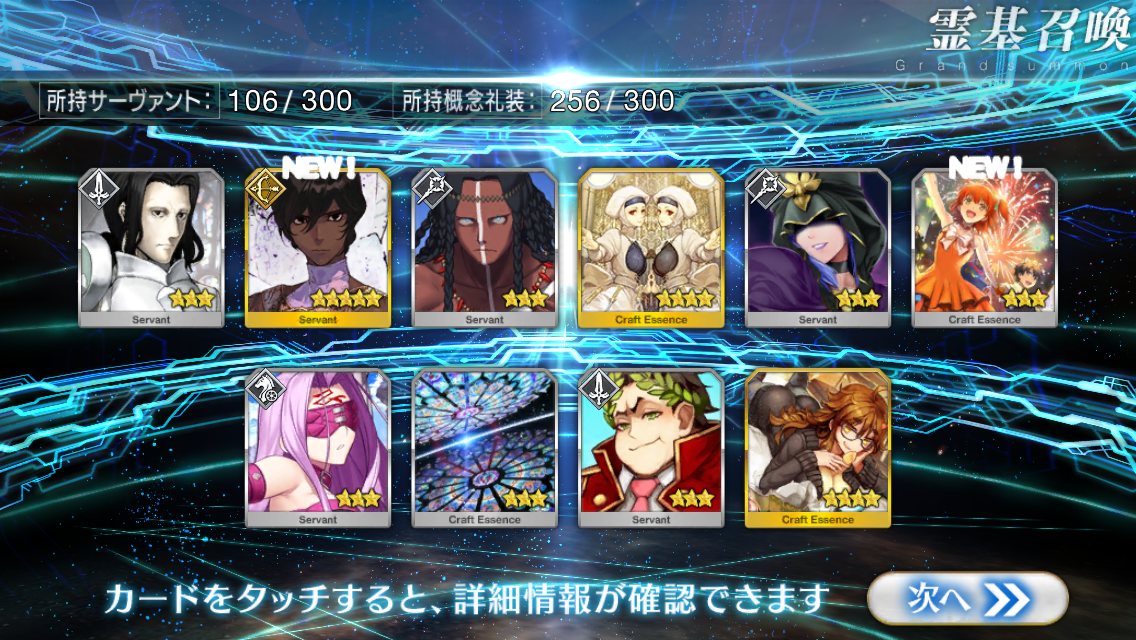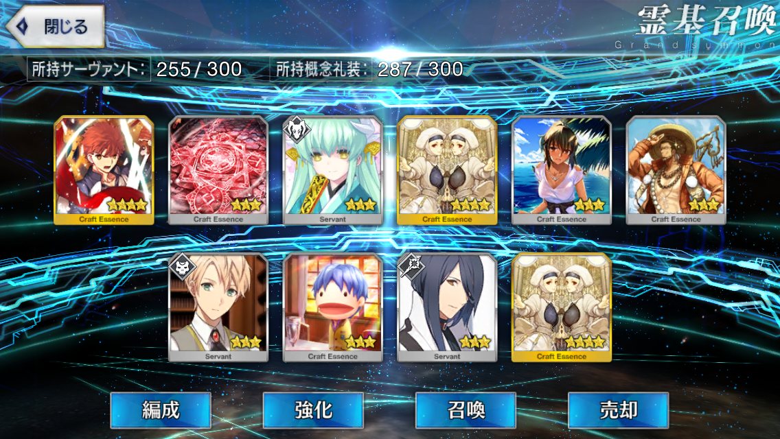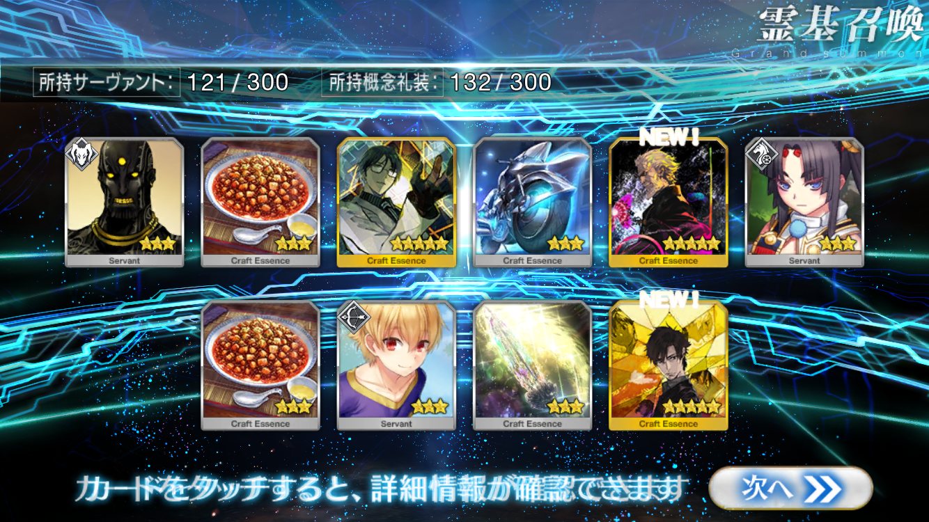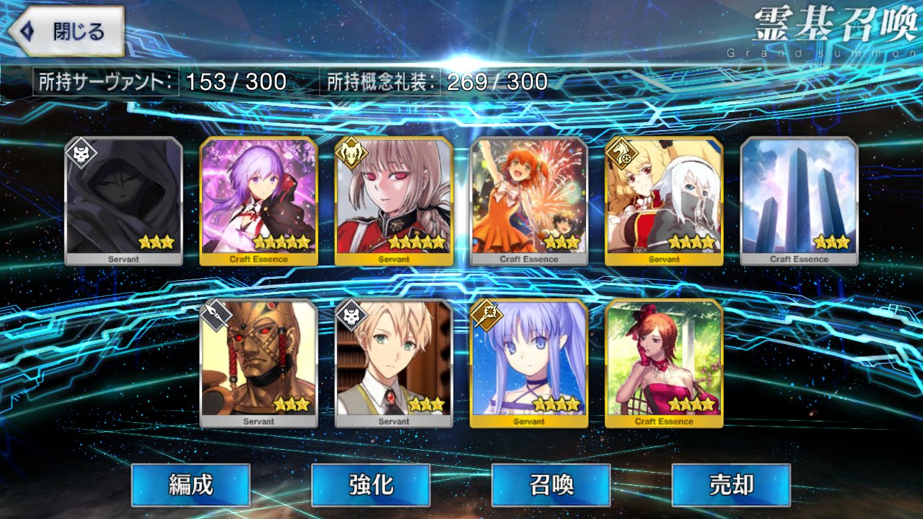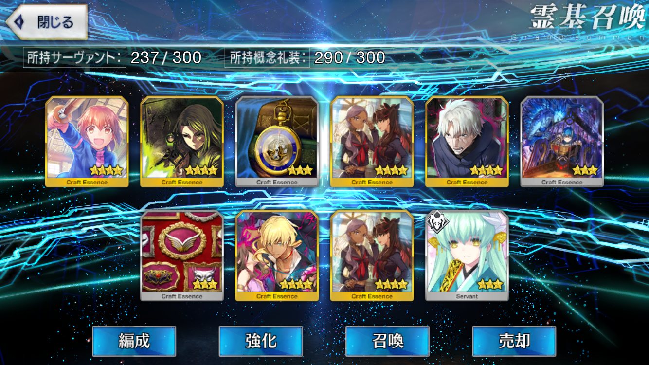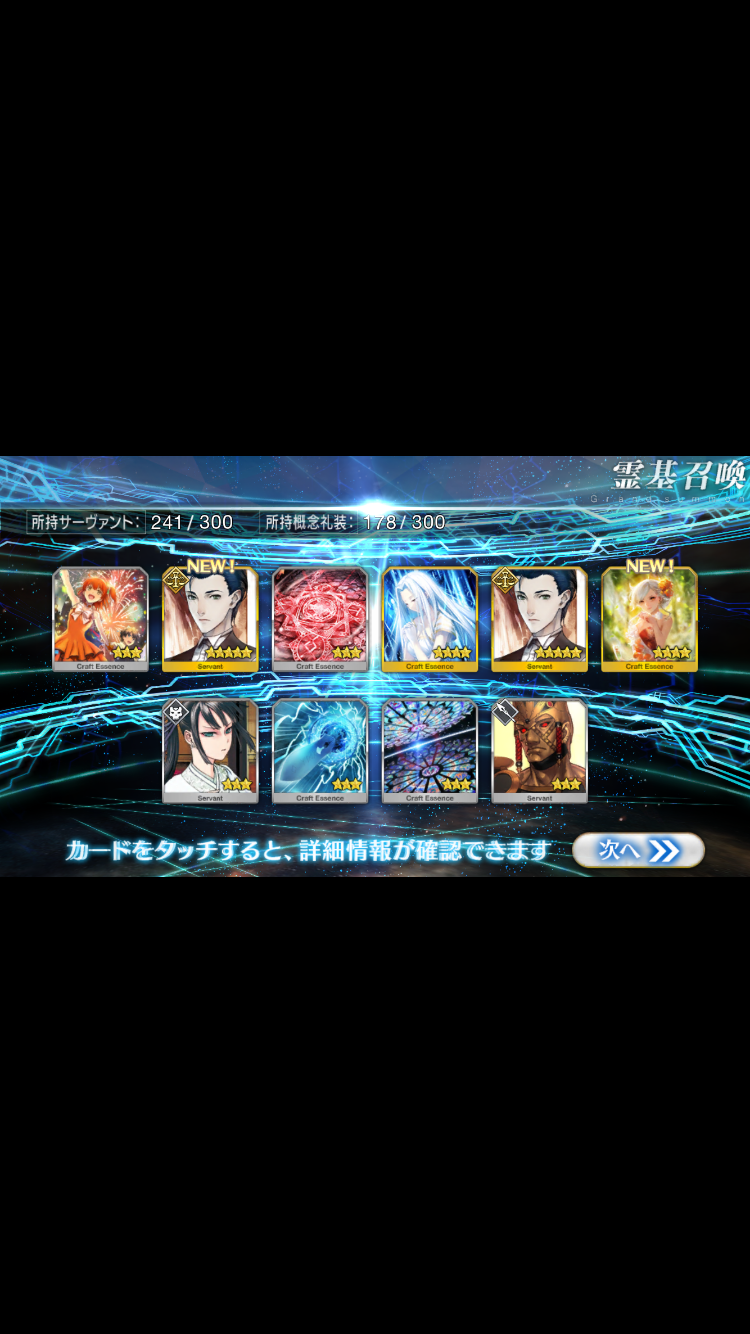 …5連続で星4以上は礼装1枚ってのは、さすがにつれぇわ…画像は無いけどメンテ明け一発目の単発で