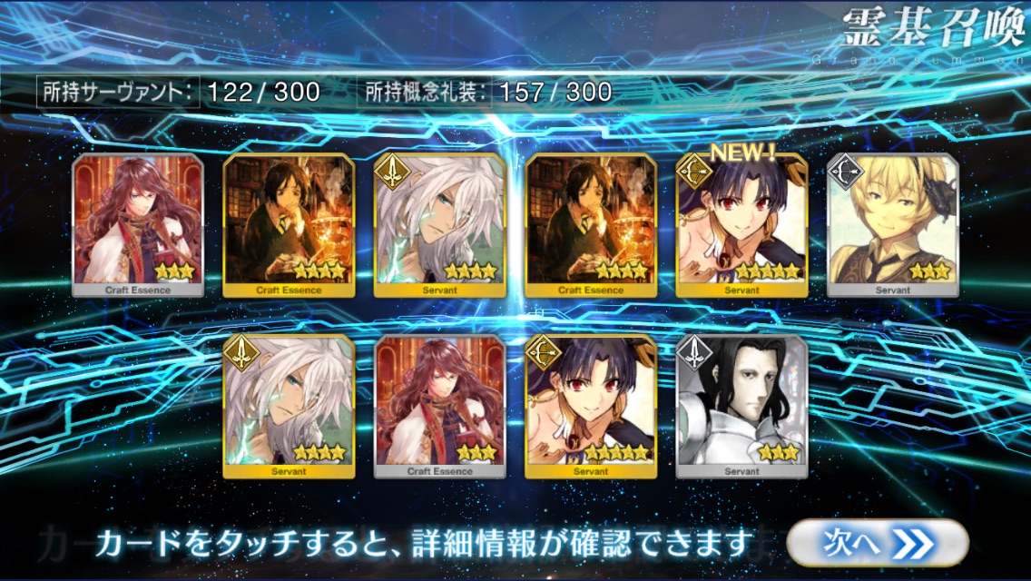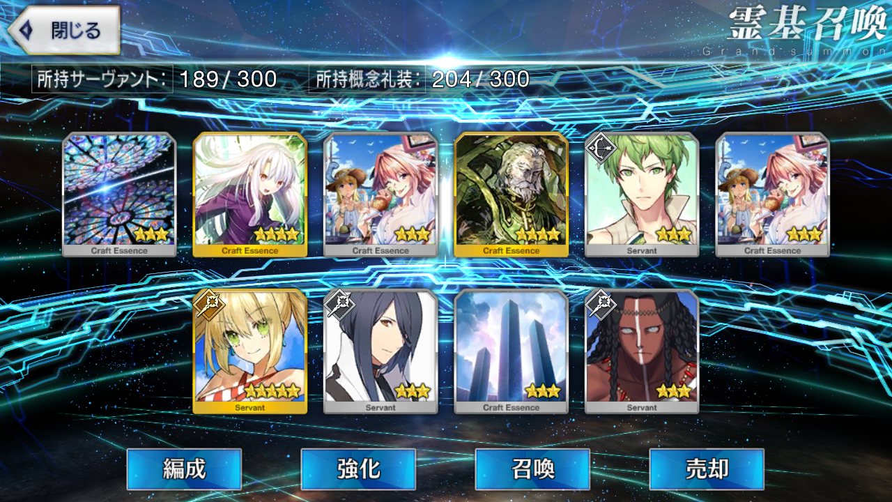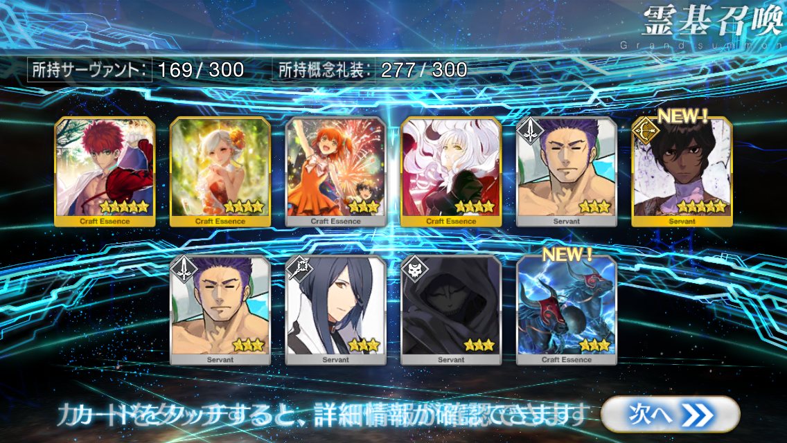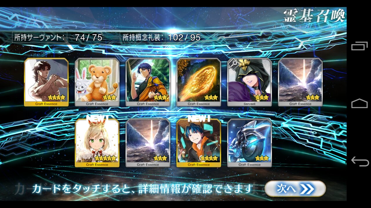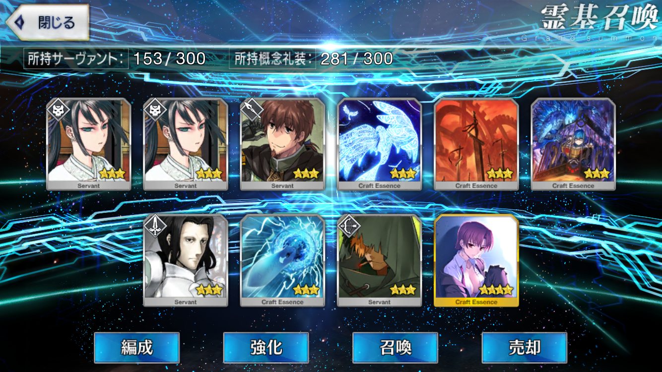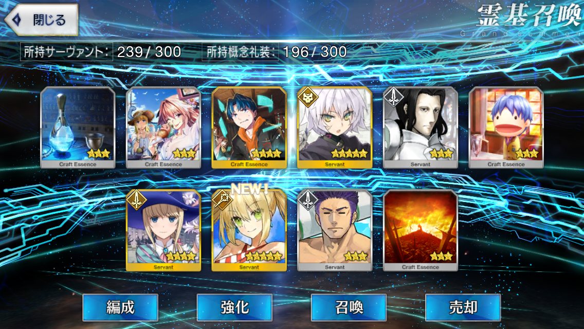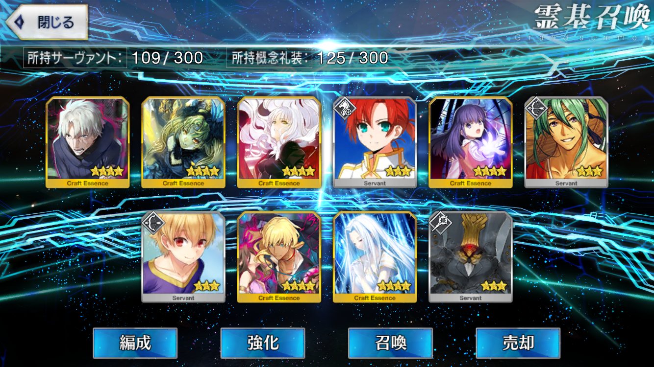 …5連続で星4以上は礼装1枚ってのは、さすがにつれぇわ…画像は無いけどメンテ明け一発目の単発で
