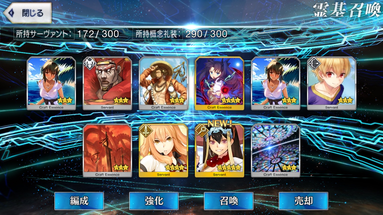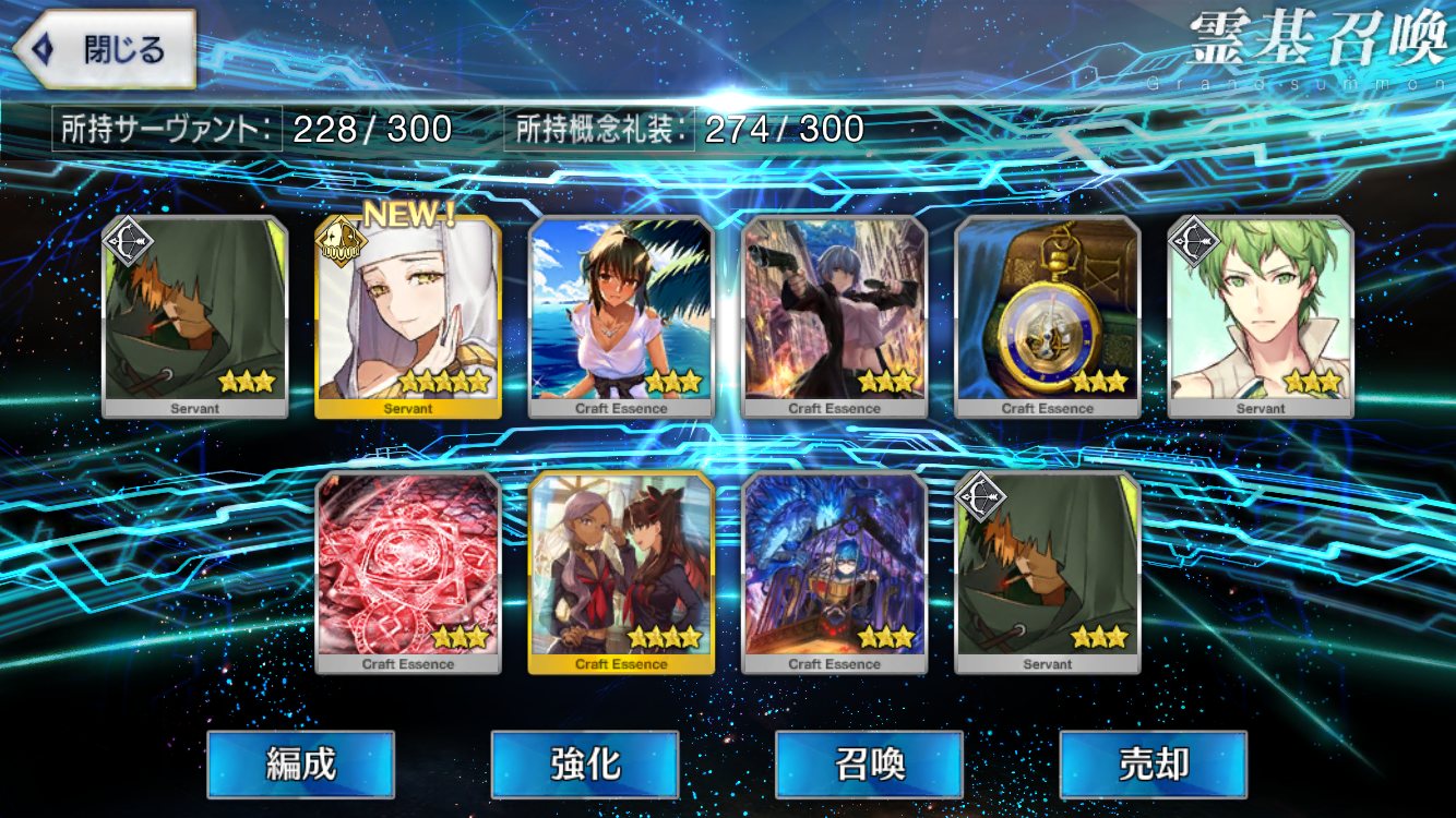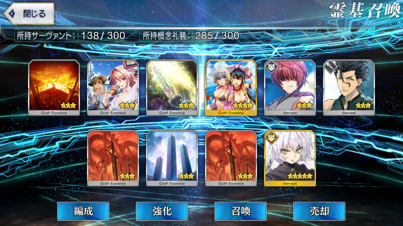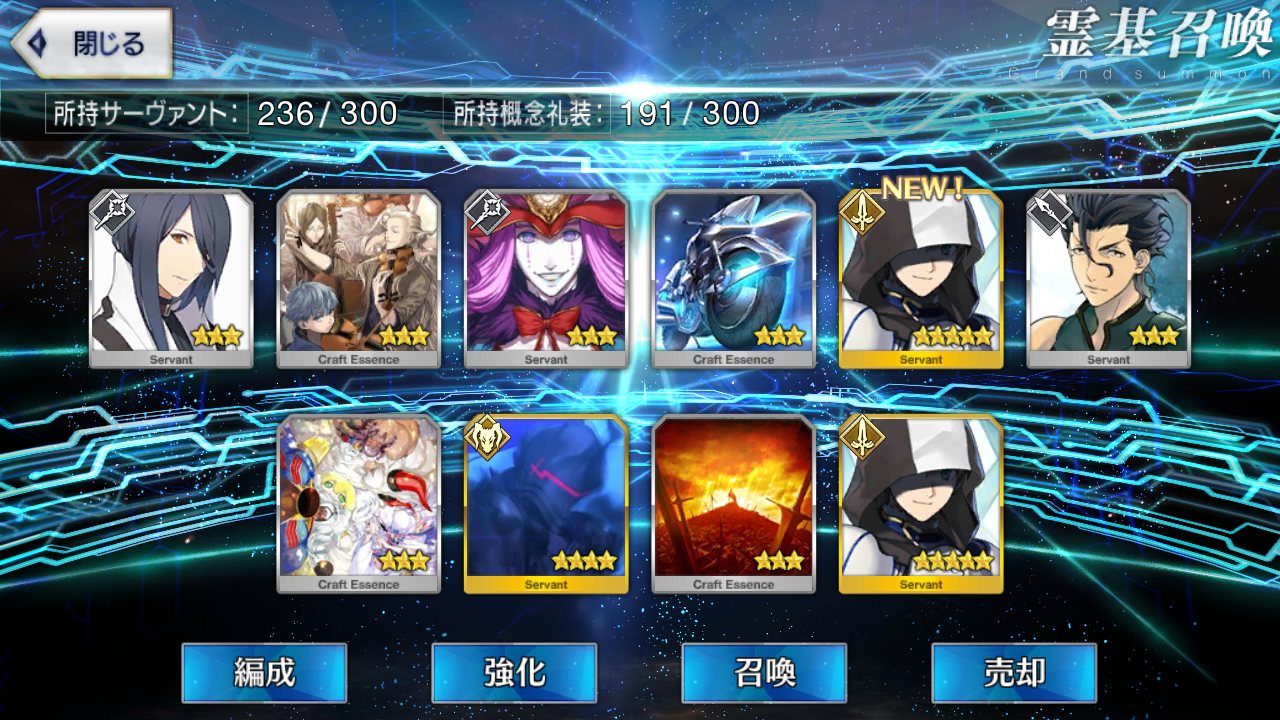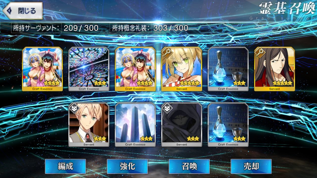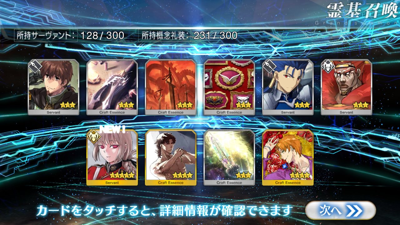 …5連続で星4以上は礼装1枚ってのは、さすがにつれぇわ…画像は無いけどメンテ明け一発目の単発で