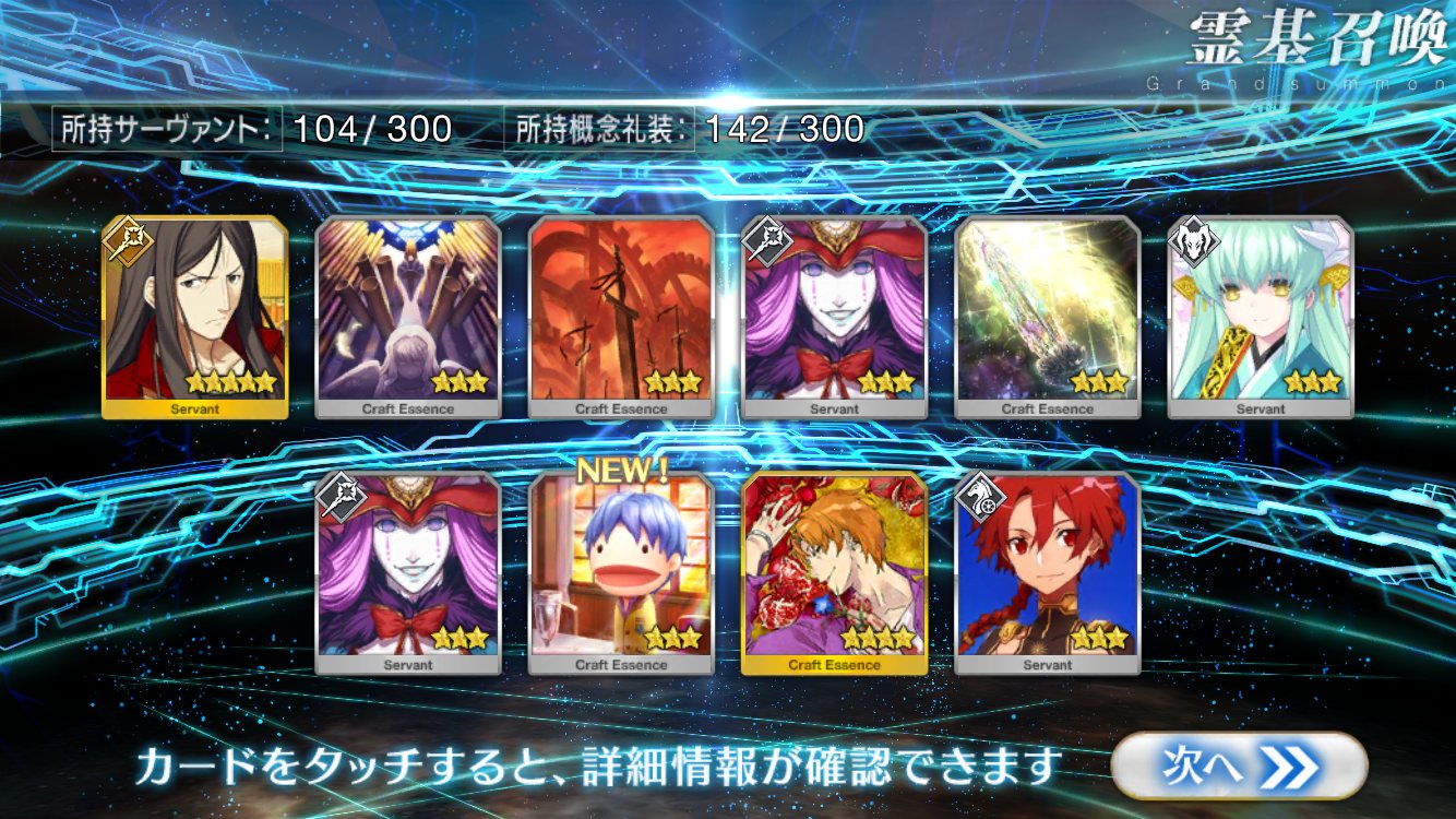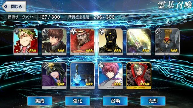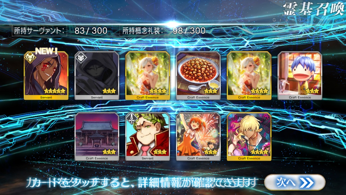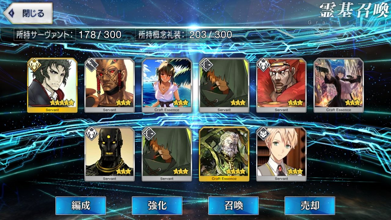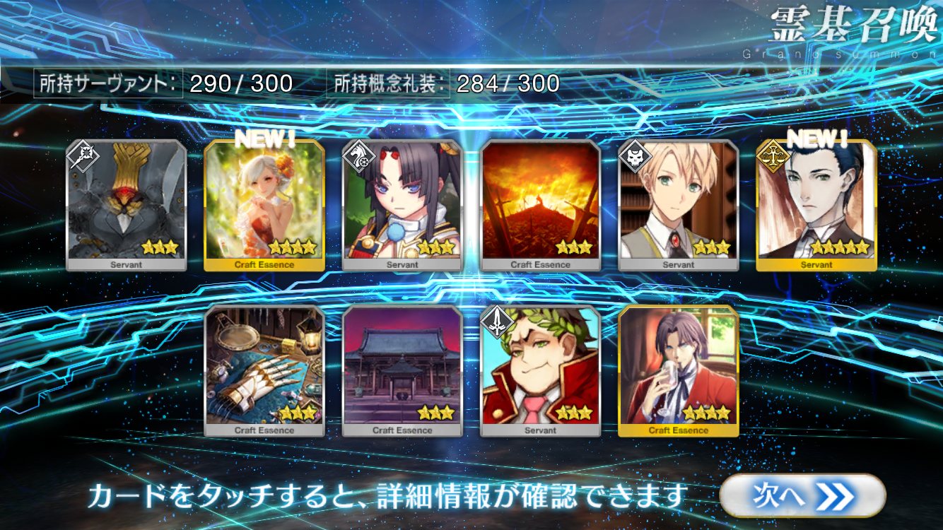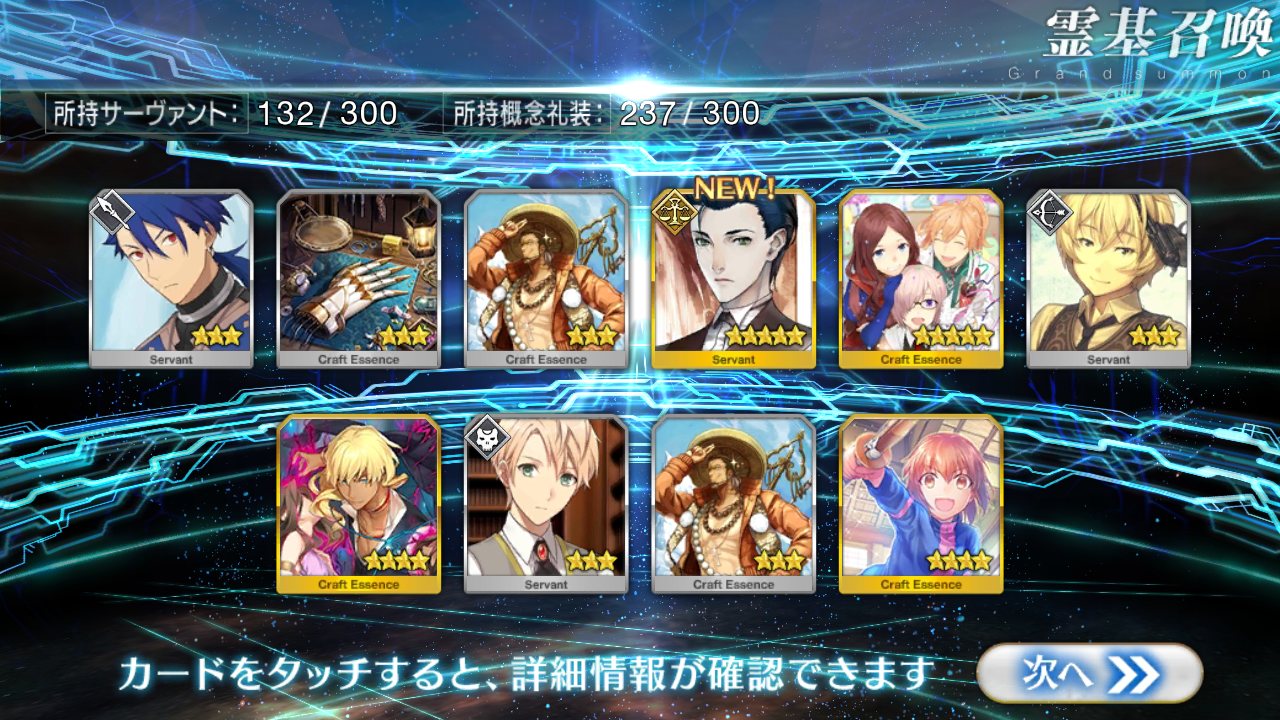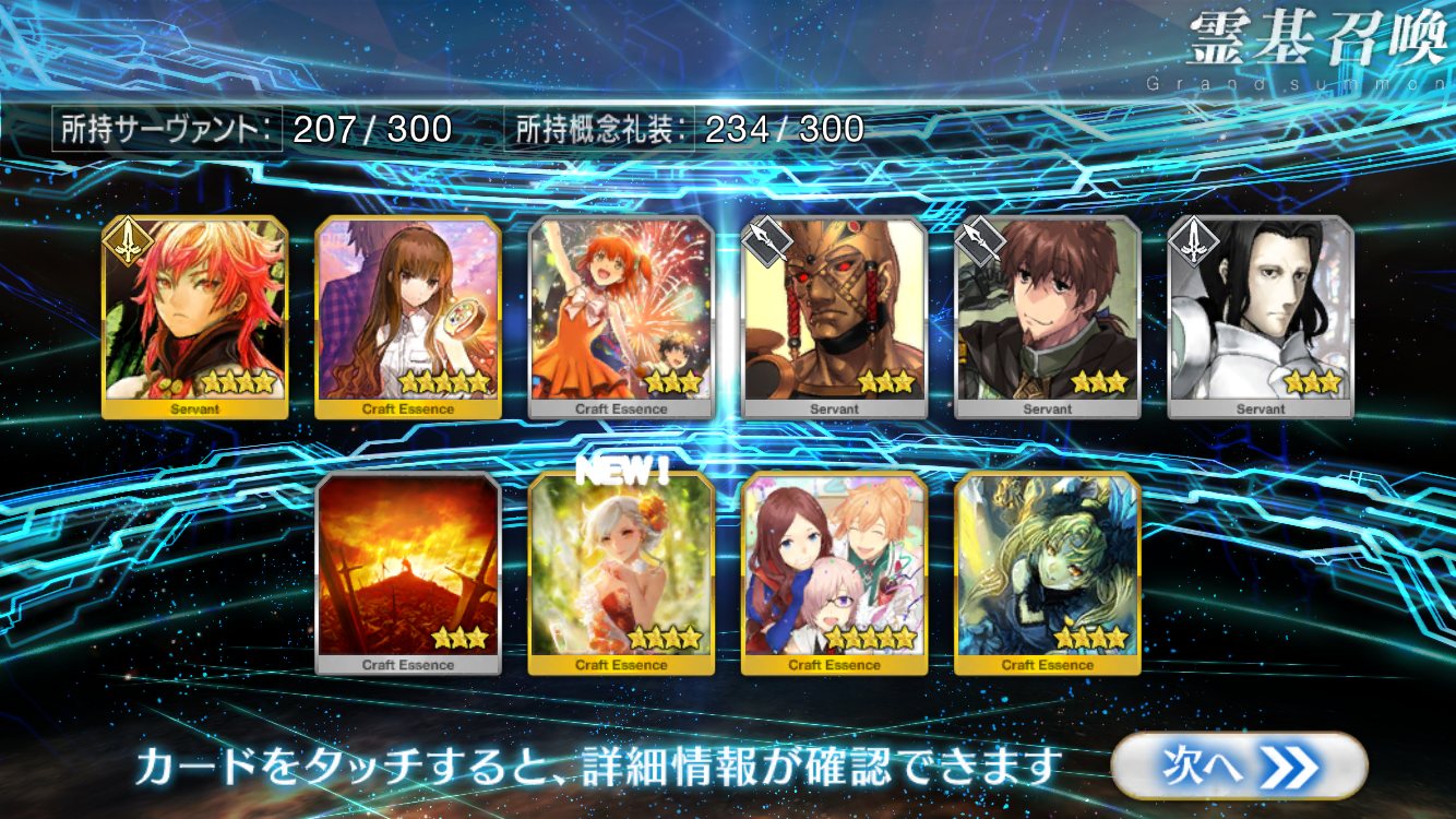 …5連続で星4以上は礼装1枚ってのは、さすがにつれぇわ…画像は無いけどメンテ明け一発目の単発で