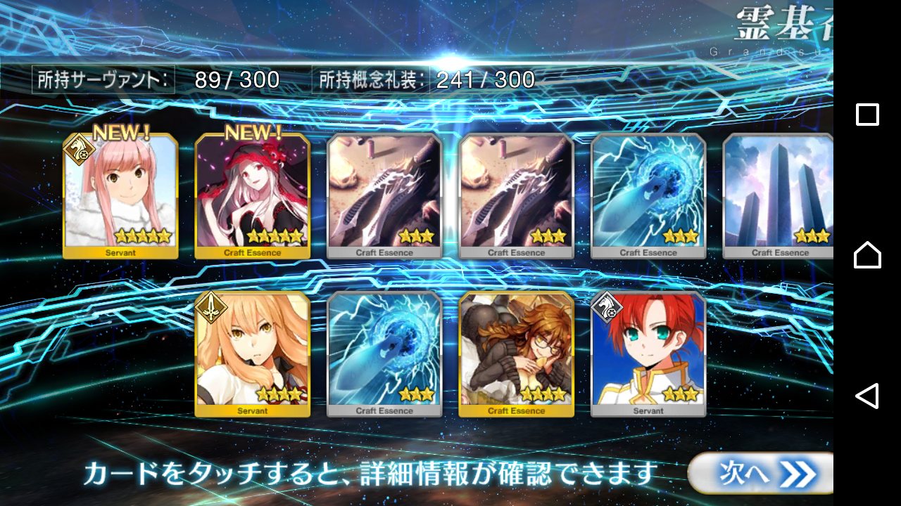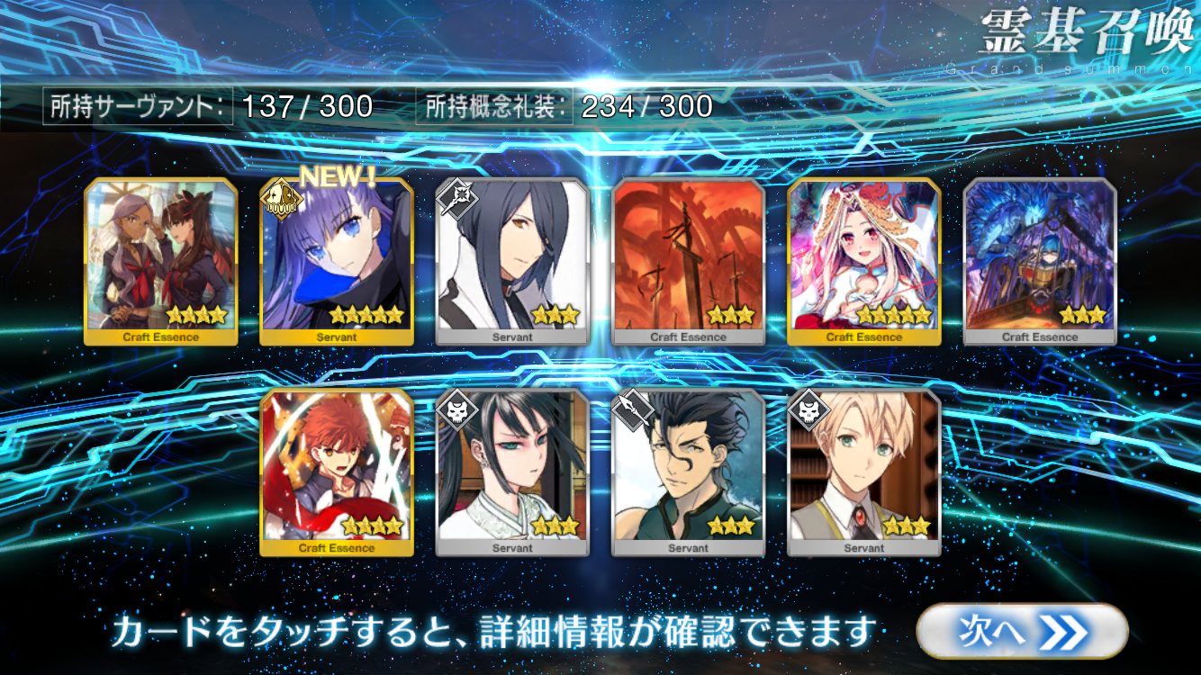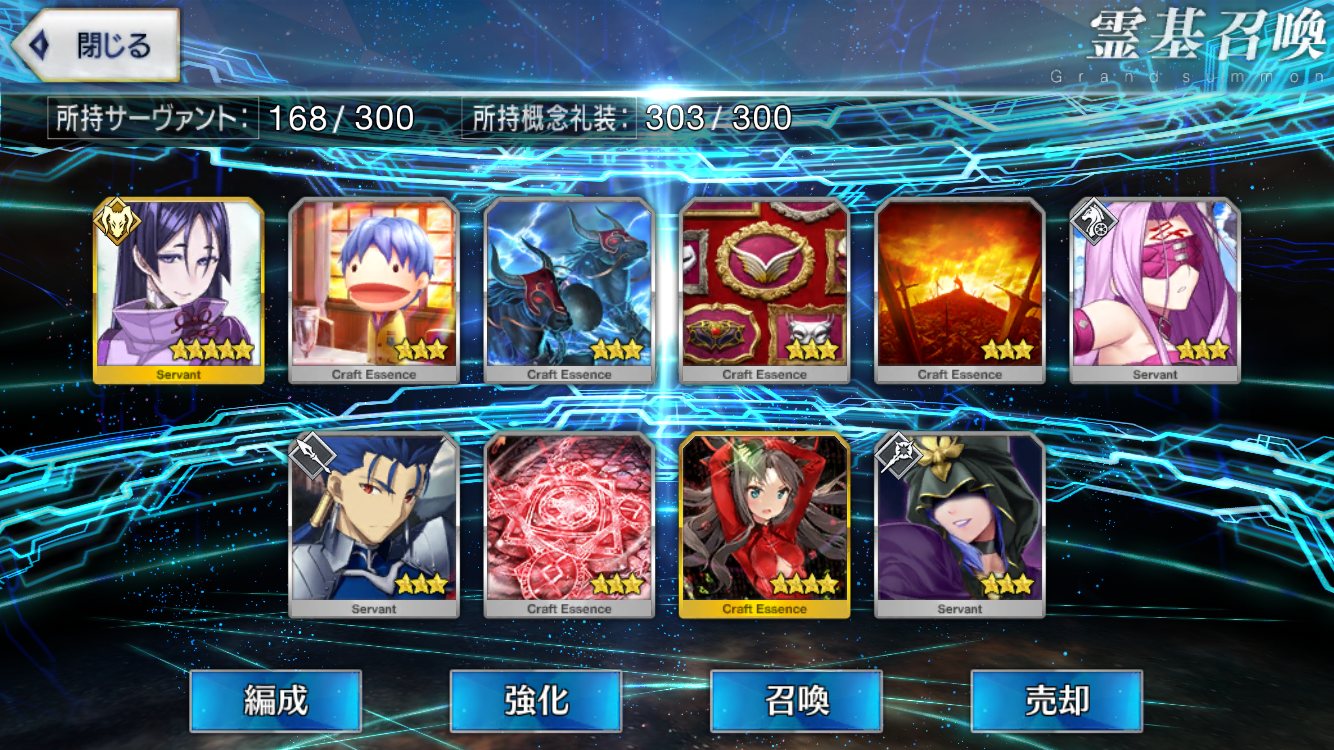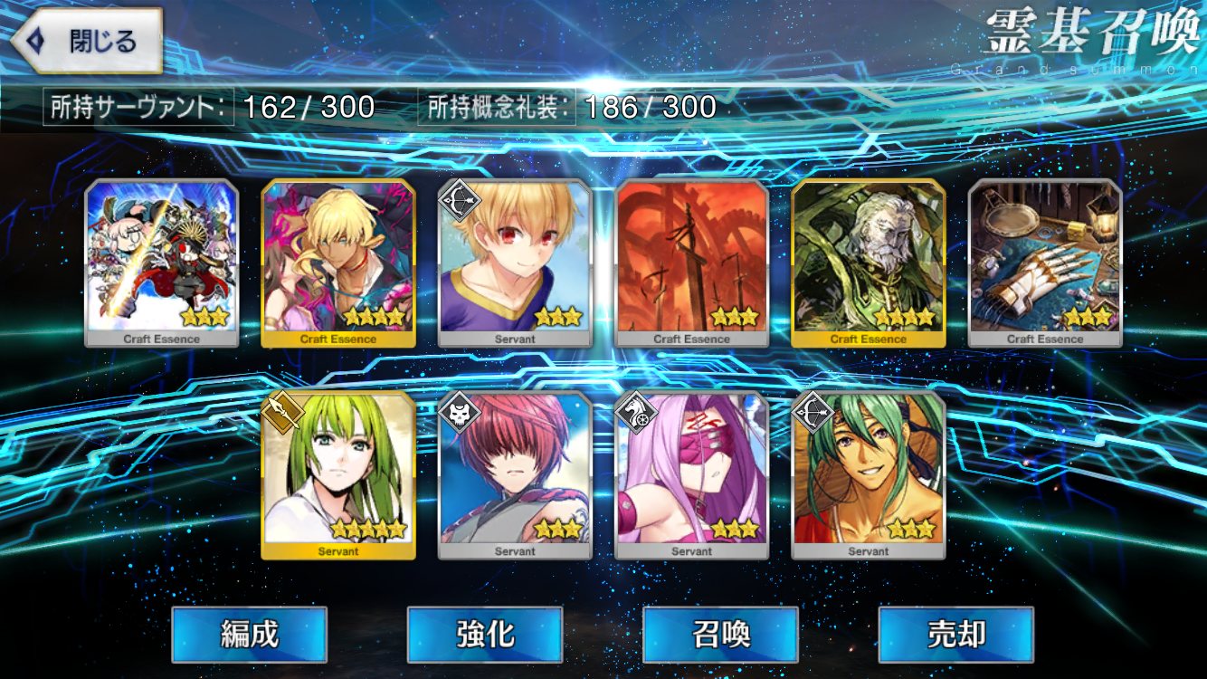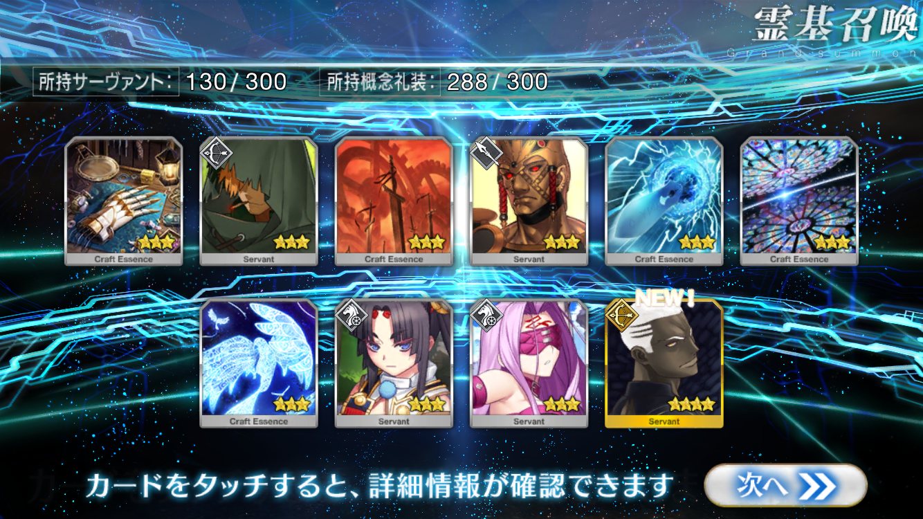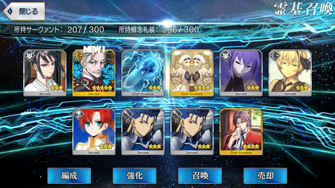 …5連続で星4以上は礼装1枚ってのは、さすがにつれぇわ…画像は無いけどメンテ明け一発目の単発で