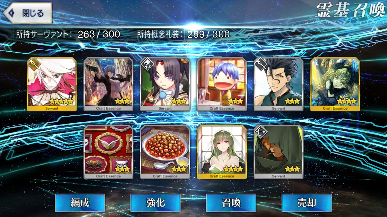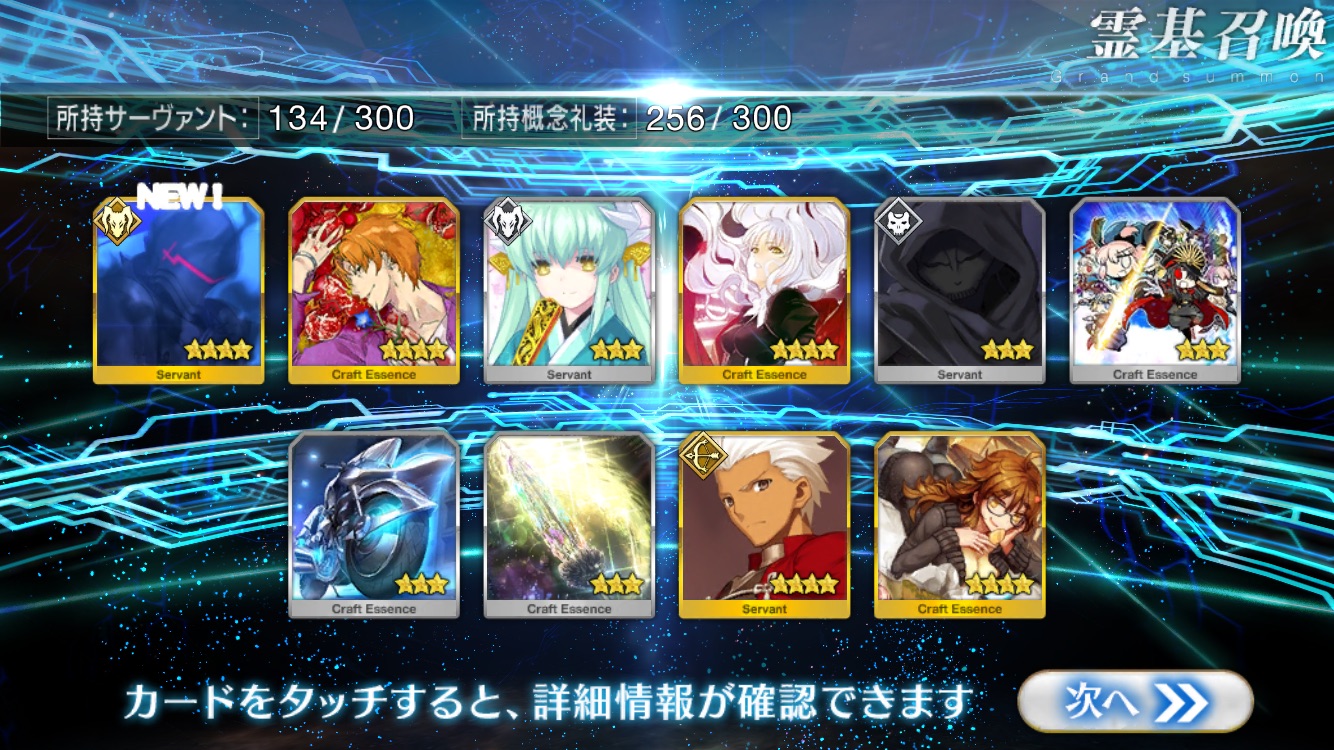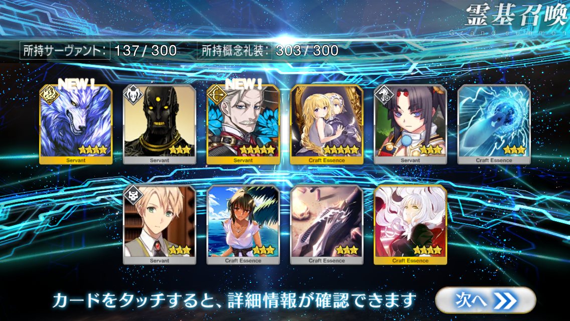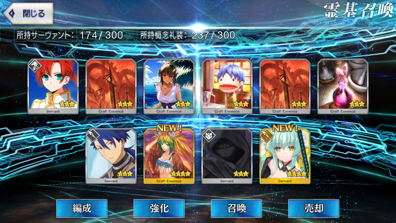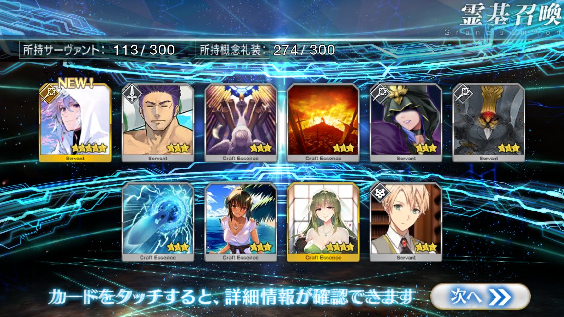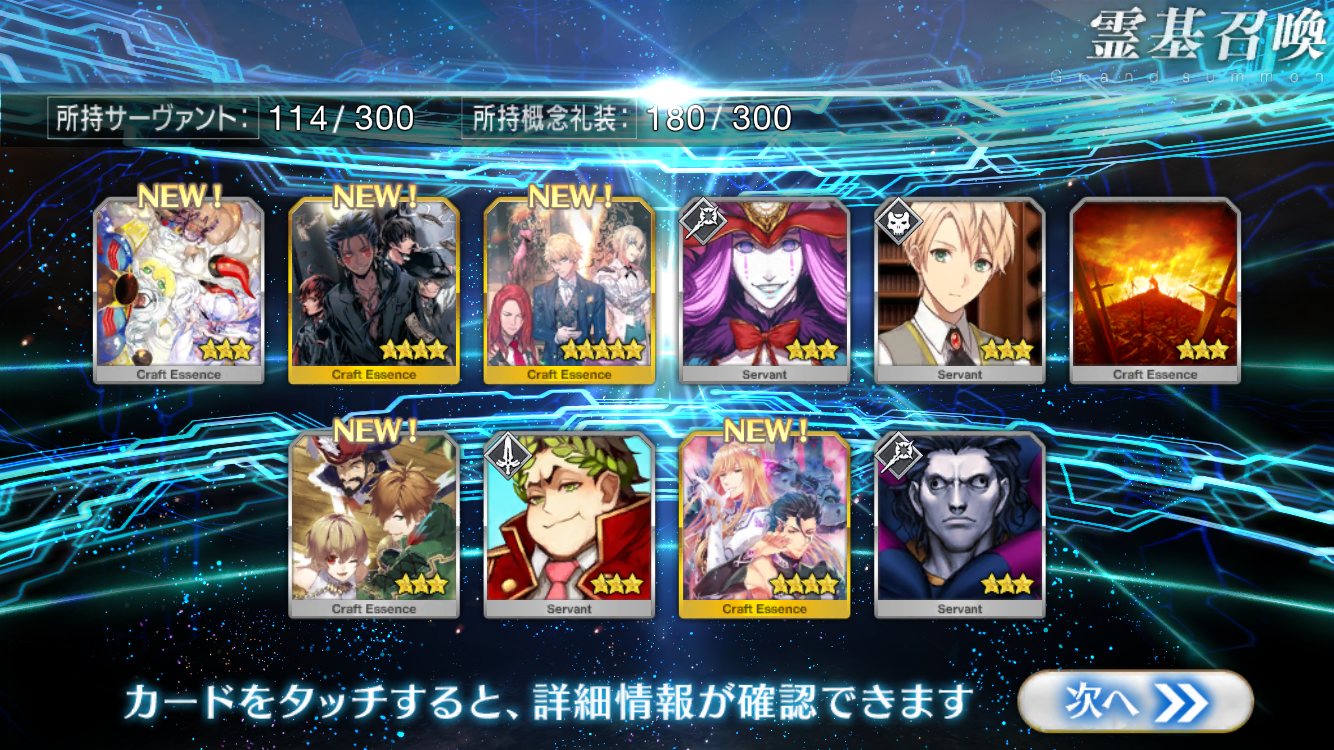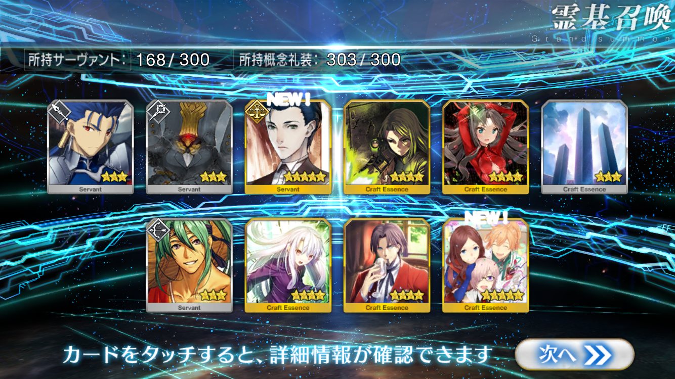 …5連続で星4以上は礼装1枚ってのは、さすがにつれぇわ…画像は無いけどメンテ明け一発目の単発で