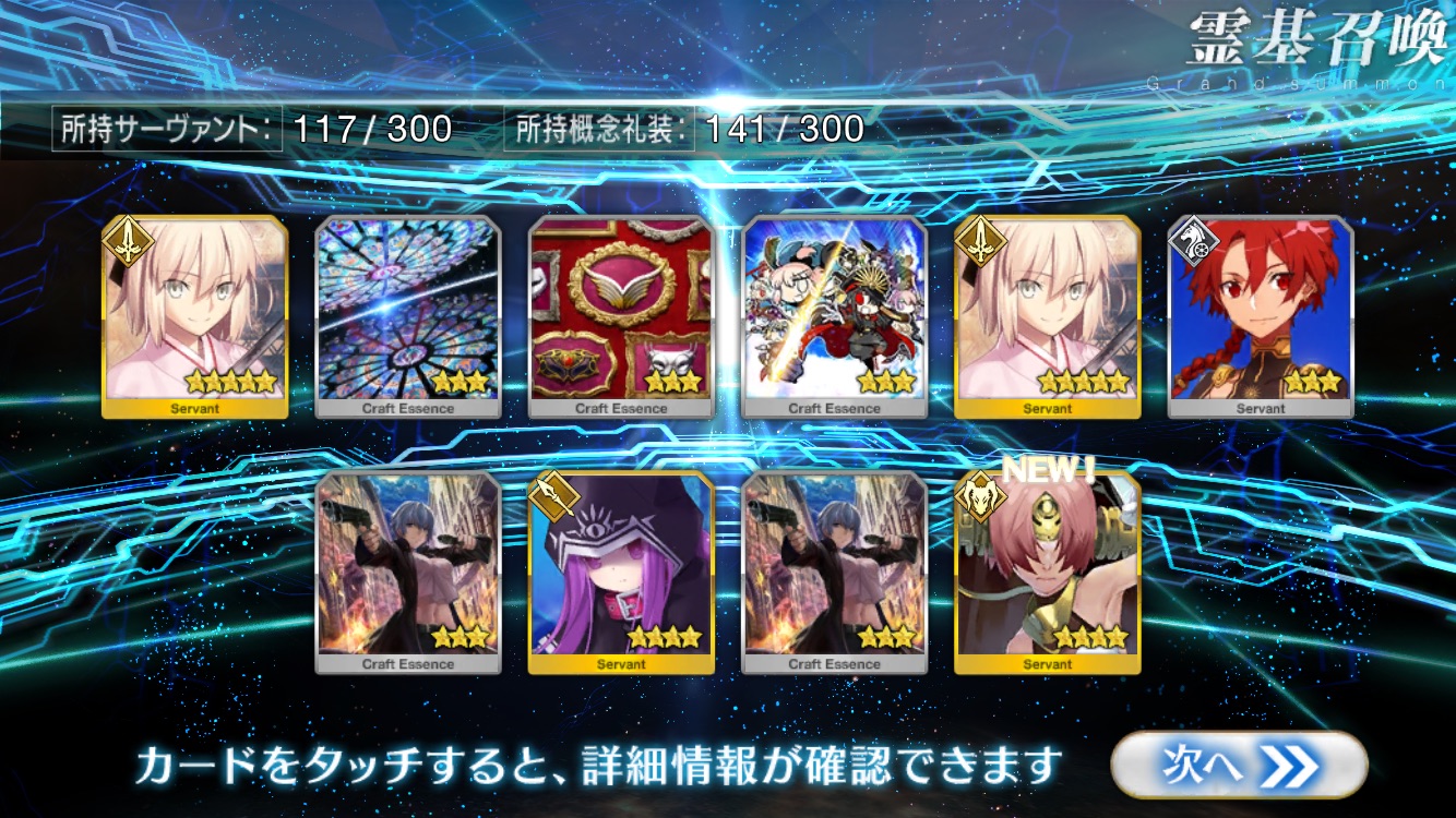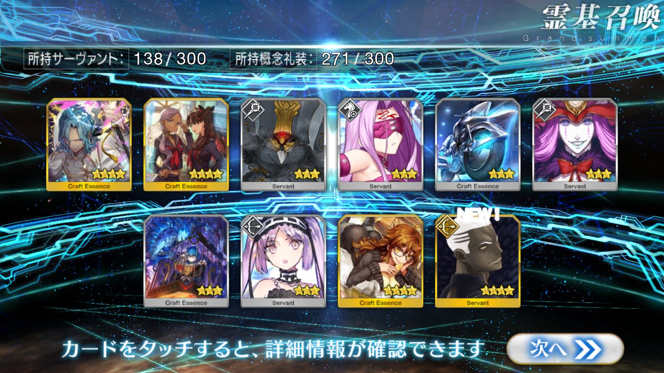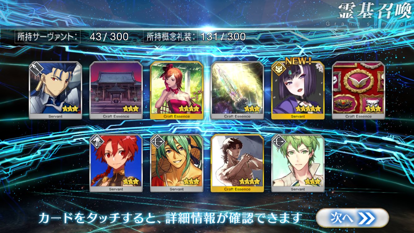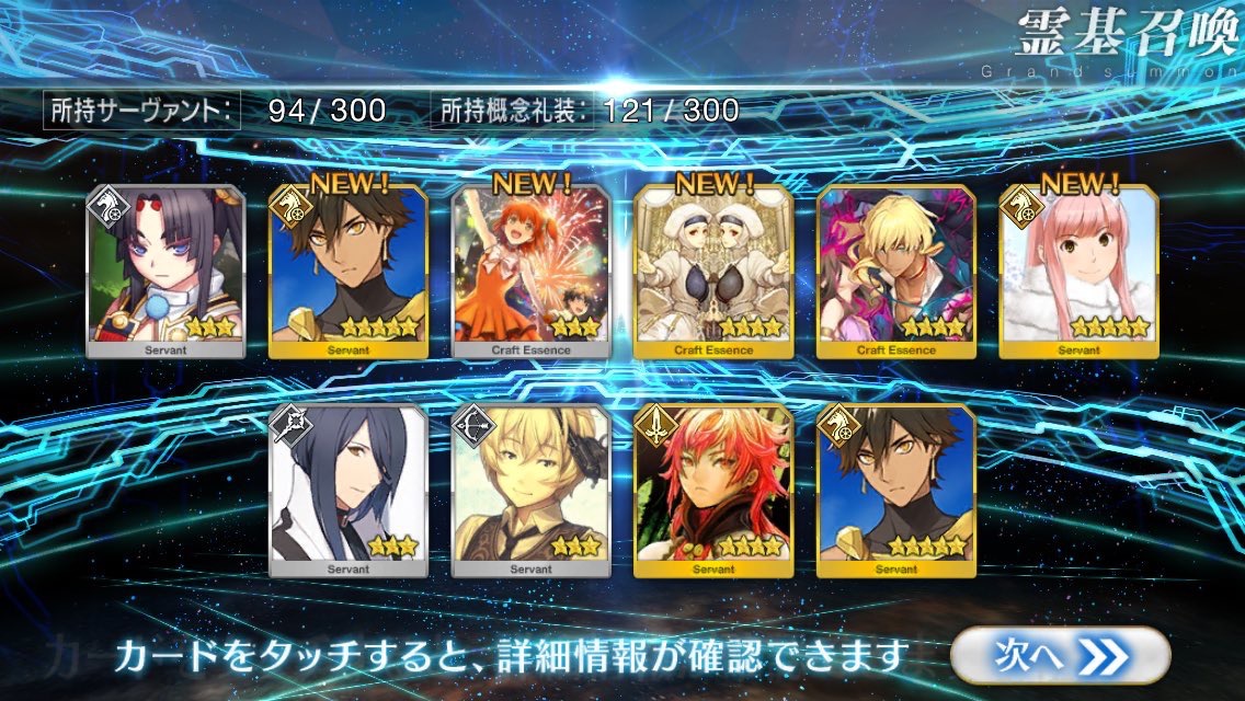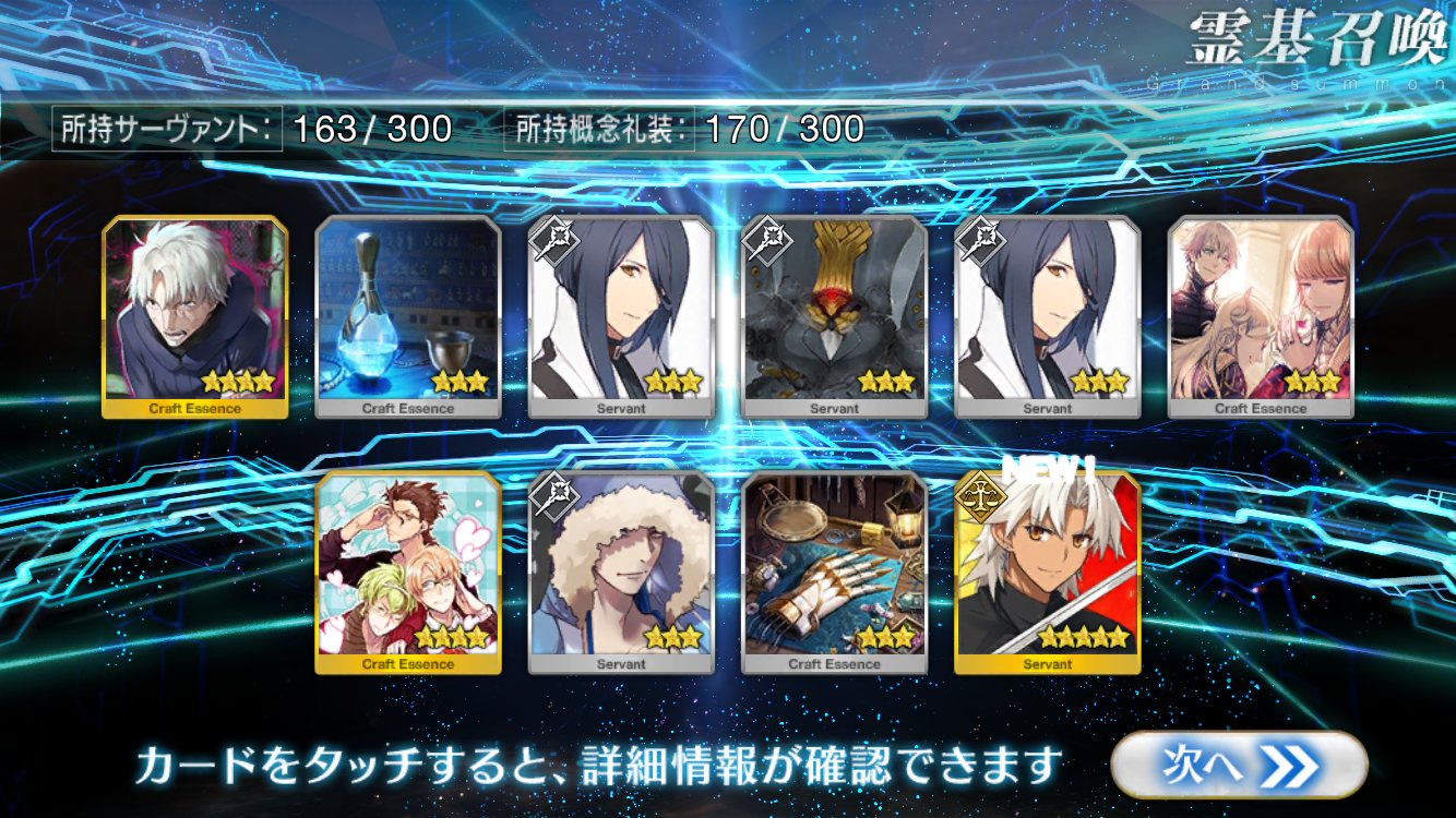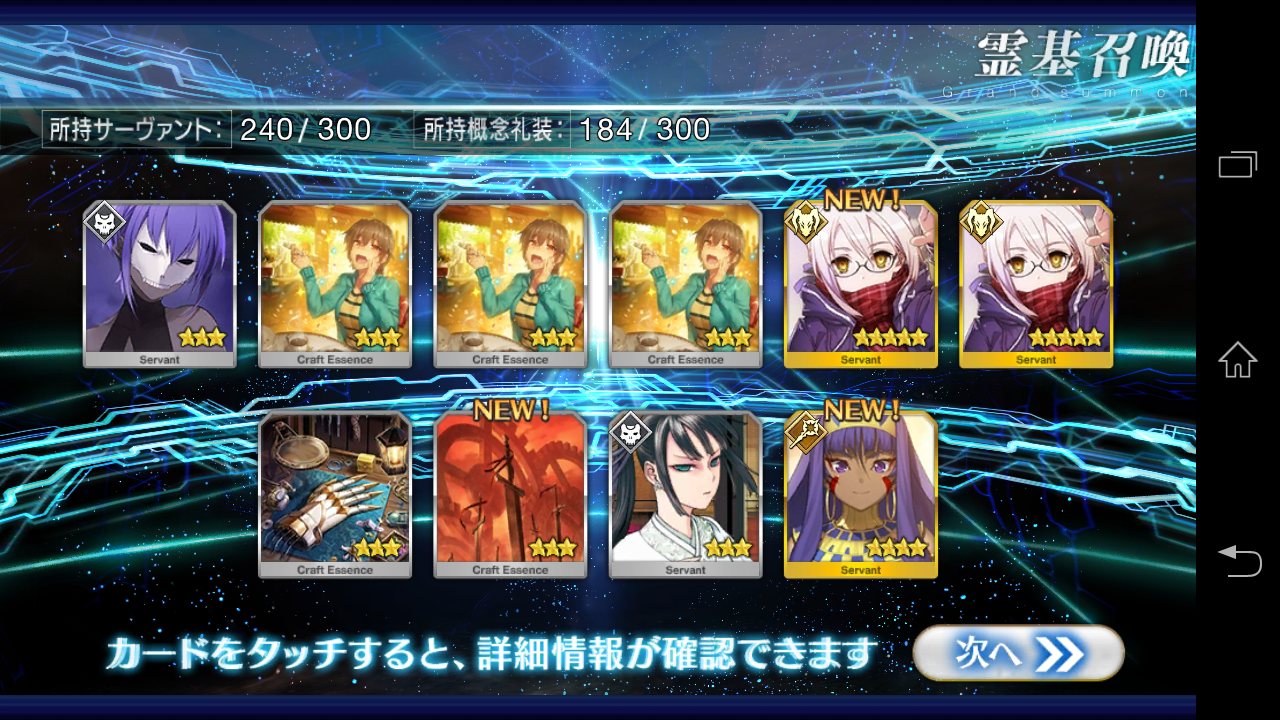 …5連続で星4以上は礼装1枚ってのは、さすがにつれぇわ…画像は無いけどメンテ明け一発目の単発で