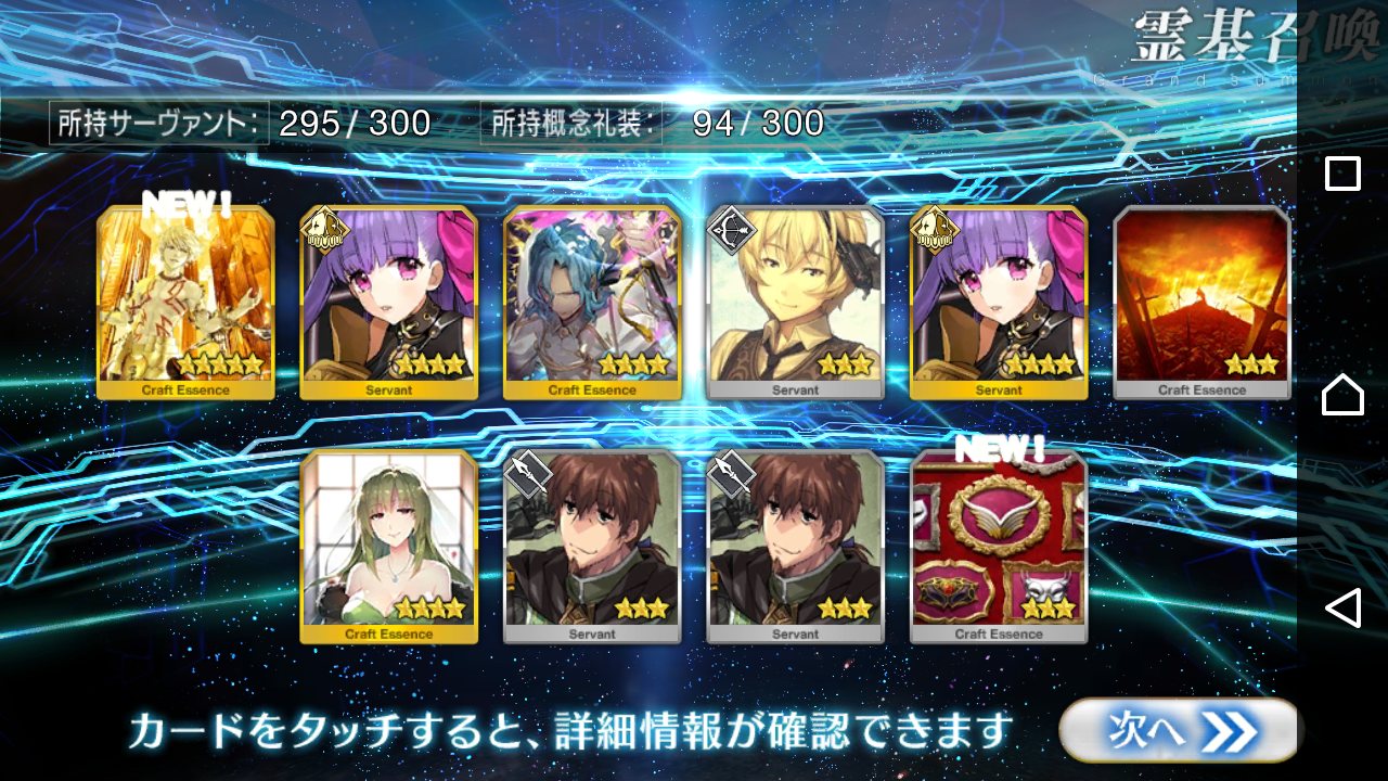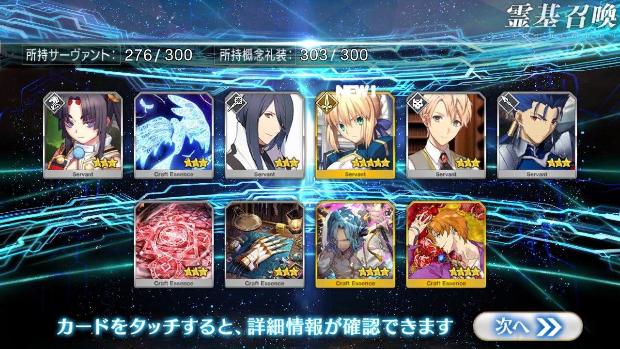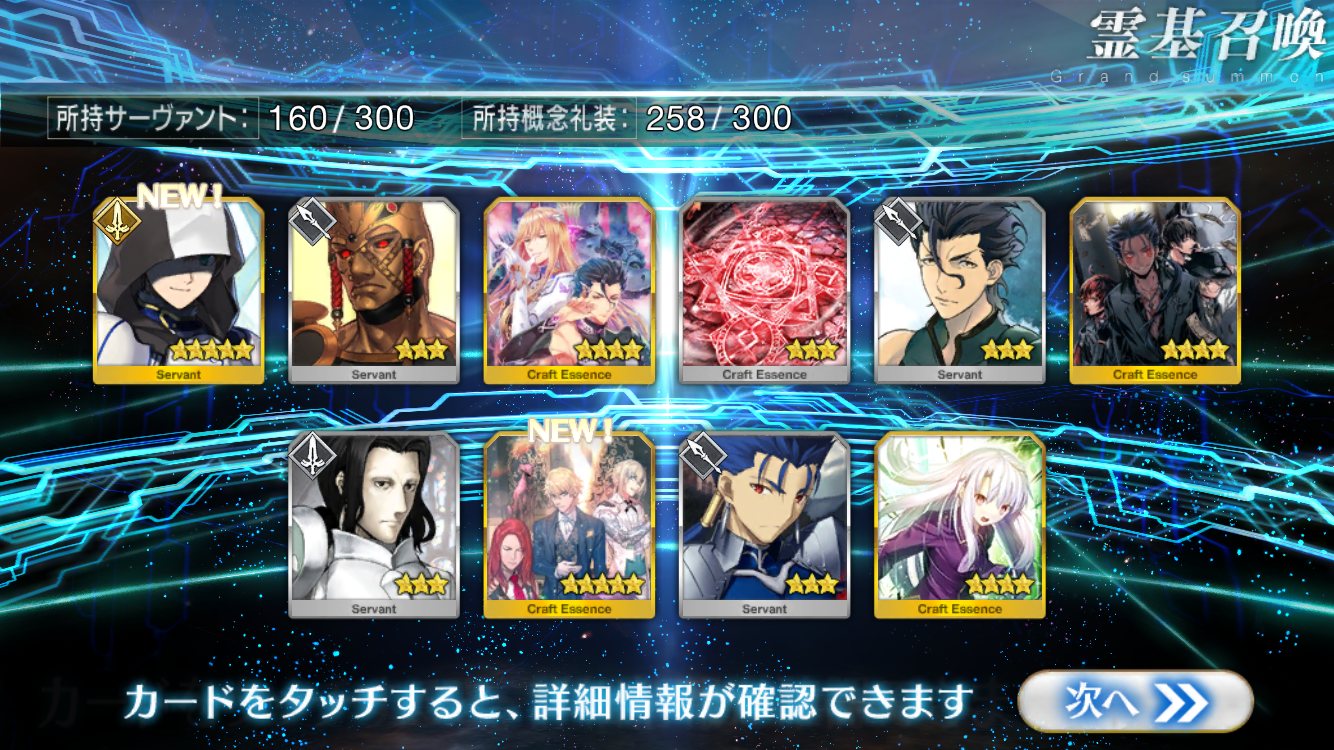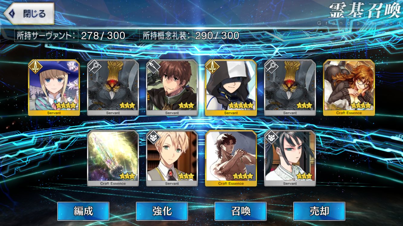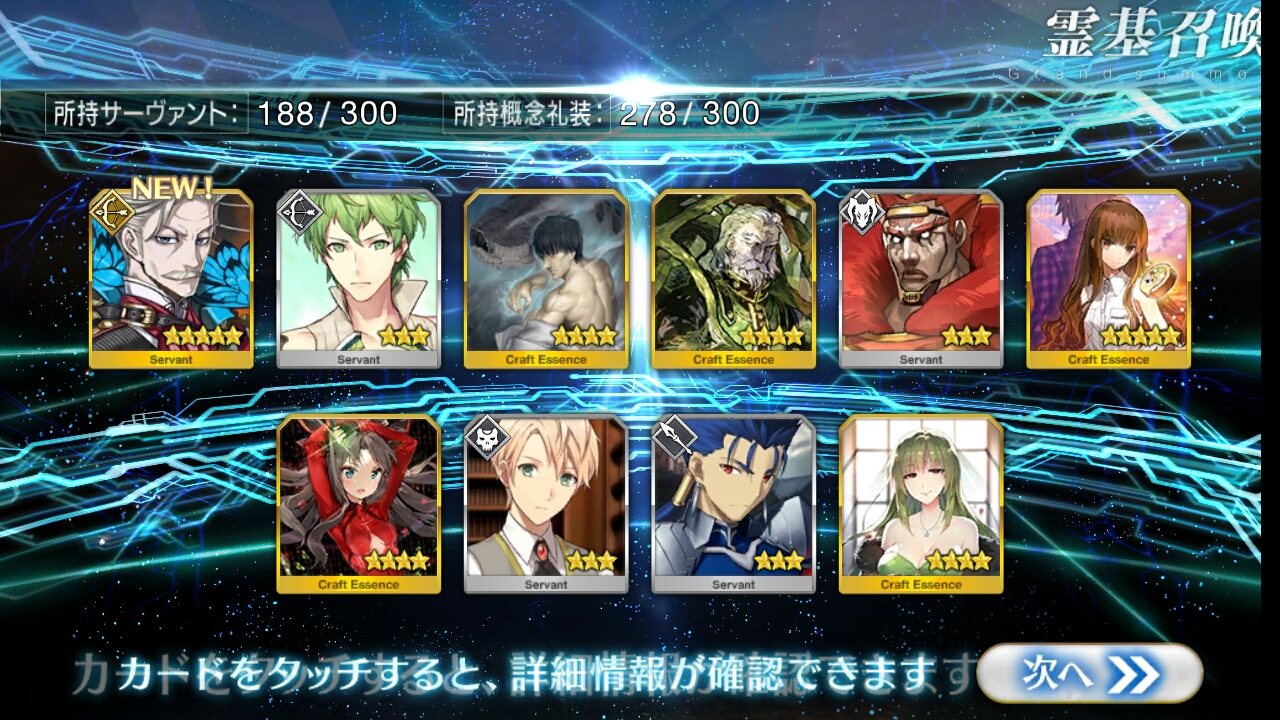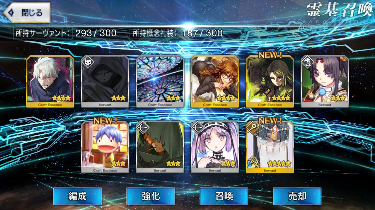 …5連続で星4以上は礼装1枚ってのは、さすがにつれぇわ…画像は無いけどメンテ明け一発目の単発で
