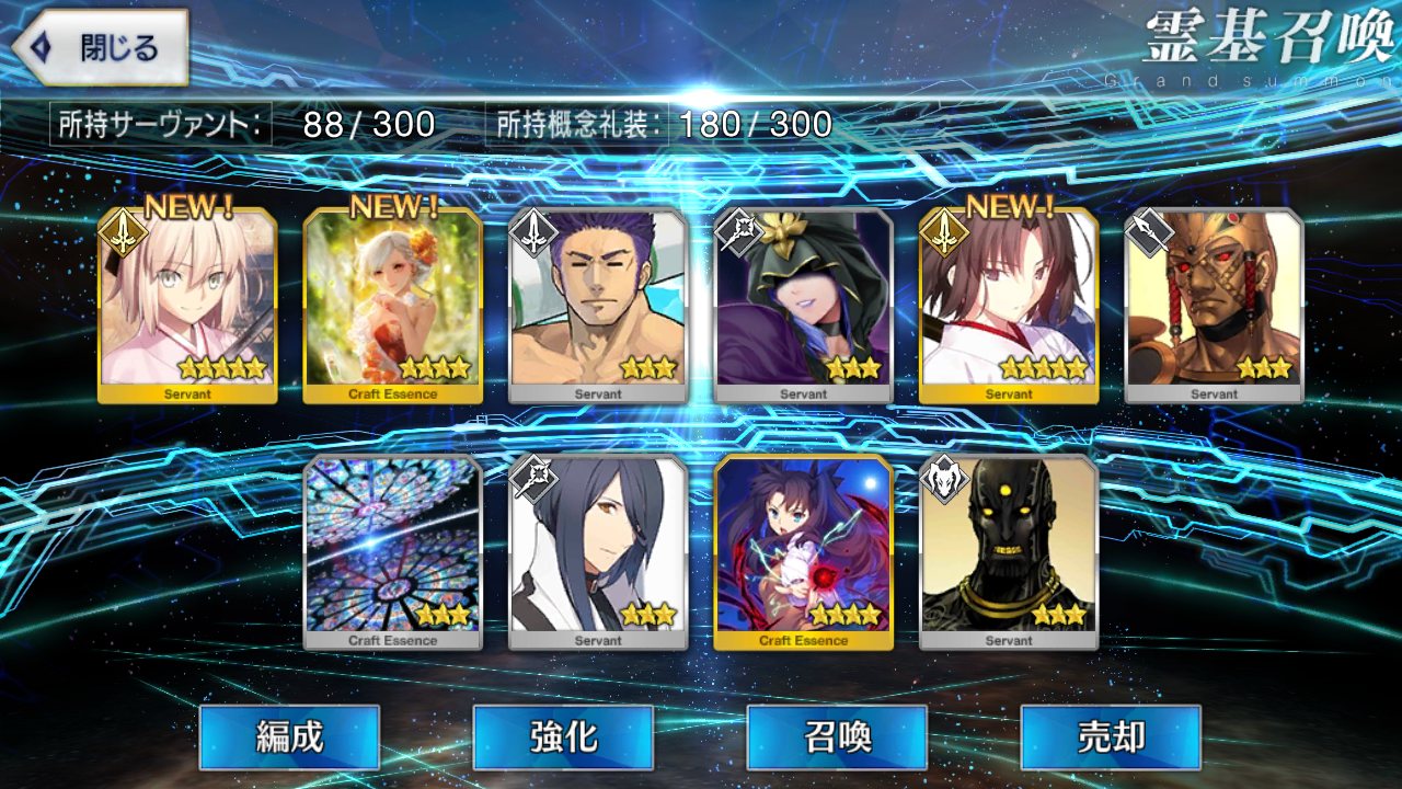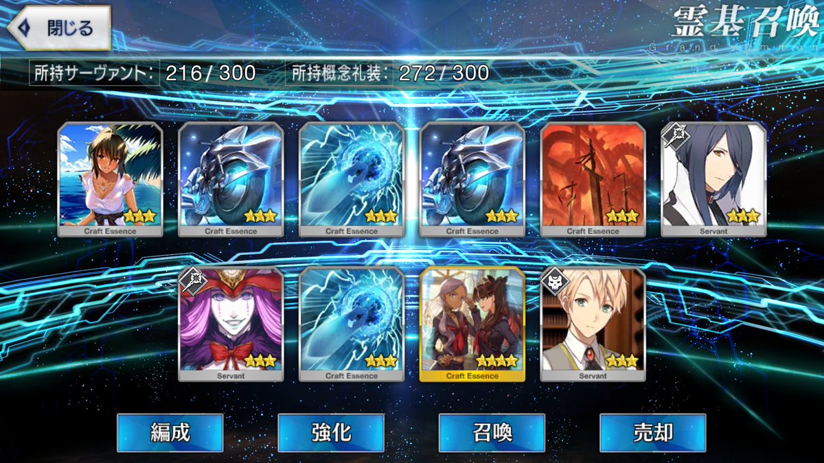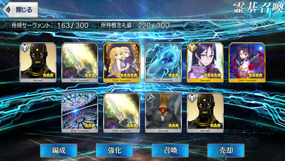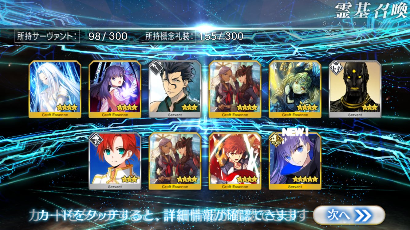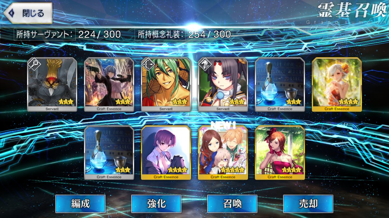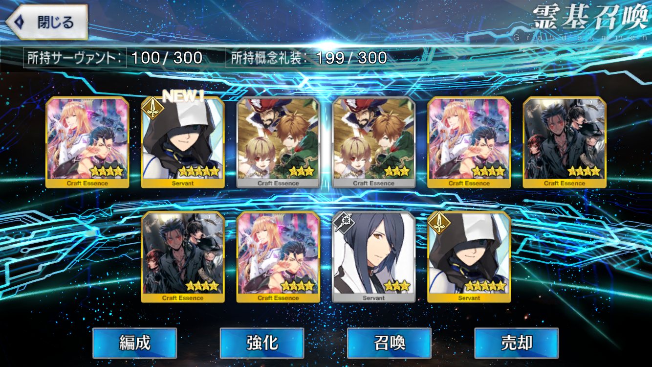 …5連続で星4以上は礼装1枚ってのは、さすがにつれぇわ…画像は無いけどメンテ明け一発目の単発で