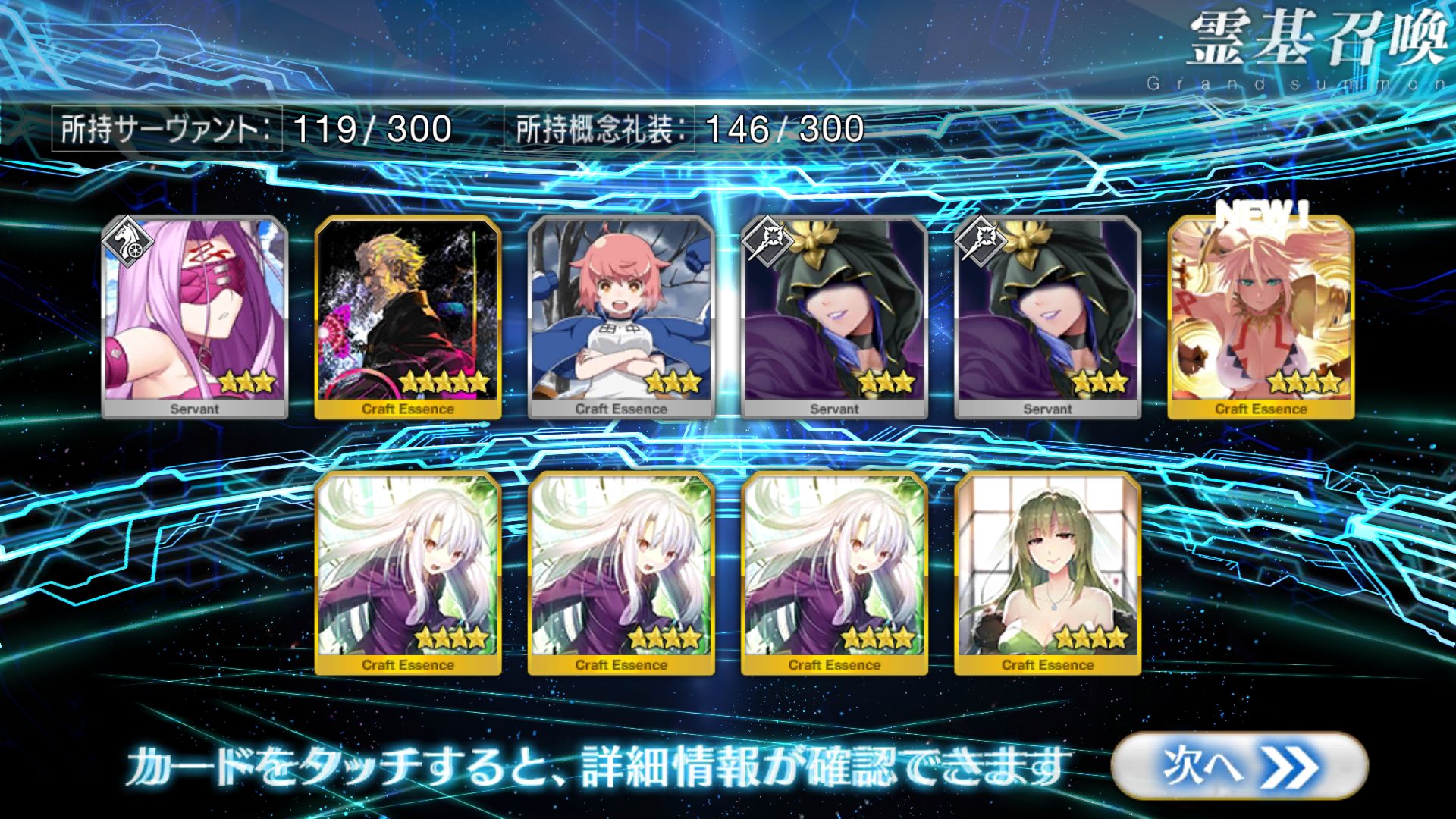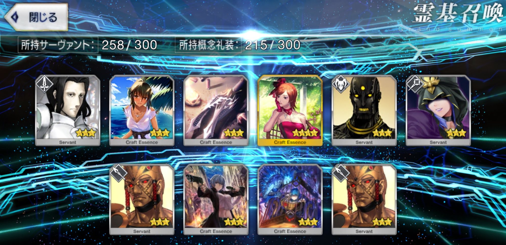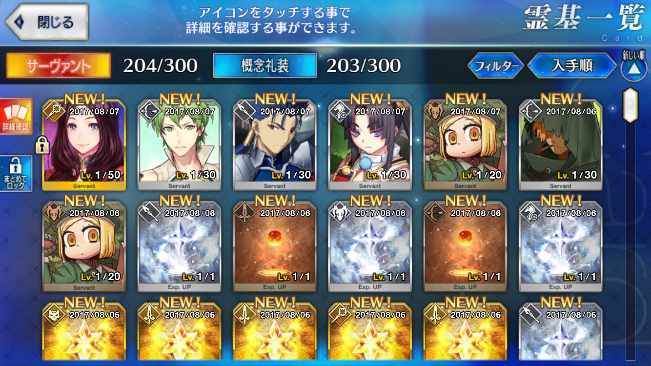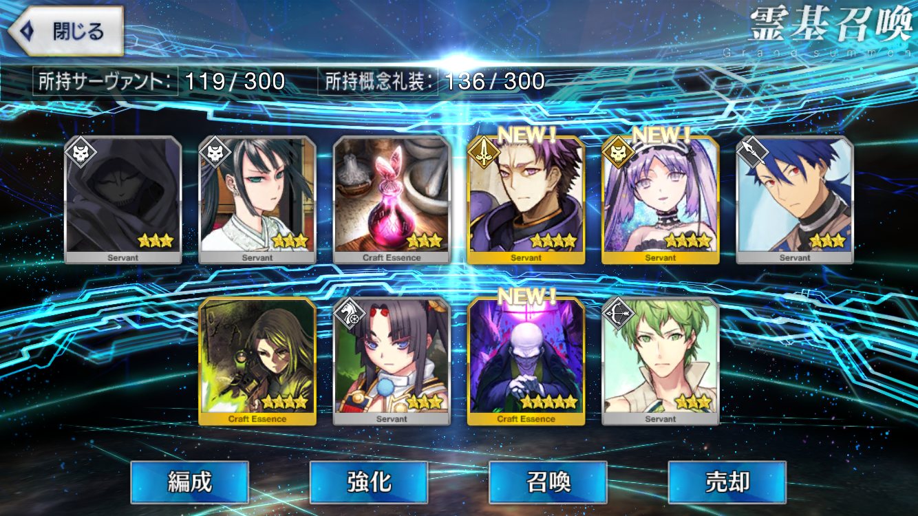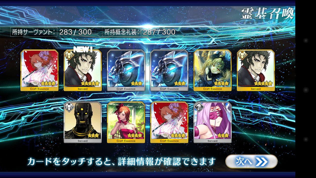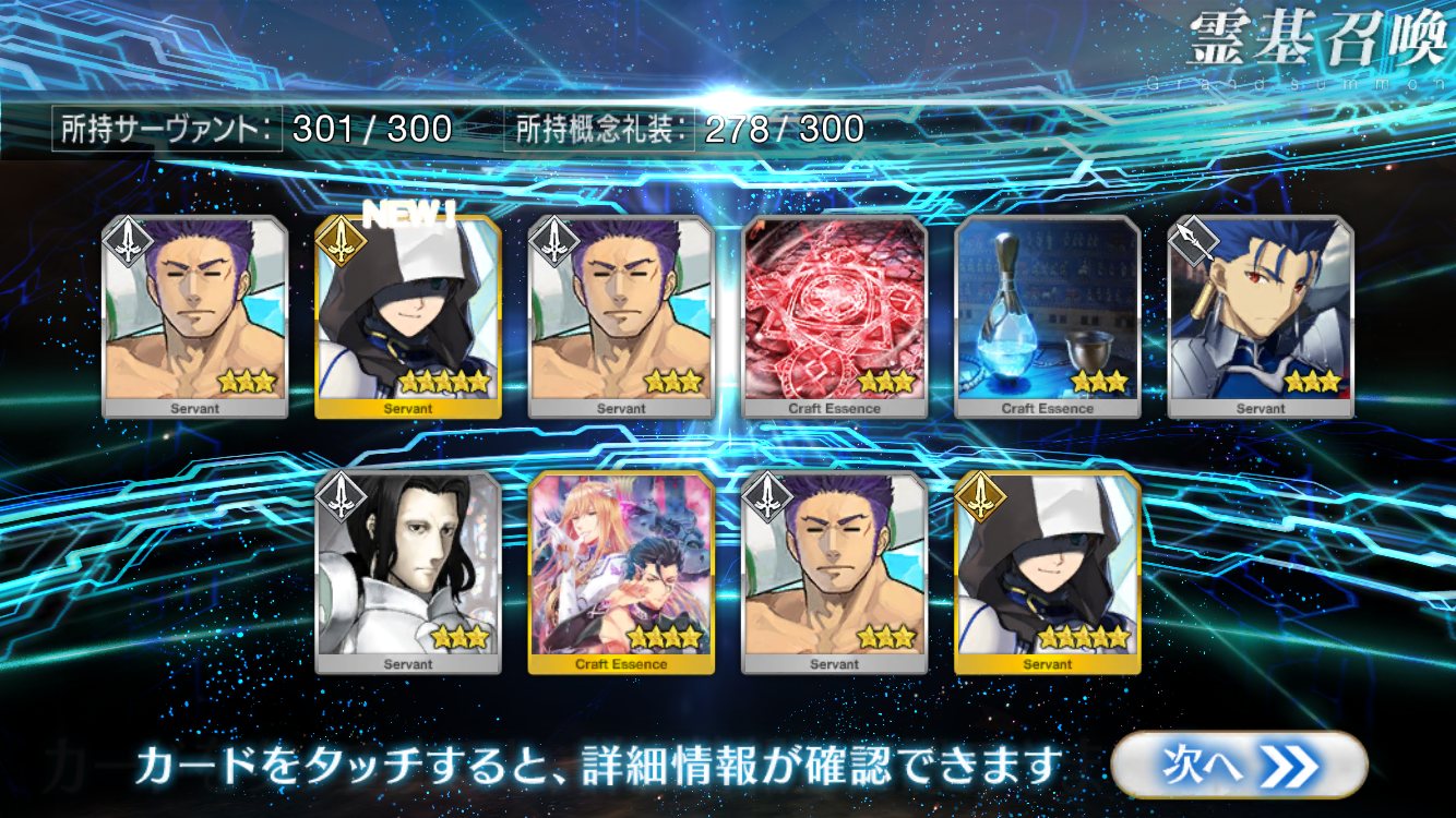 …5連続で星4以上は礼装1枚ってのは、さすがにつれぇわ…画像は無いけどメンテ明け一発目の単発で