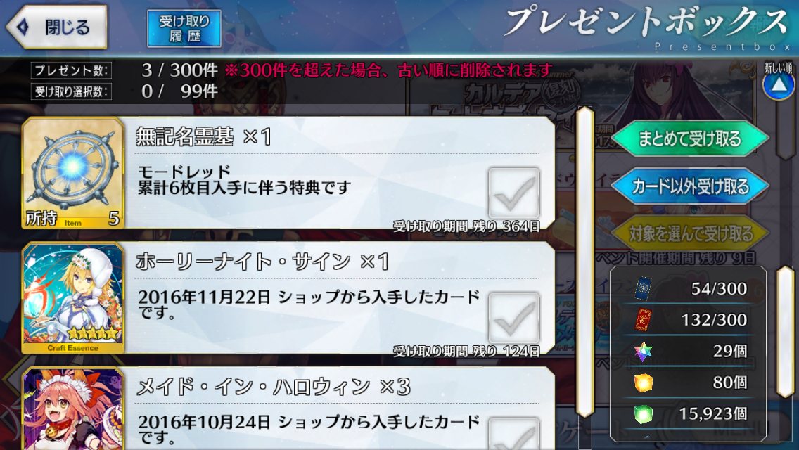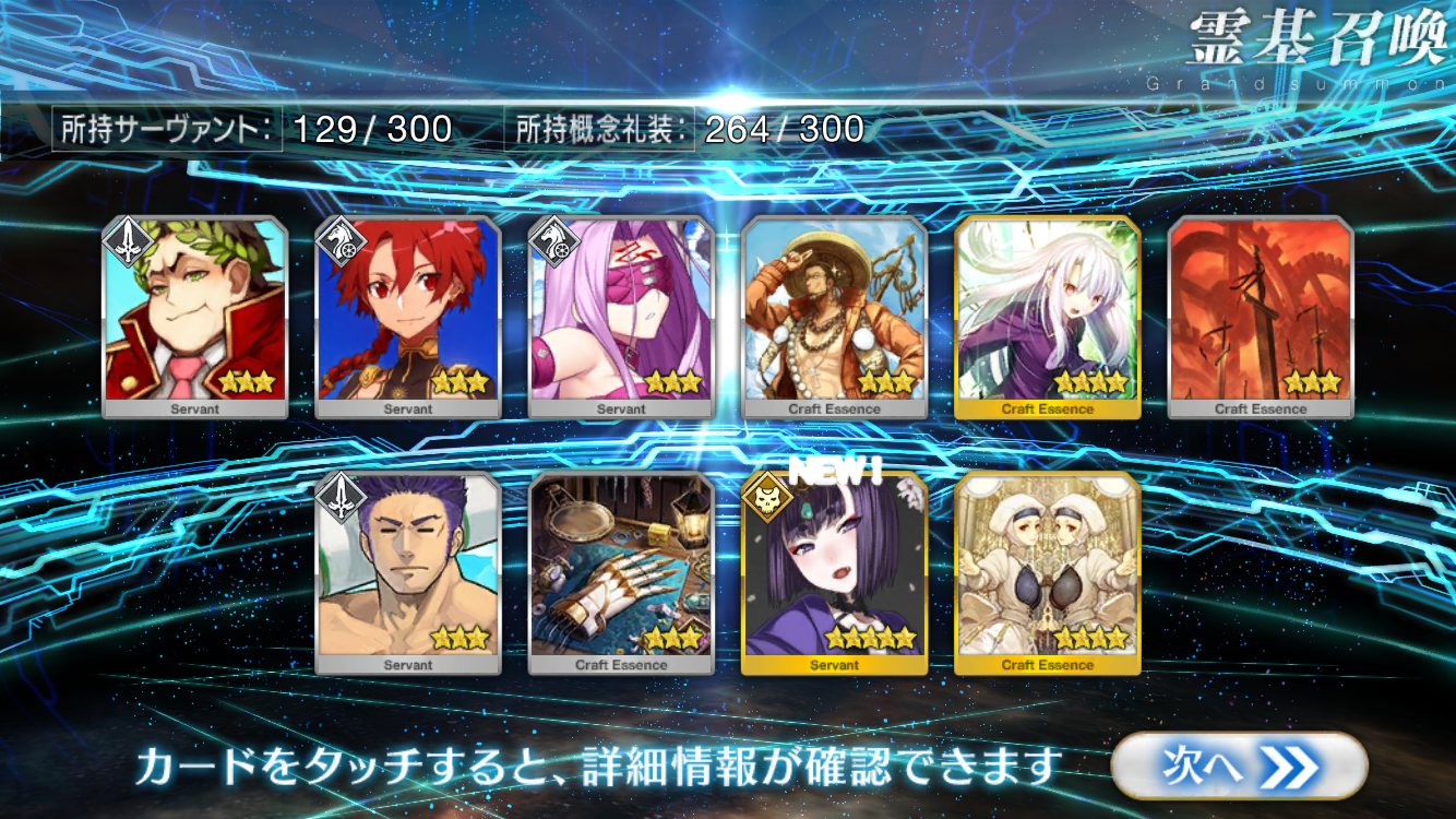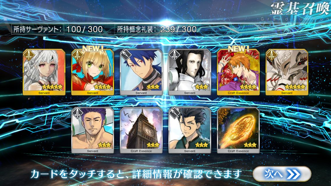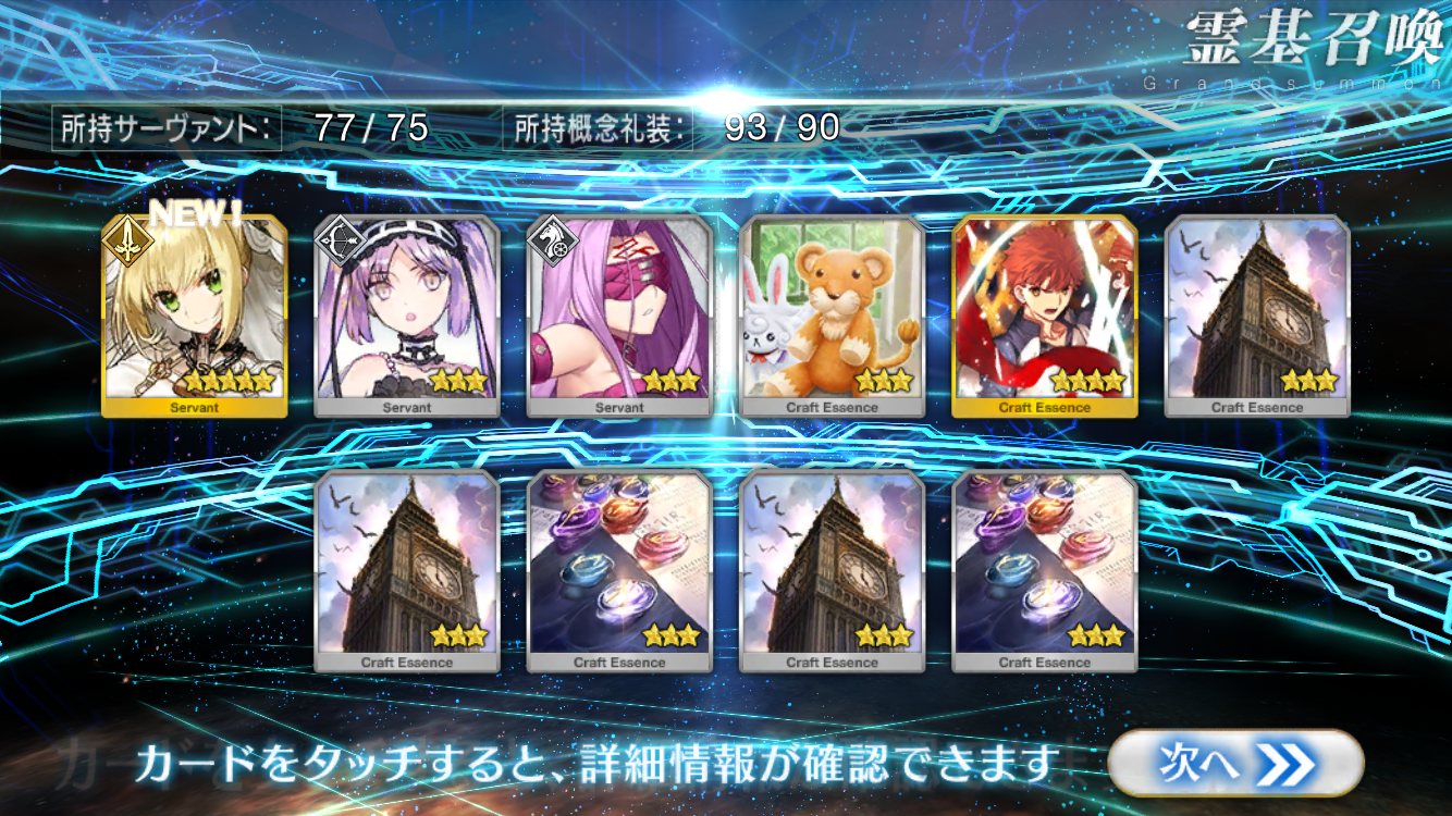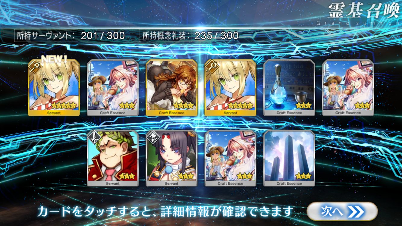 欲しかったのは術ネロ、信長、オルタ、えれなだったので目標は達成出来ず。