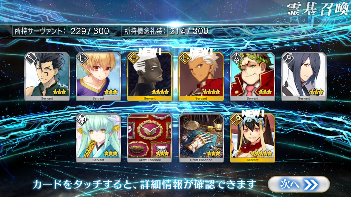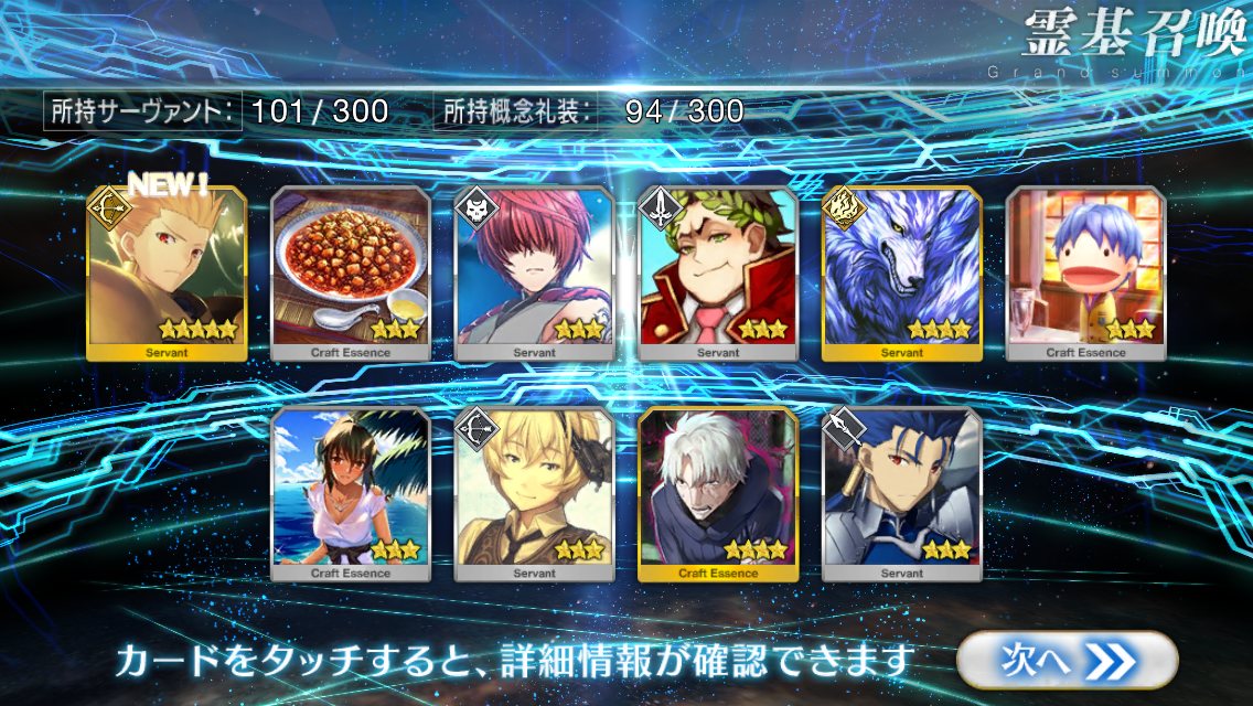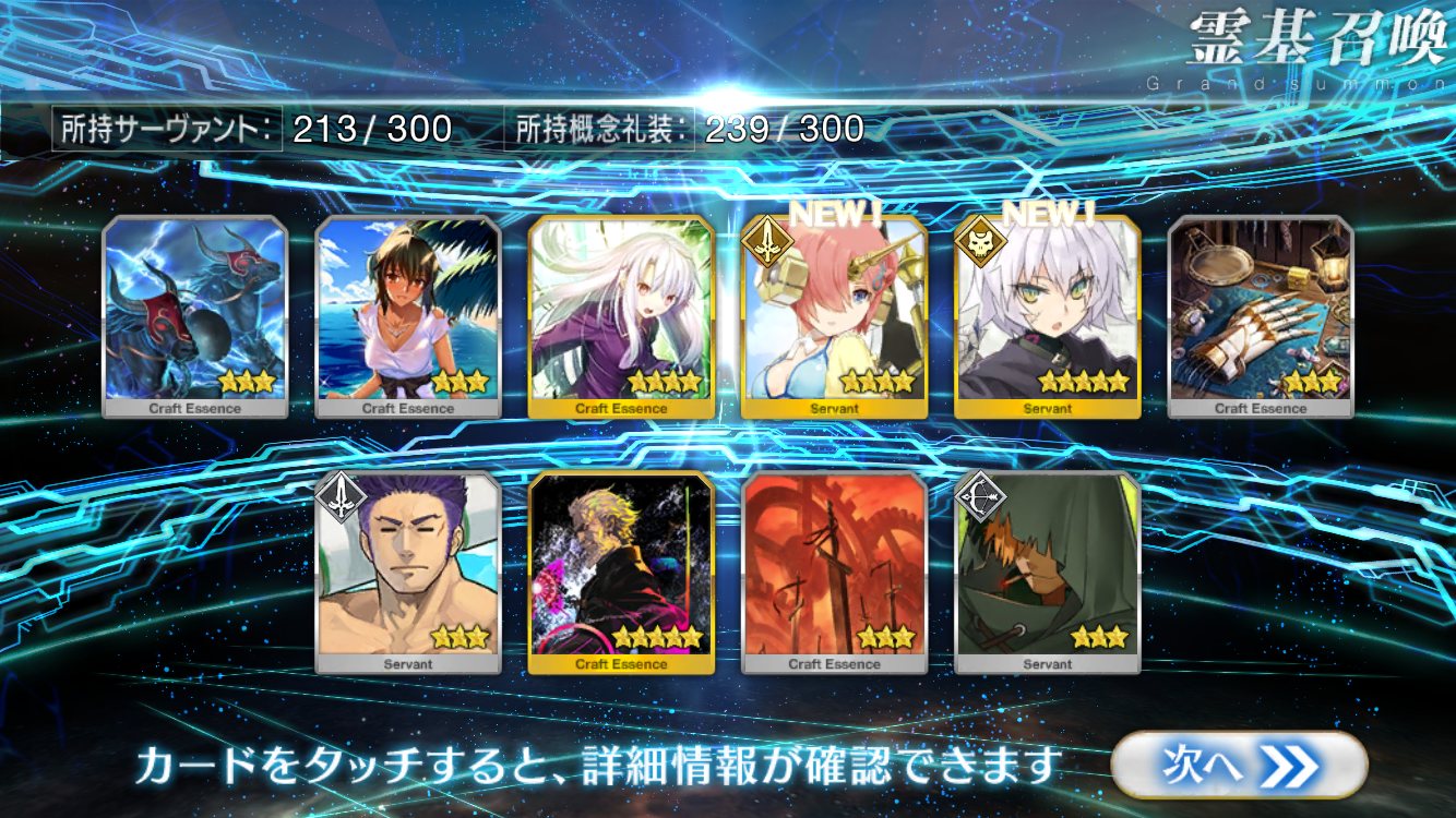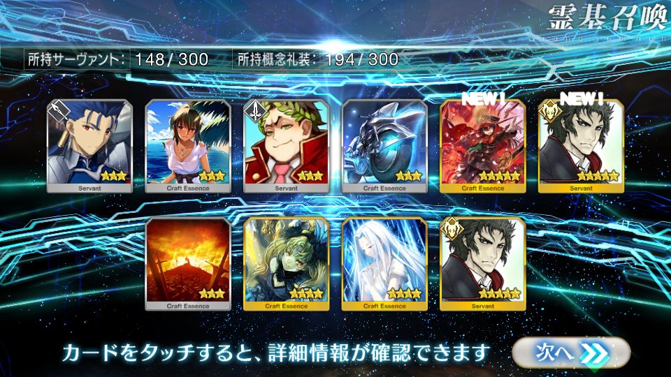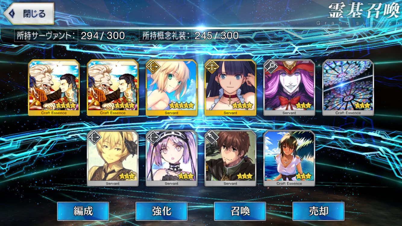 自分ではそこそこ微課金強者のつもりでも重ならなくて配布鯖の方が強いなんてのも聞くしな★5鯖3枚抜きとかチョットヤバいレベルのヒキ画像とかいずれ来そう