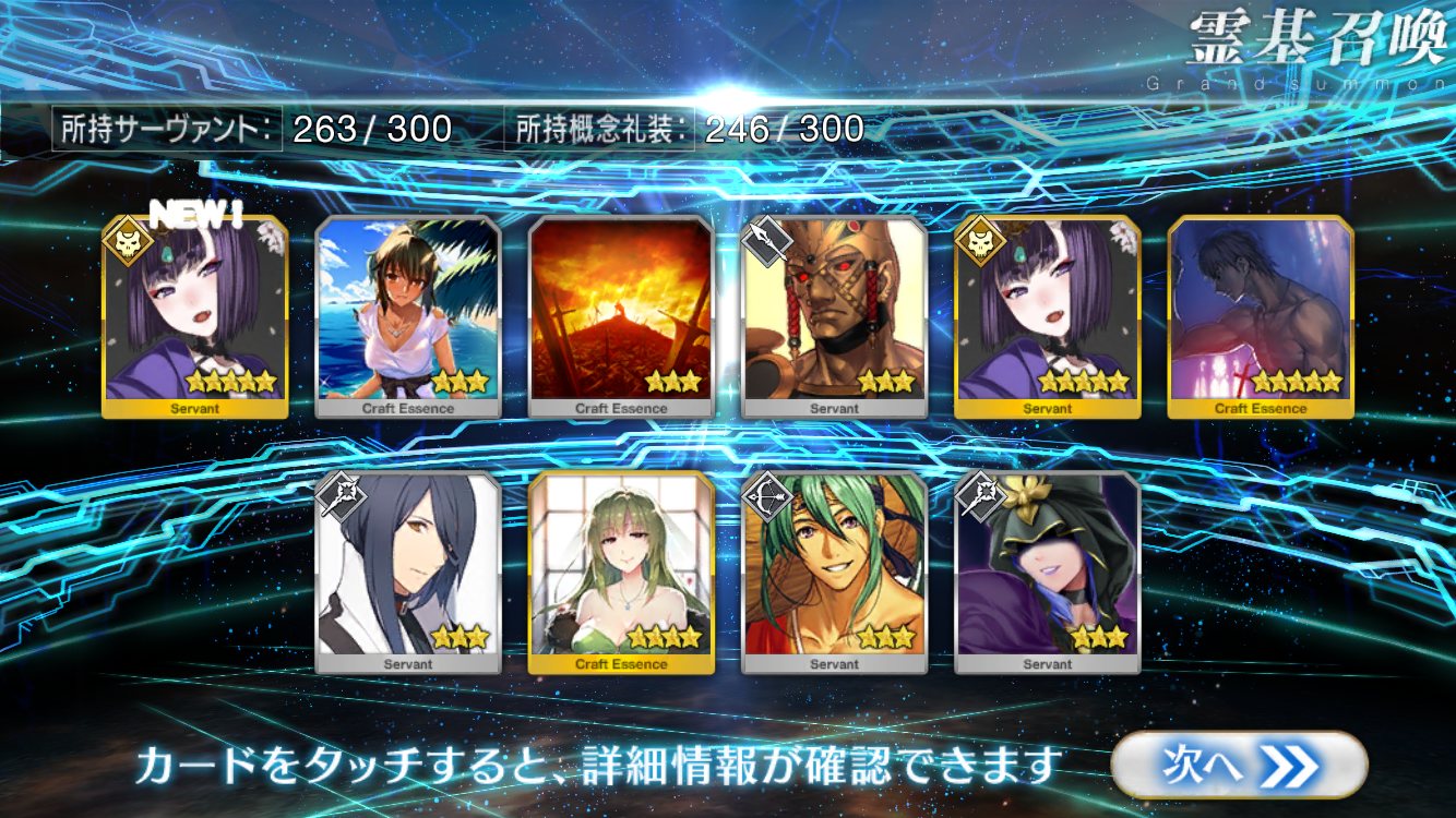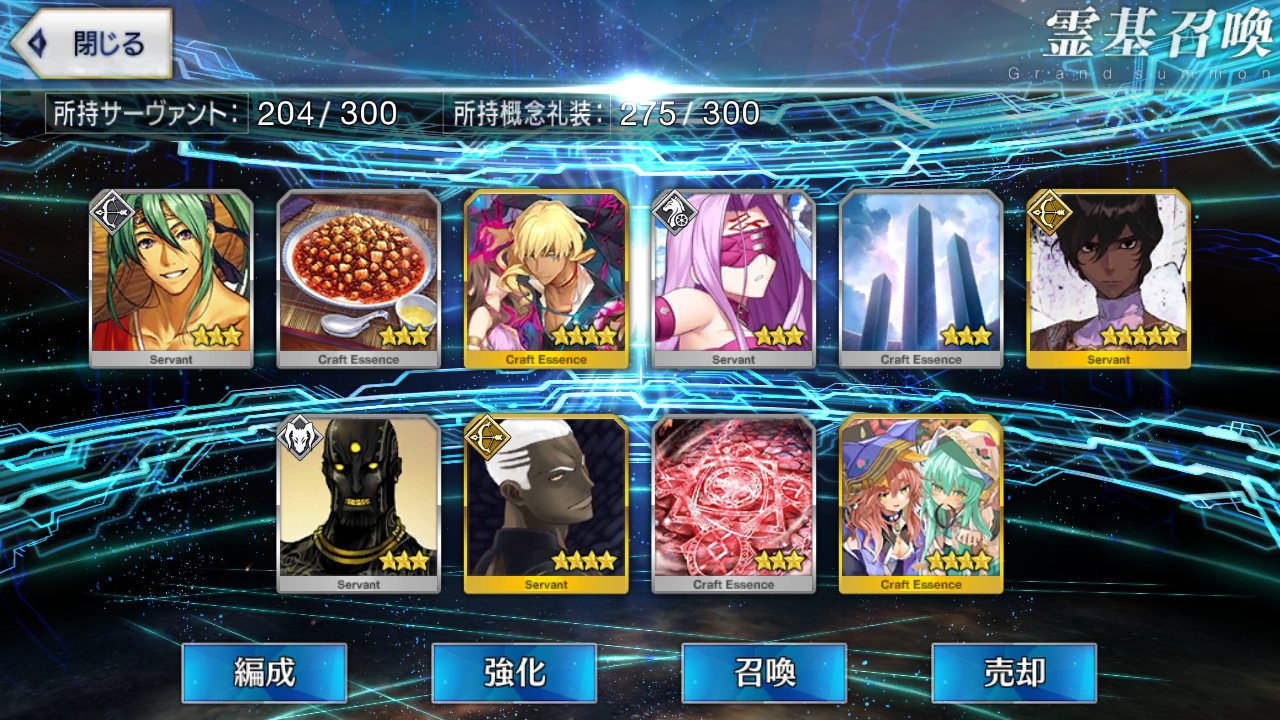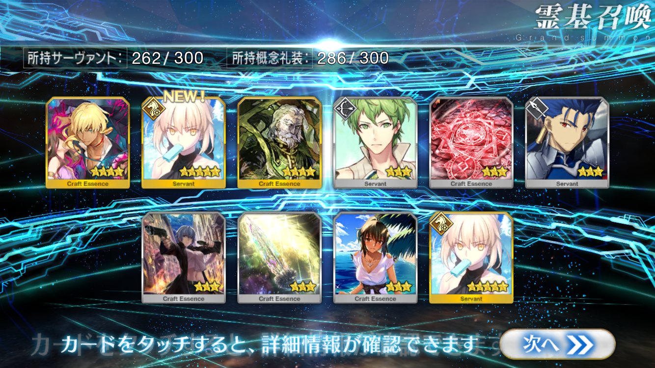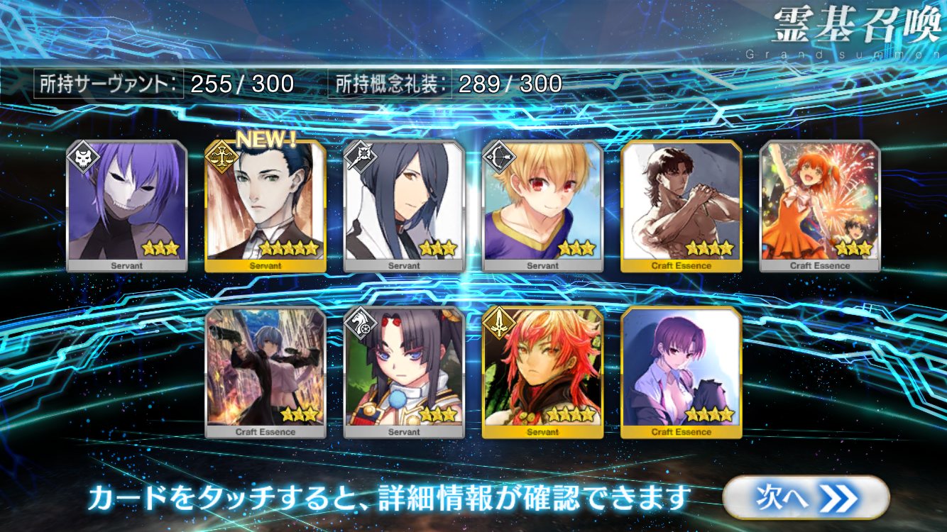 自分ではそこそこ微課金強者のつもりでも重ならなくて配布鯖の方が強いなんてのも聞くしな★5鯖3枚抜きとかチョットヤバいレベルのヒキ画像とかいずれ来そう