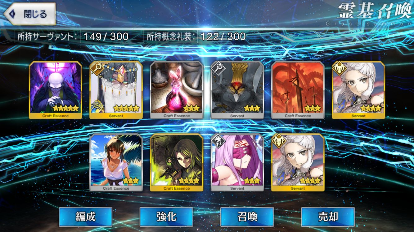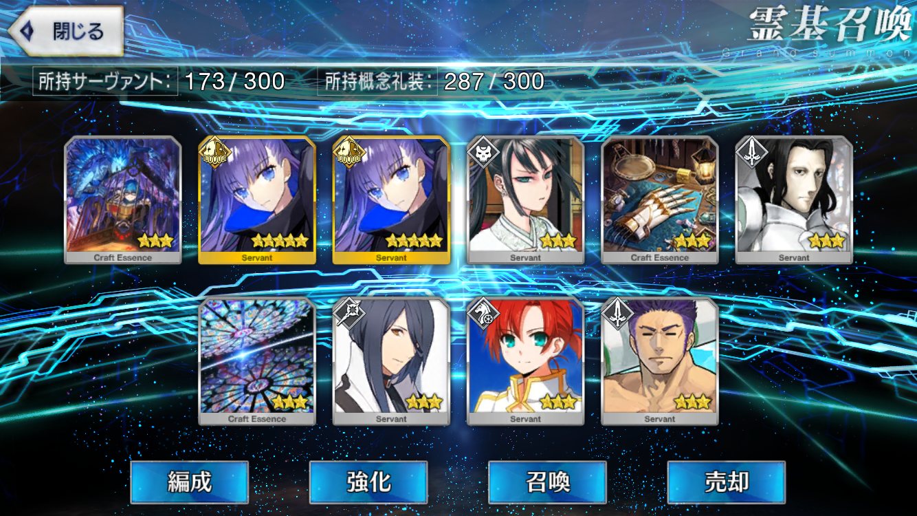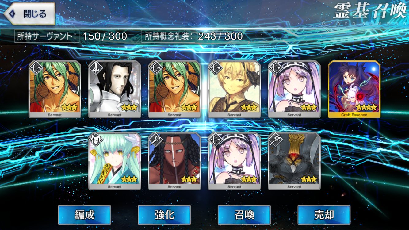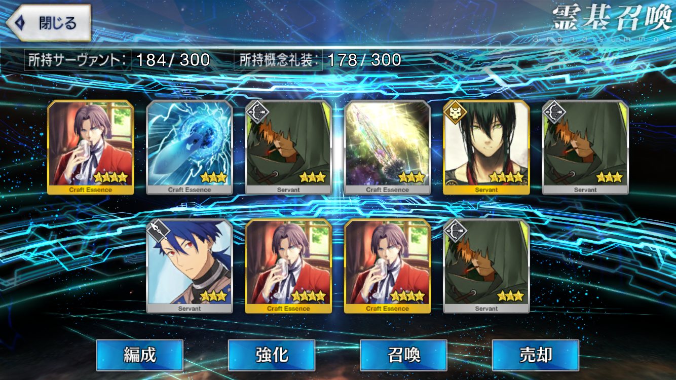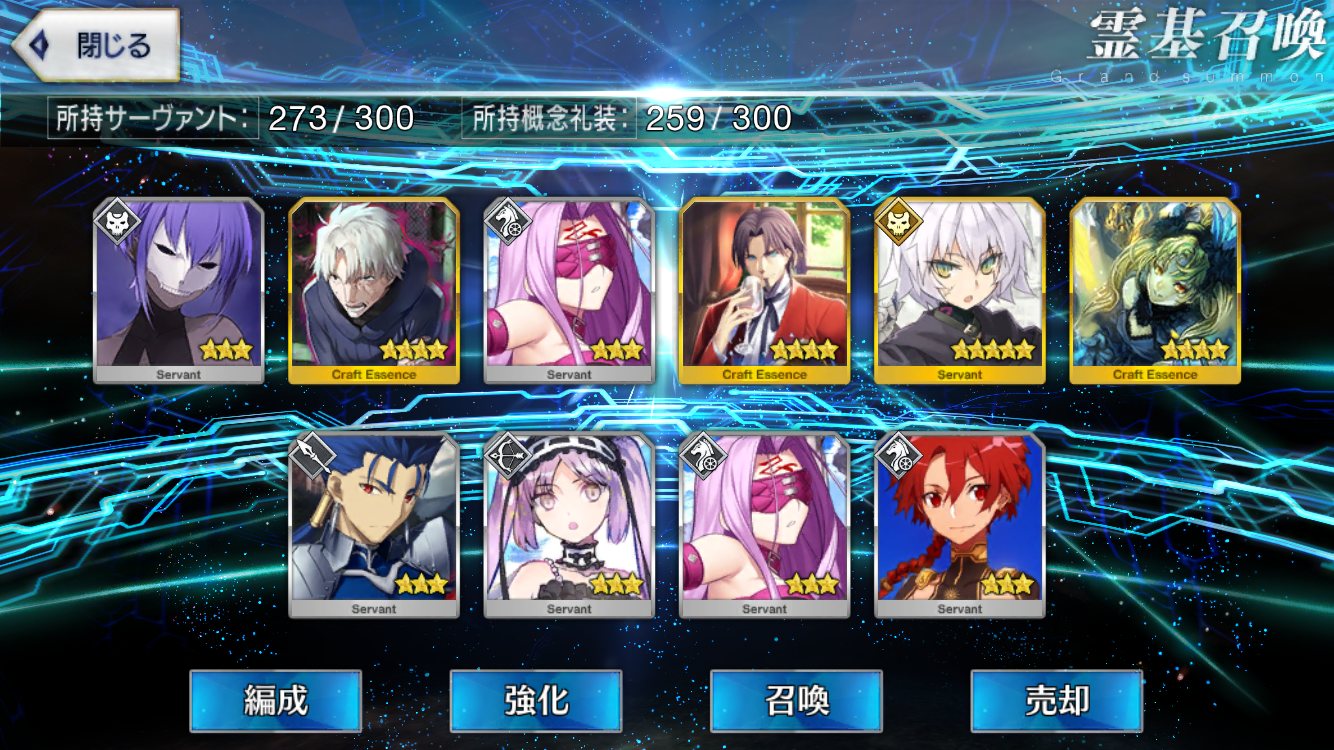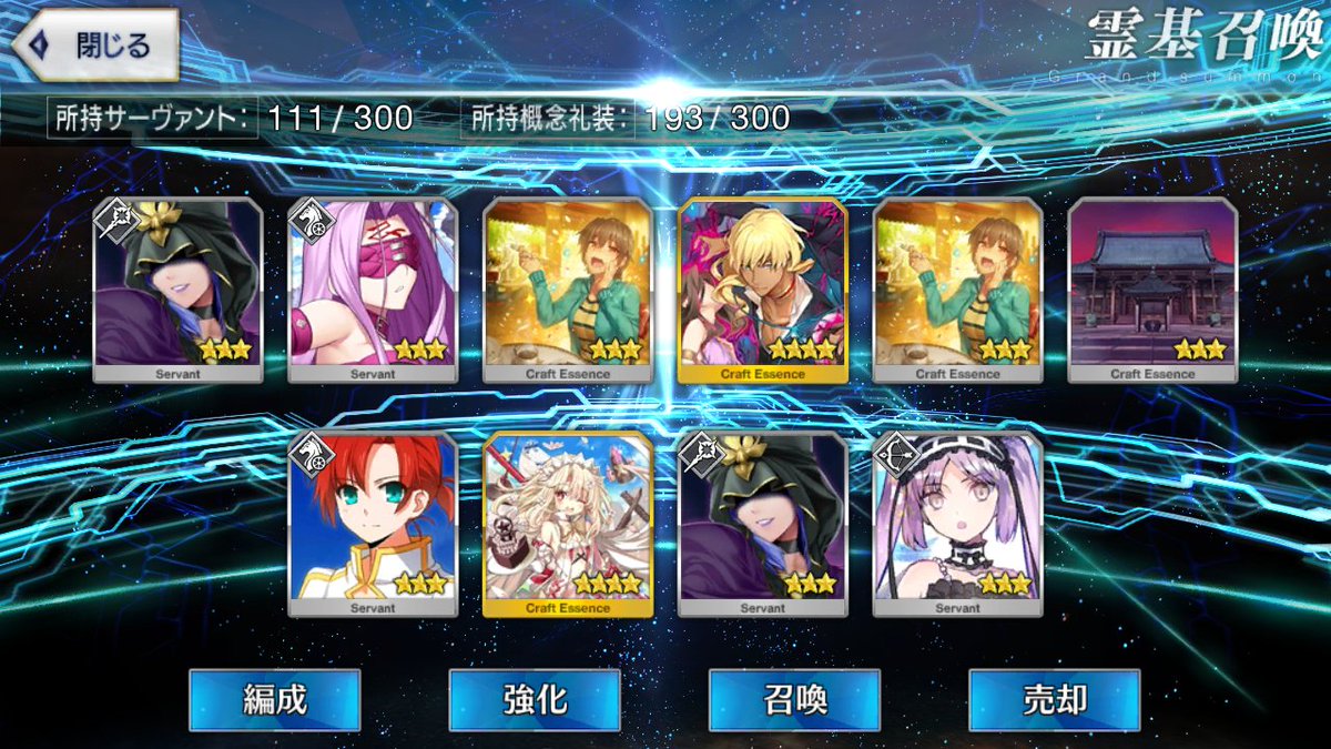 初期開始勢で課金10万以上してるが星5全然いない私は相当運悪い方だよなぁ