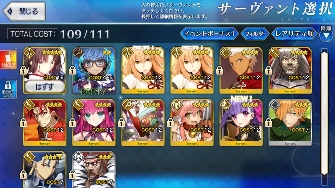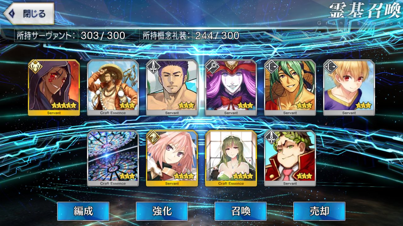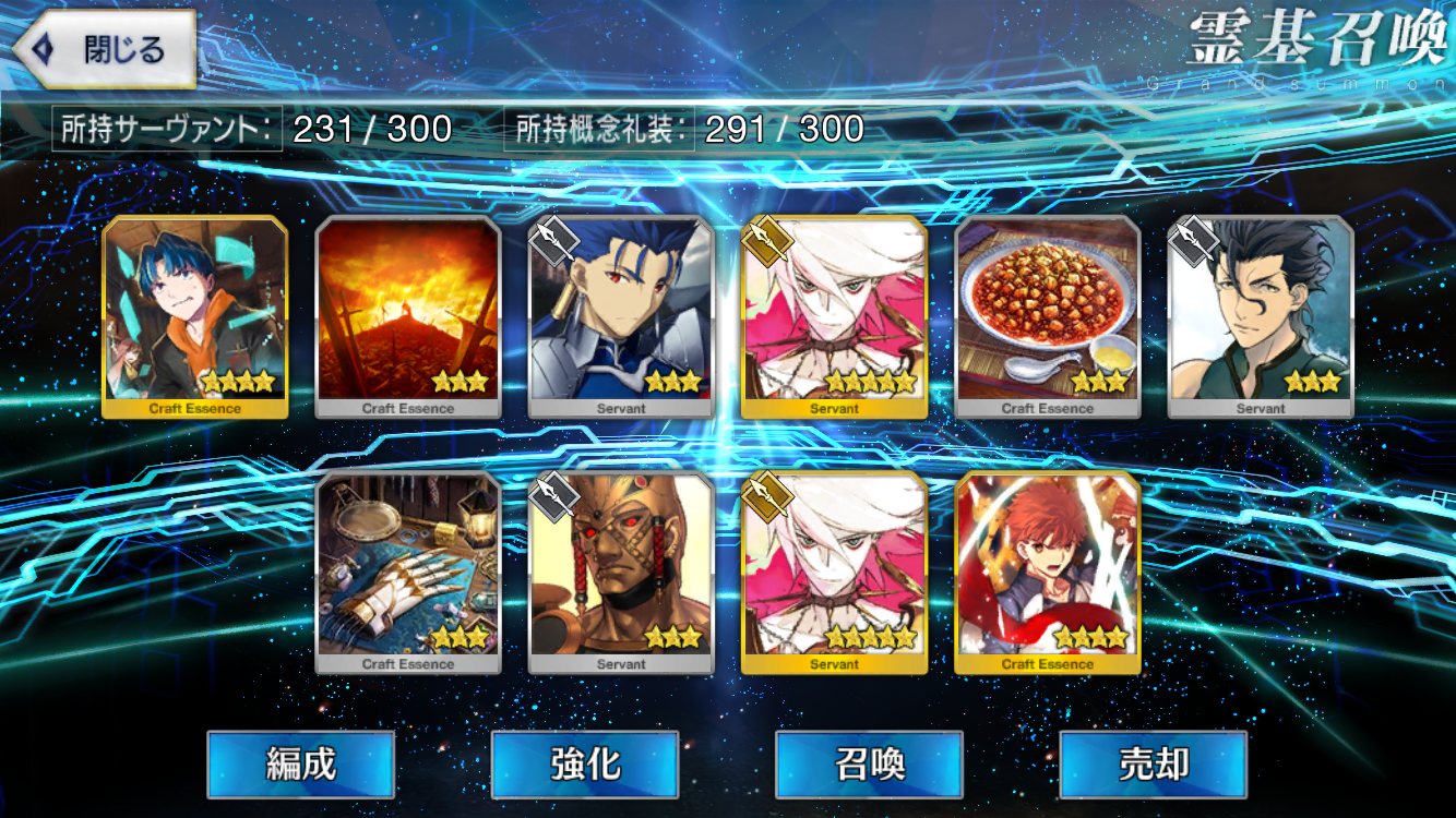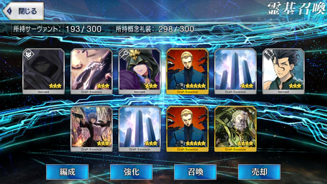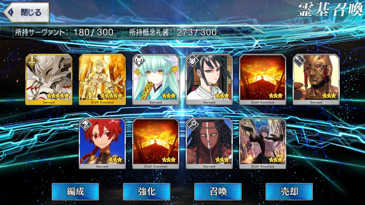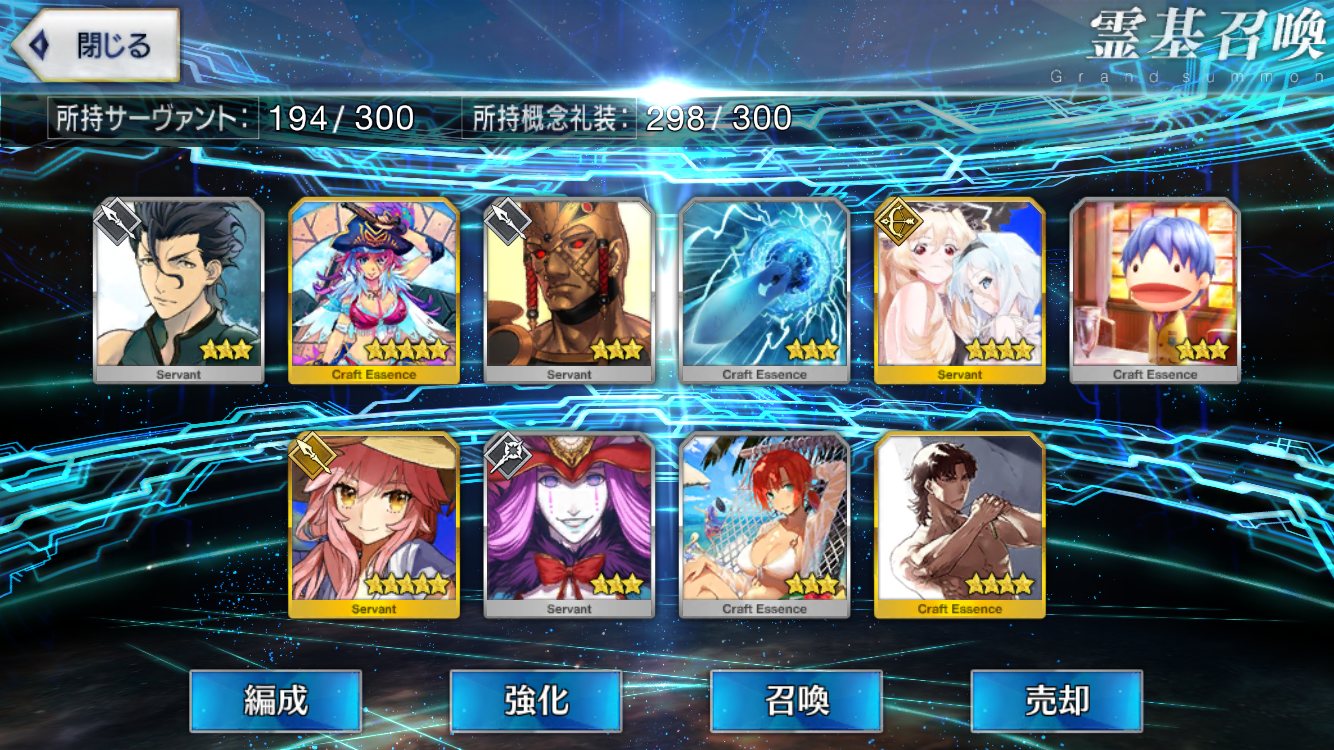 初期開始勢で課金10万以上してるが星5全然いない私は相当運悪い方だよなぁ