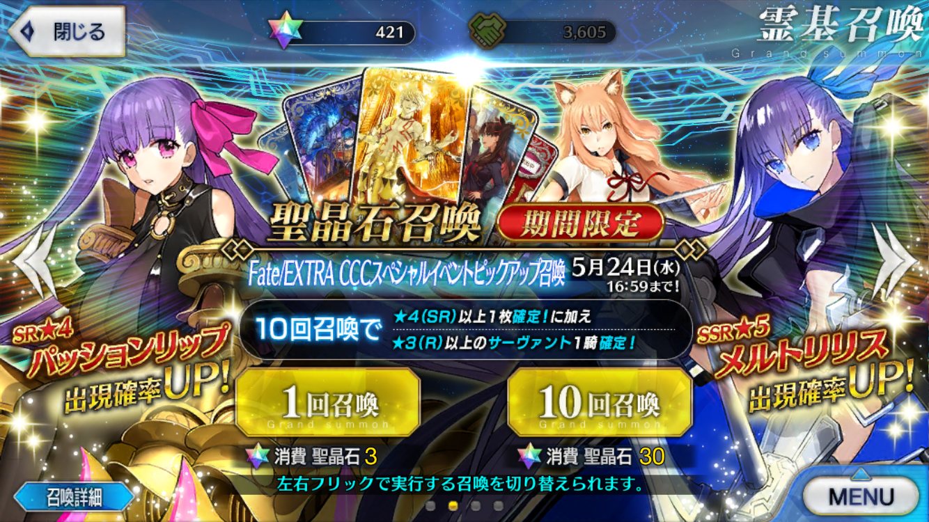 十連ででました。マーリンの他には、福袋のエルキドゥしかいないけどな!!!!!やったー!六諭吉捧げてアラフィフ紳士が来た!!来てくれた!!