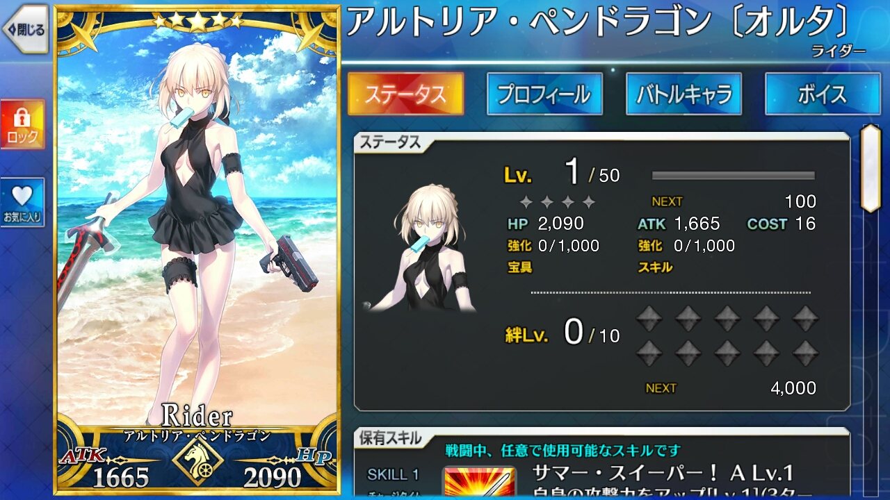 ちなみに我がカルデアの記念すべき100人目のサーヴァントです20連回した。2回目で水着オルタ2枚ぶっこ抜いてビビる。やはり、黒い王は話が分かる。