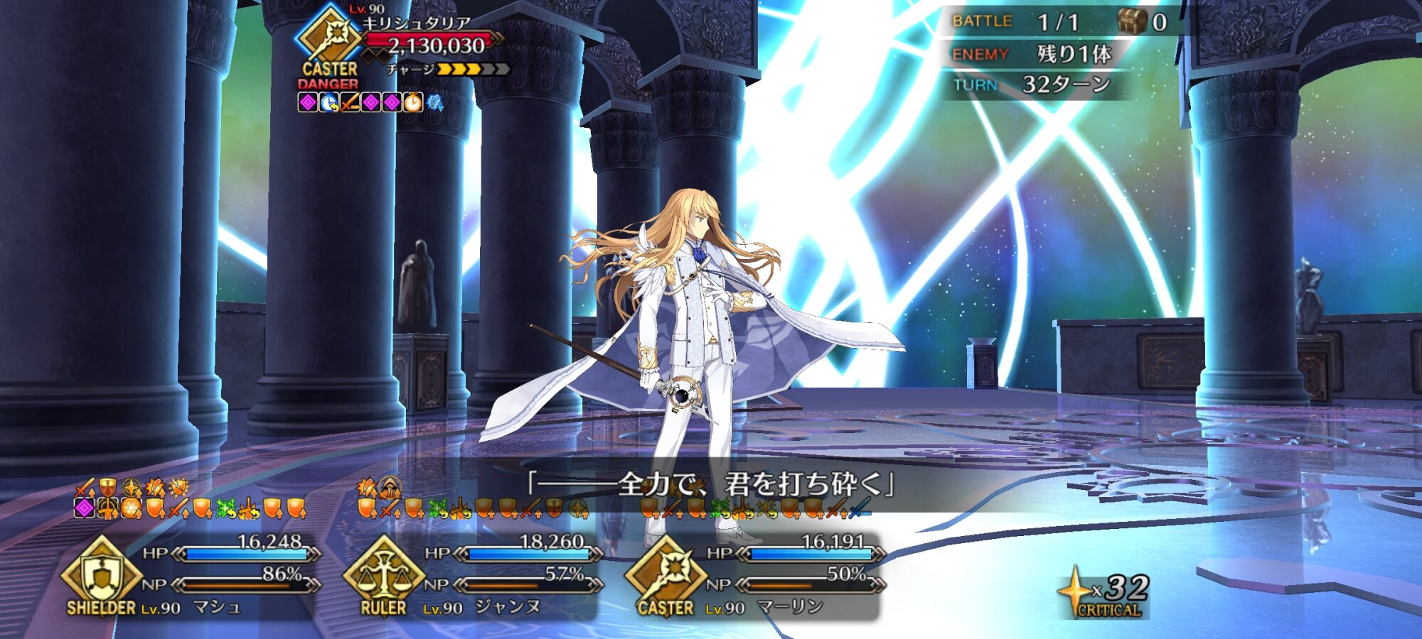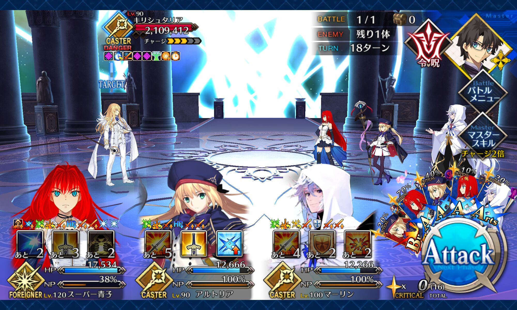 今ではNP30チャージの印象が強いマハトマですが、その真価は最大80%の確率で発動する宝具威力アップです。その倍率はなんと50%