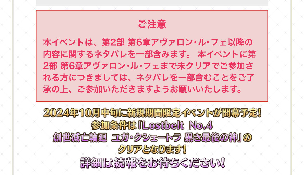 R18関連話題、よくてよ無しのガチャ結果、実装から二週間以内のシナリオ及び開催期間中のイベント内容、進行度依存の報酬、最終再臨や霊衣解放の画像や話題は専用スレにてお願いします。