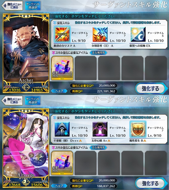 はやくフレポガチャをひきたい絆を9まで上げたサーヴァントはスキル育成もサボることにしてるうちのカルデア。