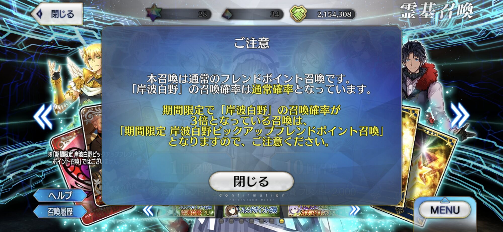 マハトマは命を超越していた...?とりあえず白野召喚は画面の真ん中に白野がいるのがそうですから、引く前にご注意ですわよ!
