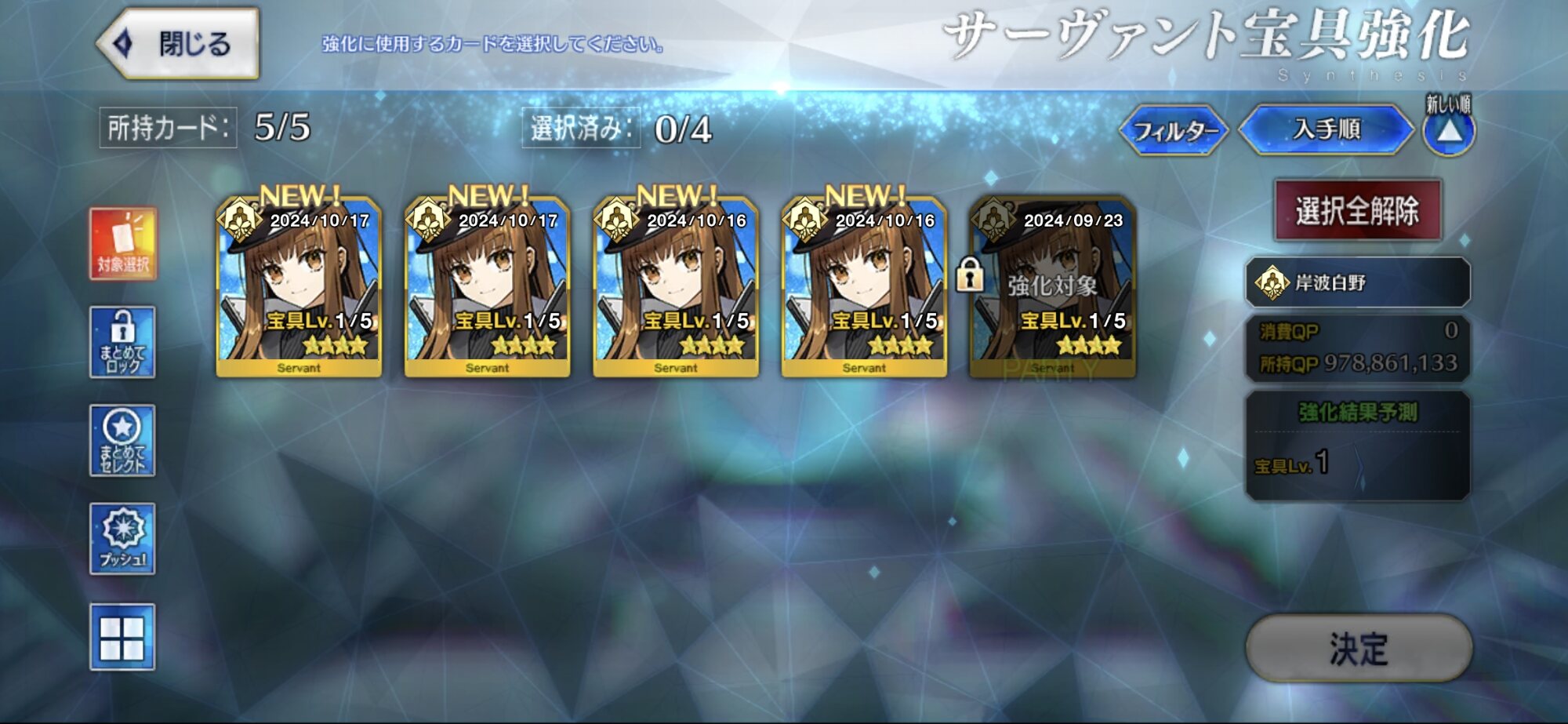うちもだいたい50万ちょっとで宝具5になりましたわねピックアップされてもなかなか来てくれない岸波センパイ。