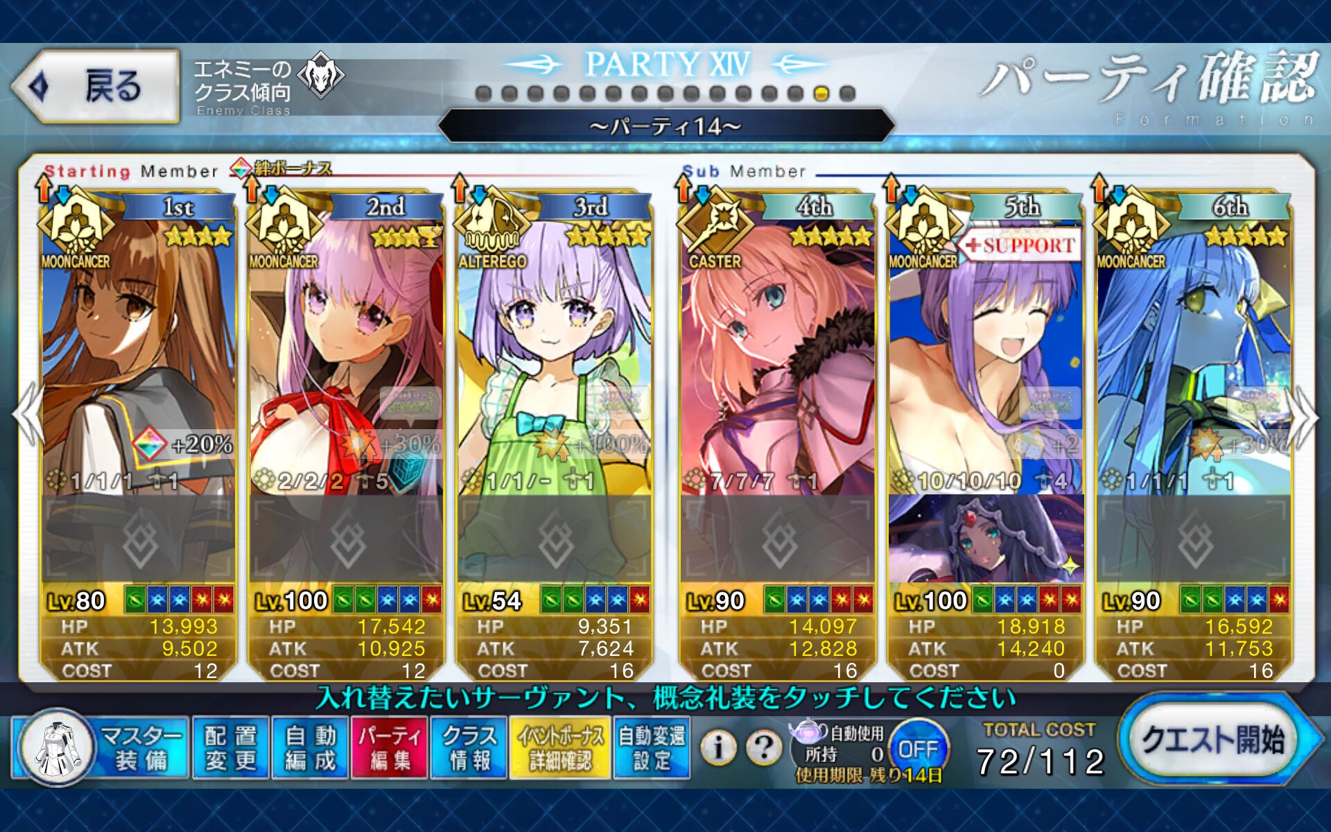 周回で継続したバフやNPが欲しいなら不向きだけど、瞬間火力やCT減を利用した使い方ならコストも考慮したら十分面白い性能になったんだよねカズラの第一第二は結構ガチ感あるけど第三は妙に足がすらっとしてるからか急にファンタジーロリになる感じを受ける