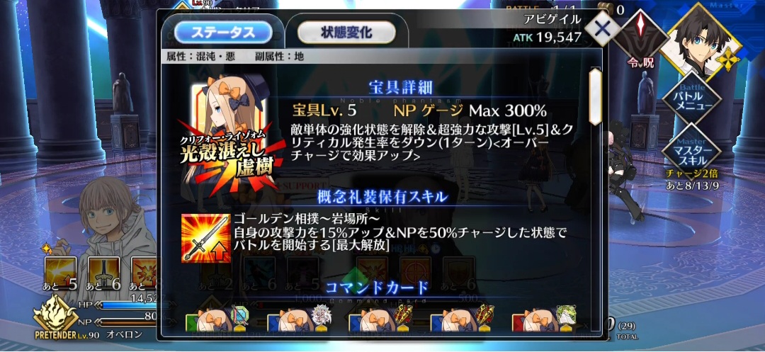 これは失意の庭と違って、外部からの干渉だからねえ。沖田さんは別の攻め口なら効果ありそうだけど、ノッブはわからんザビを完全体にして育成すませてしまったので、二体目を育成しはじめたところ。