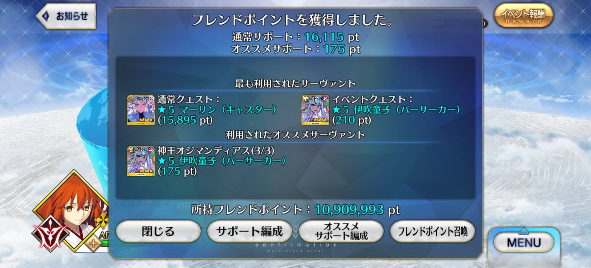 令呪クラススコアが初めて役に立ったちょくちょく雨降るし湿度も割と高いから残暑感が凄まじい