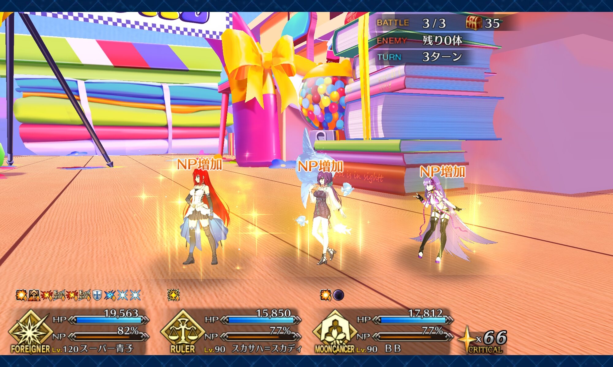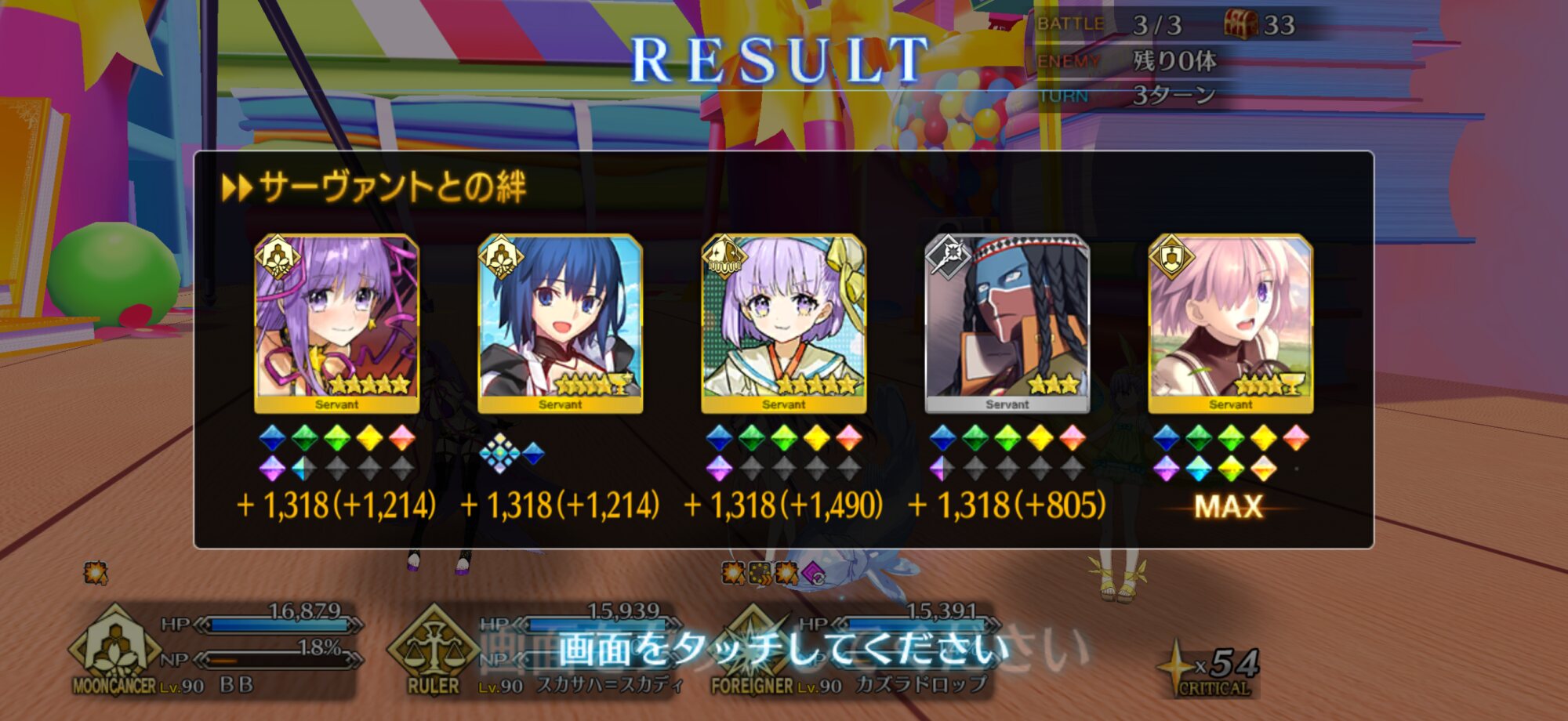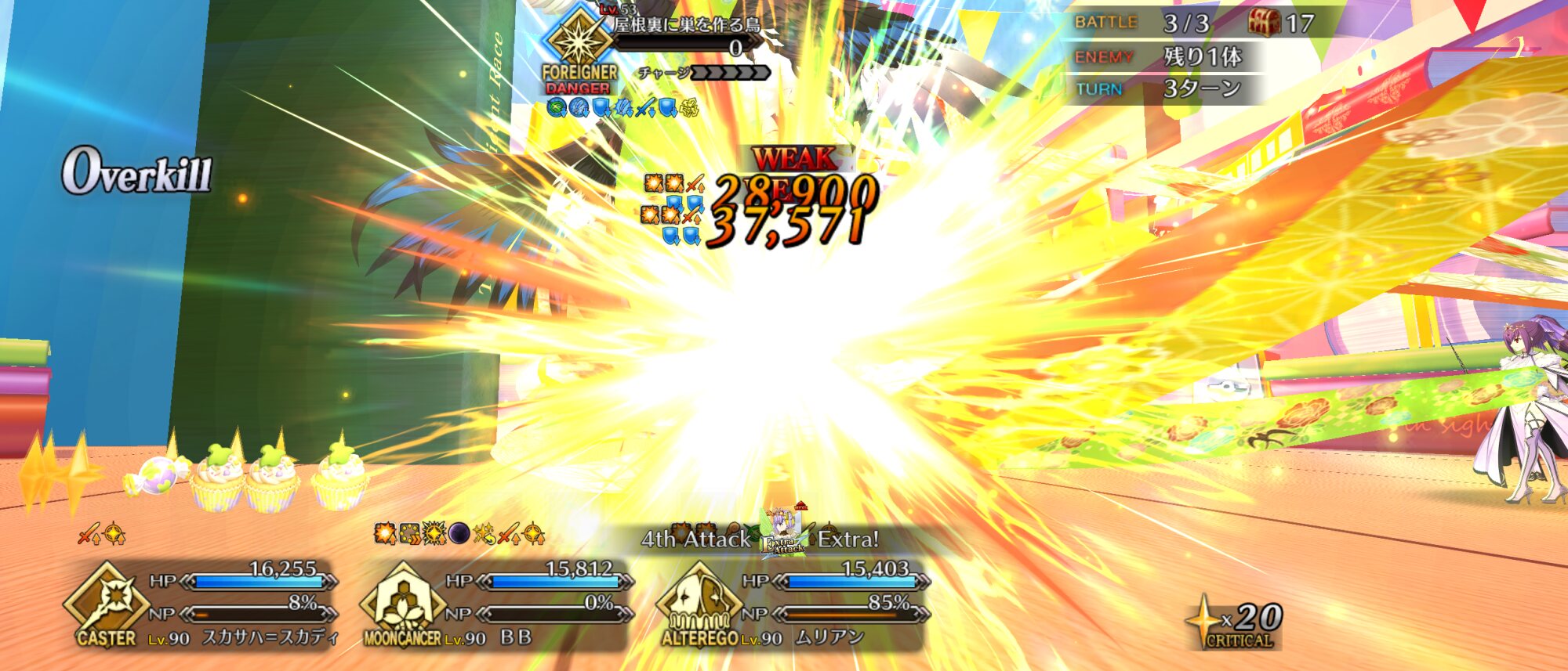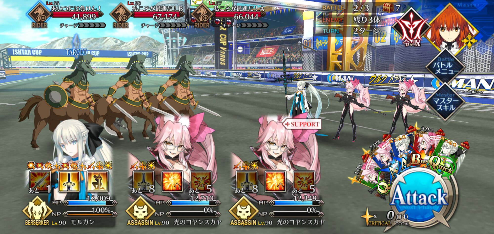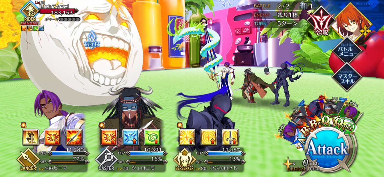 ボイジャー宝具2Lv100金フォウマアペ1開けのガチ育成とは程遠い状態なんだけど、クリ殴り活かしたら3ターン周回叶った!