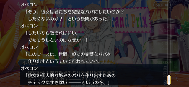 過度な支配主義や完璧主義は本質的に臆病、って話を思い出すな‥‥今回のイベントは色んなサーヴァントのパパ側面が見られていいなあ