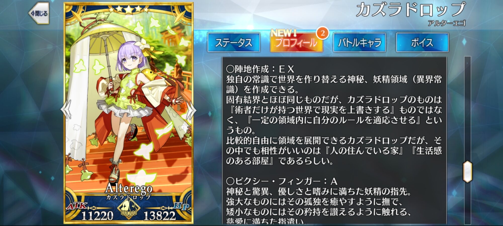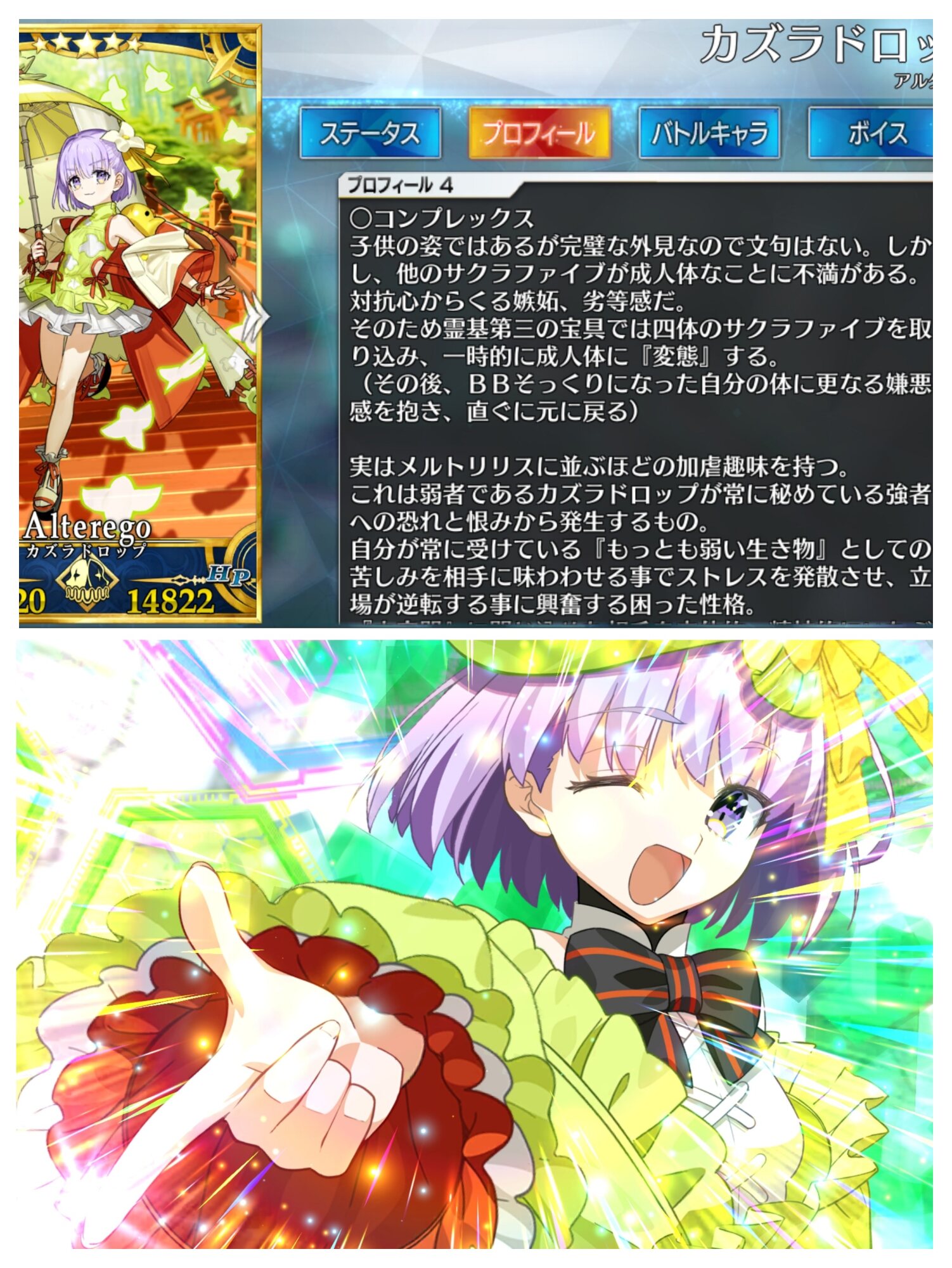 こっちが本来の性格なんだろな。魔術師としての矜持とAチームメンバーの劣等感で空回りしていたがようやく本来の性格になった交換所の塵60個ありがとうと思ってたけど小太郎君スキルマにしたら消えた……