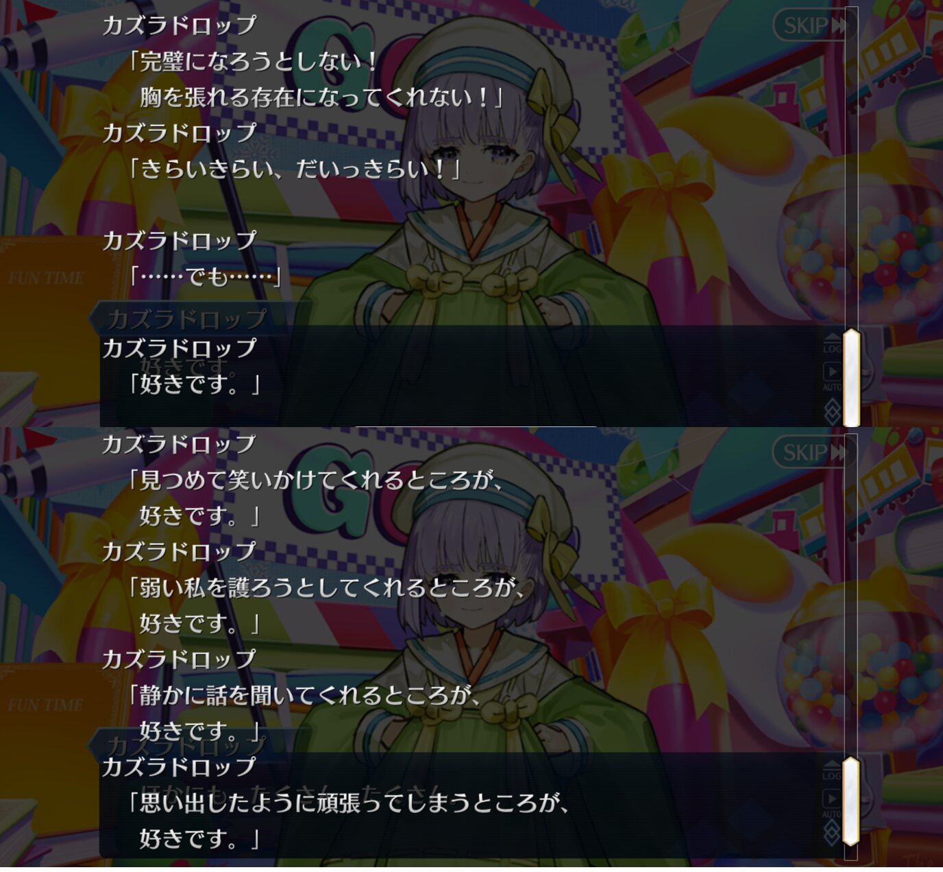 1周目のカドックのプレゼントは子供が相手という配慮が足りなくて、オベロンはカズラじゃない誰かを想定してのプレゼントだからダメだっただけで>>16