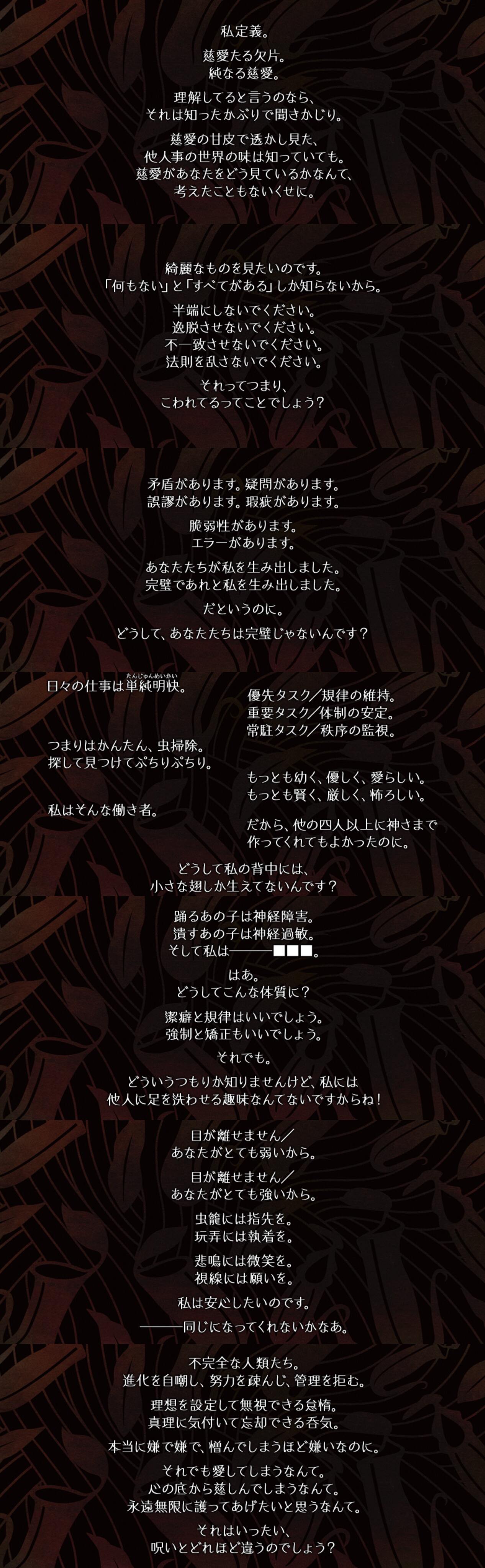 彼女からすれば人間こそ度し難いと思ってるよ第5CPの攻略をするさまがパパというよりホストクラブみたいな詰め方だな?と思いましたおはようございます