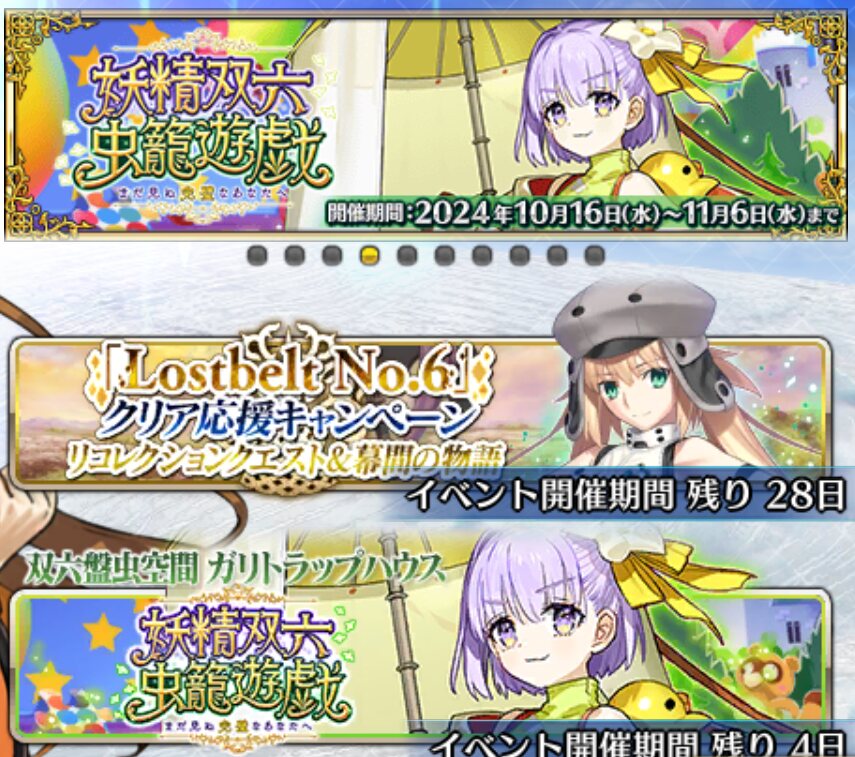 上側のお知らせバナーの方は、右端にちらっと手が映ってるだけだしイベント交換アイテム、モニュメントの下にスキル石があるの今気づいた....周回しなきゃ.....