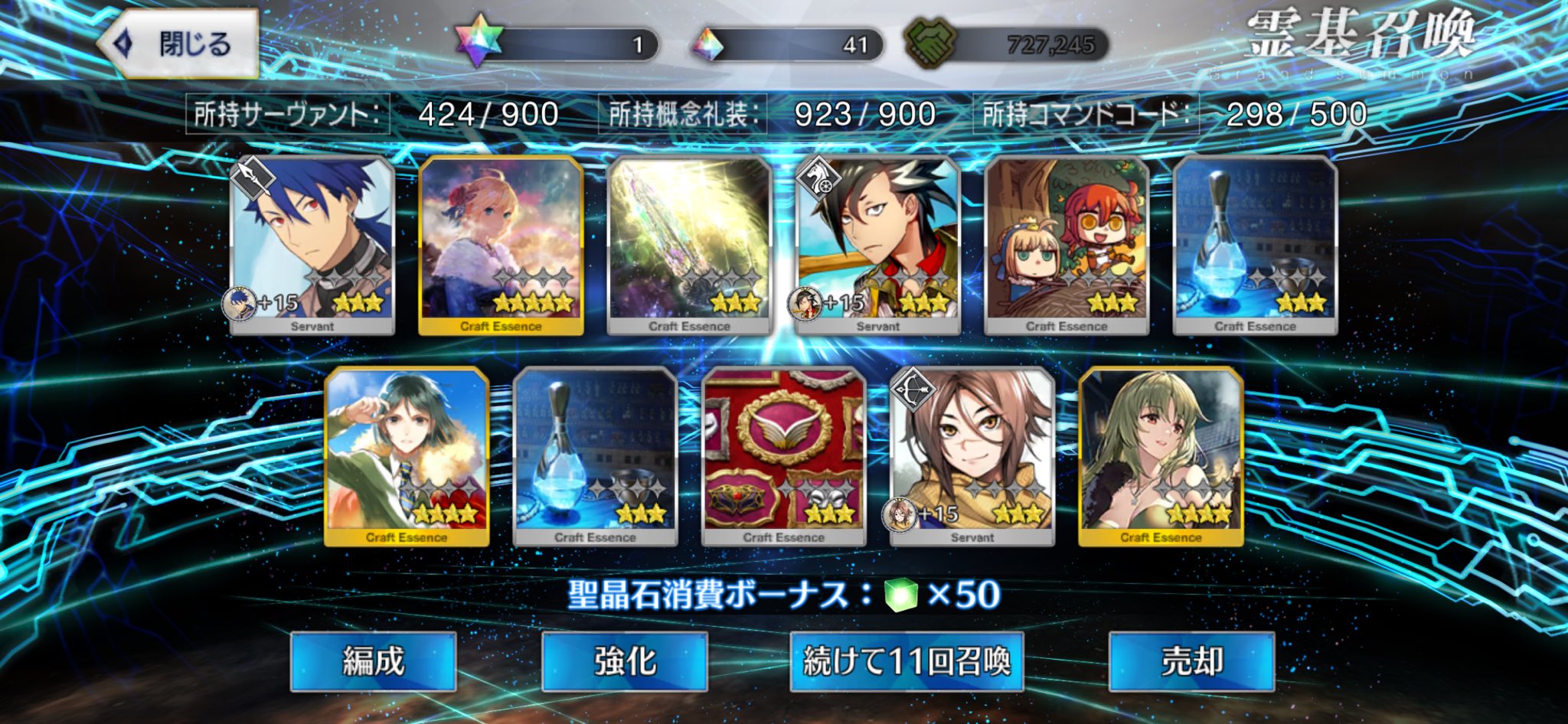 さてと誰が釣れるやら(メルトが釣れるとは欠片思ってない顔)メルトリリス4で笑ったそういえばメルト全部強化入ってるんか