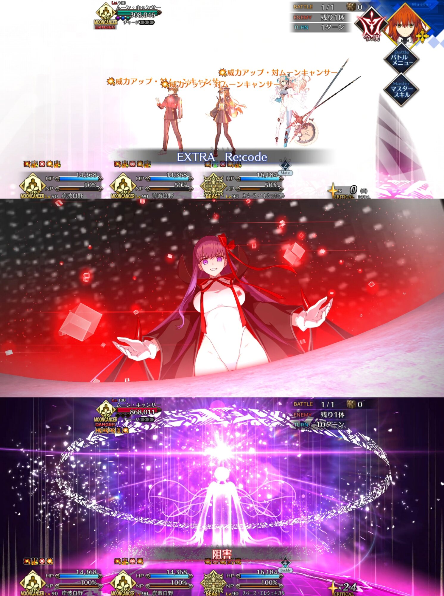 ムーンキャンサーとはくのんズはフィニッシャーは撮れましたがタイマンになってたかは撮り忘れ。マスターがムンキャにされた時の大人ダヴィンチがかっこよすぎ。