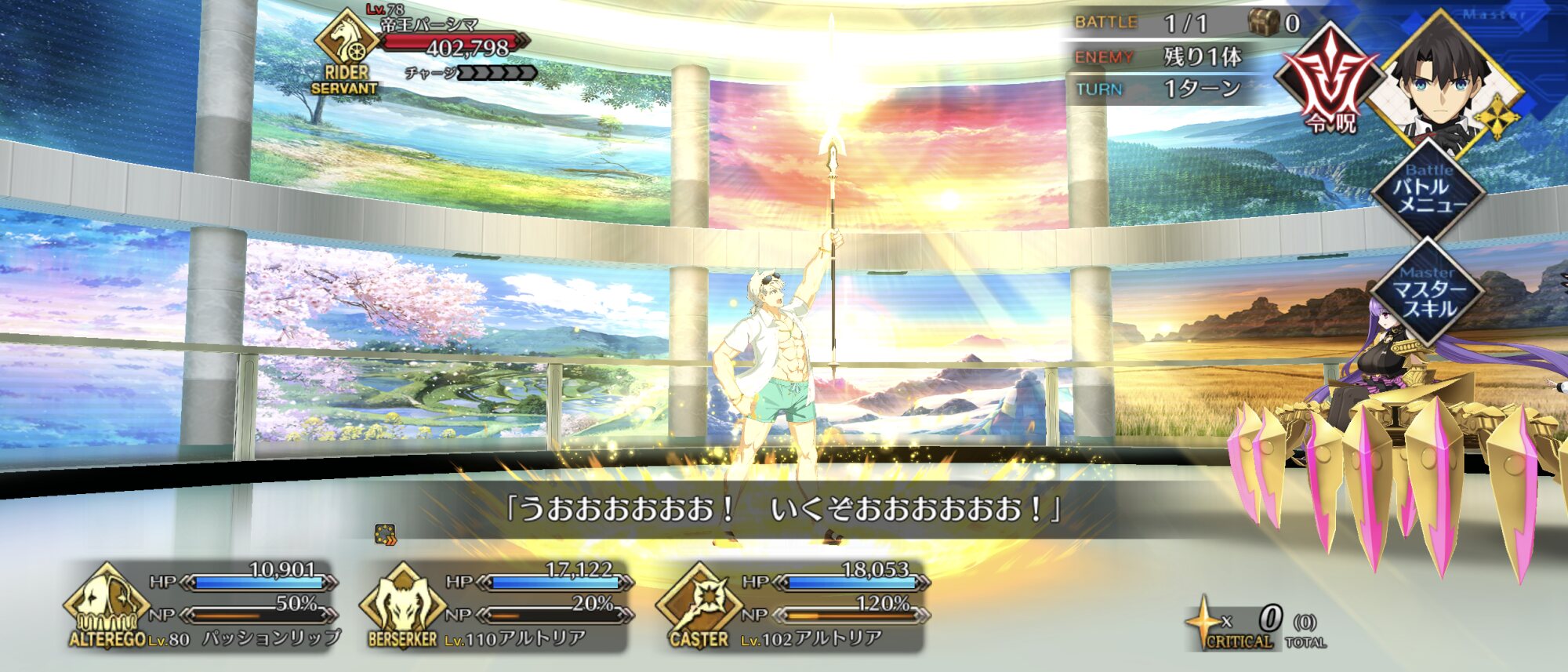 ここは最近あって絵が修正されたパンツのみでどうか…!(冒険)前回のキャスニキPUの時も35枚の呼符でオベロン2枚引いてたな