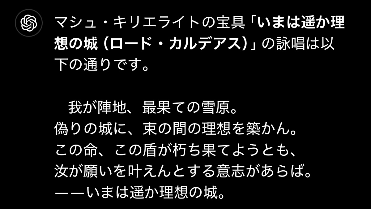 間桐と遠坂はメイトで、ムジークはアクインテンス、みたいな感じなんやろうなぁ……>>970