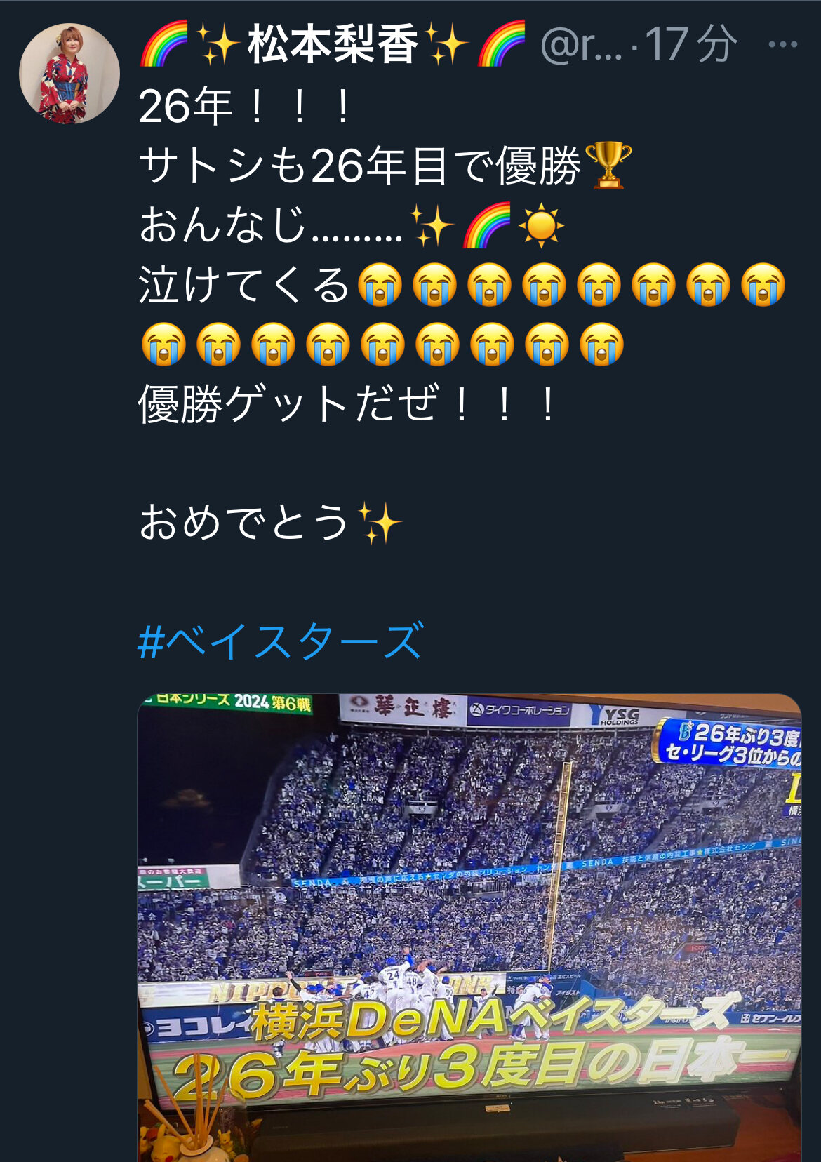 ベイスターズ優勝パレードで呑気に紙吹雪拾ってた私も壮年期になるわけだ