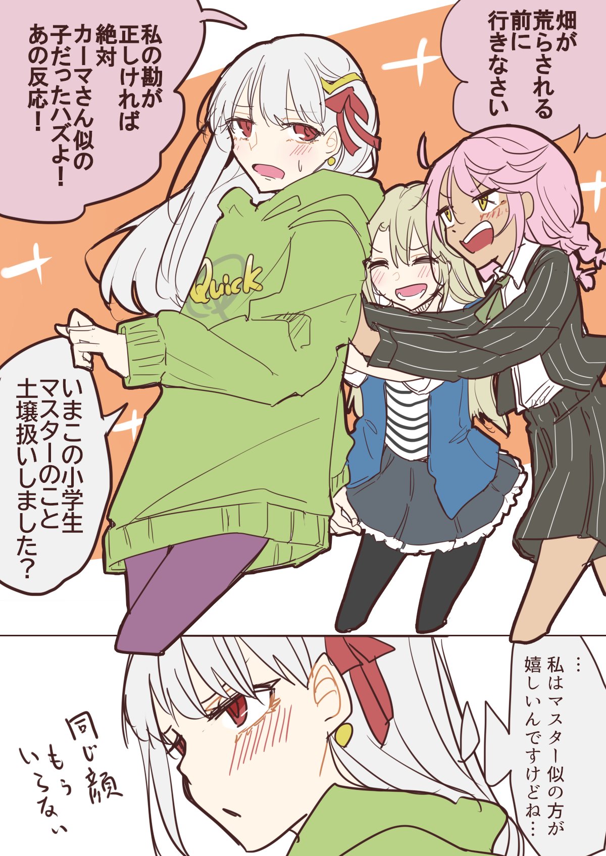 >……♪︎(嬉しそうにモルガンに抱きつく)