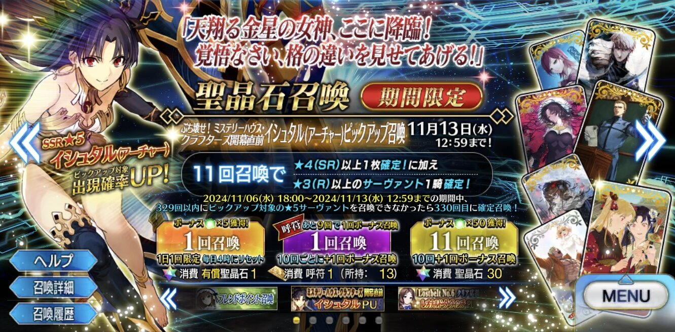 石もっと貯められるじゃんやったぜお知らせが無いから謎のイベになってる、取り敢えずイシュタルが出ることはわかった