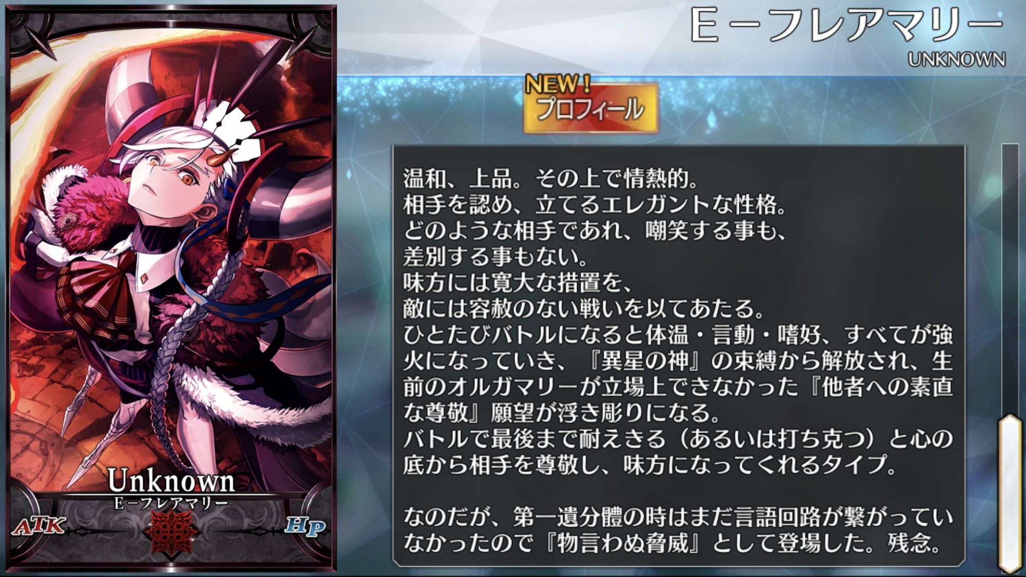 全部集めてカルデアスに渡すと金のオルガマリー缶が貰えるのよね。そういえばUピースに対してストーリー上ではどういう言及とか反応してましたっけカルデアの面々?