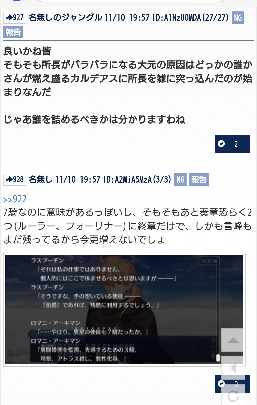 ネタバレ、最終再臨バレに関する話題で書き込むのが躊躇われる場合は下のスレへ↓