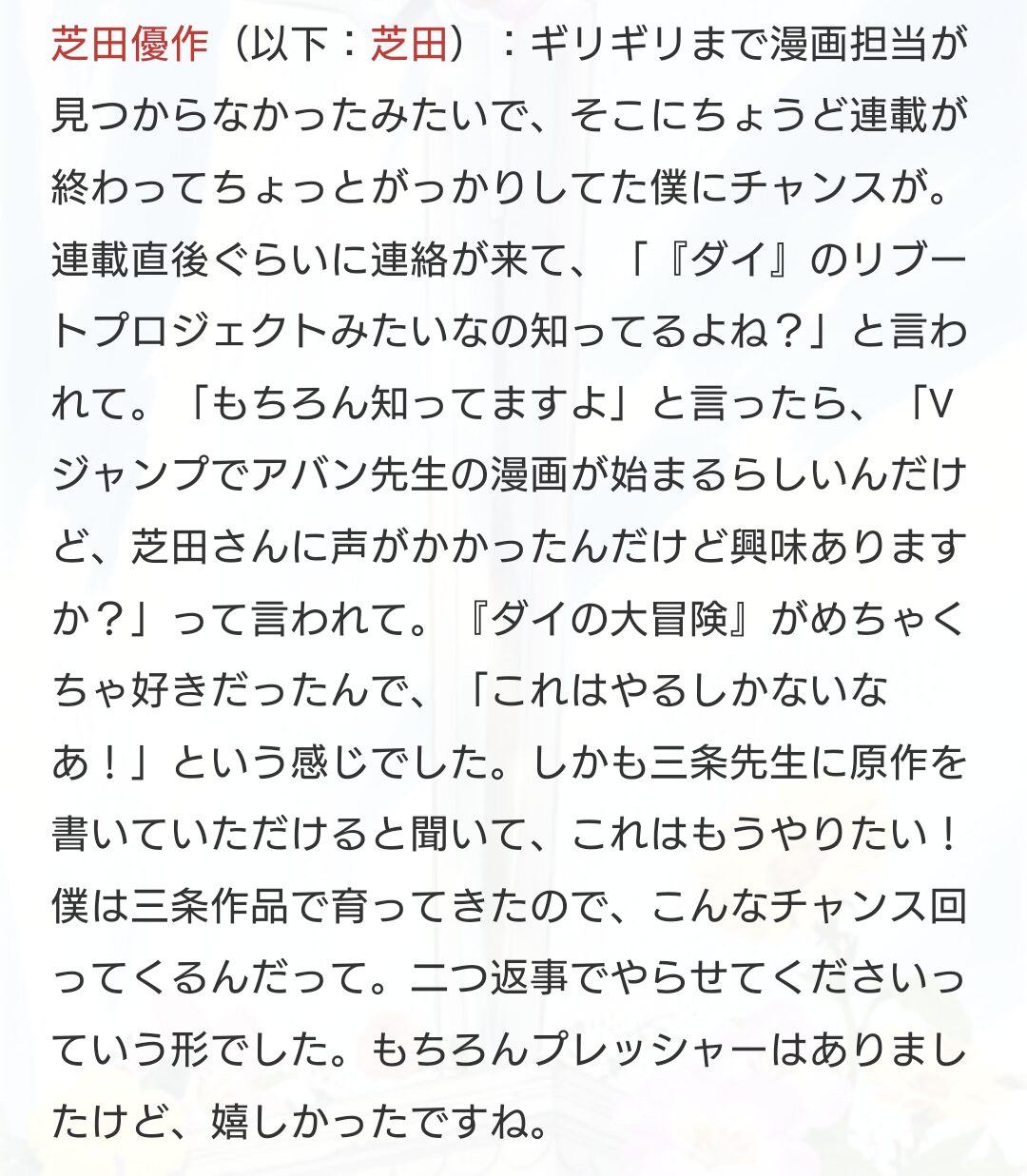 息子役の方の「生まれる前」発言で作者や関係者一同が大ダメージ受けてて笑った