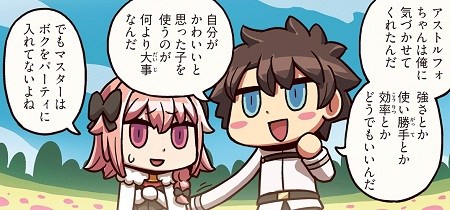 勿論シナリオで描かれてるぐだーずとは別けて妄想してるサポート欄の聖杯捧げた鯖によって各プレイヤー(主人公)の性格の違いみたいなのを妄想するのは結構楽しい