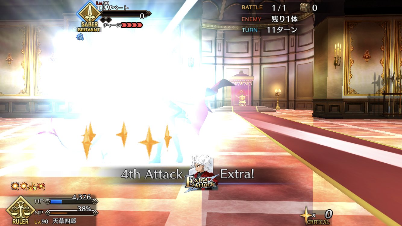 501名無し2017/10/10(Tue) 22:31:50ID:Q3MDEwMzA(6/11)NG報告疲れたみんなに今日の天草。単騎でエリちゃんを殴り倒せる天草は最高のサーヴァント。あ……ヤバい…ケイオスタイドが漏れる…>>504よくてよ8