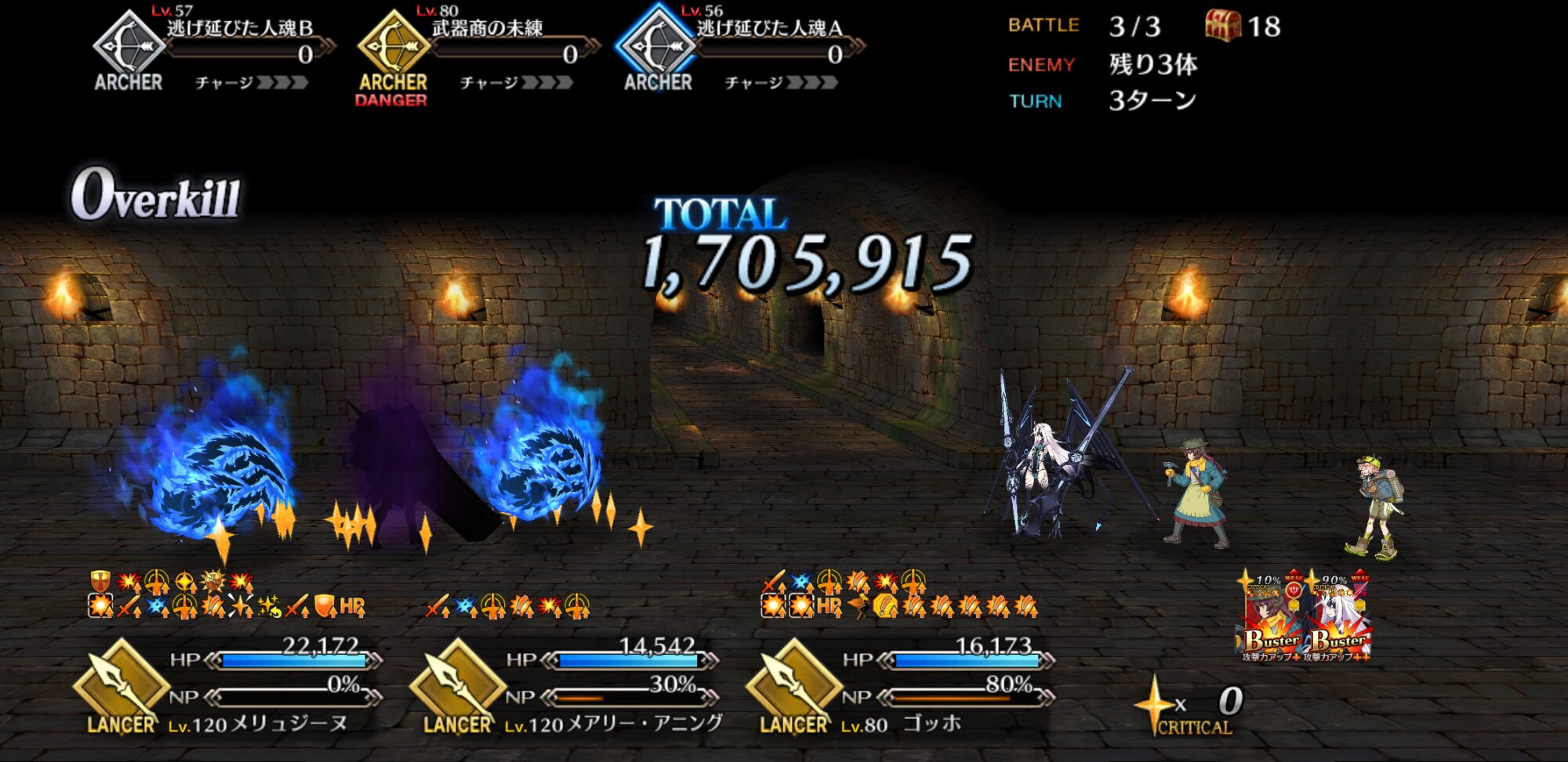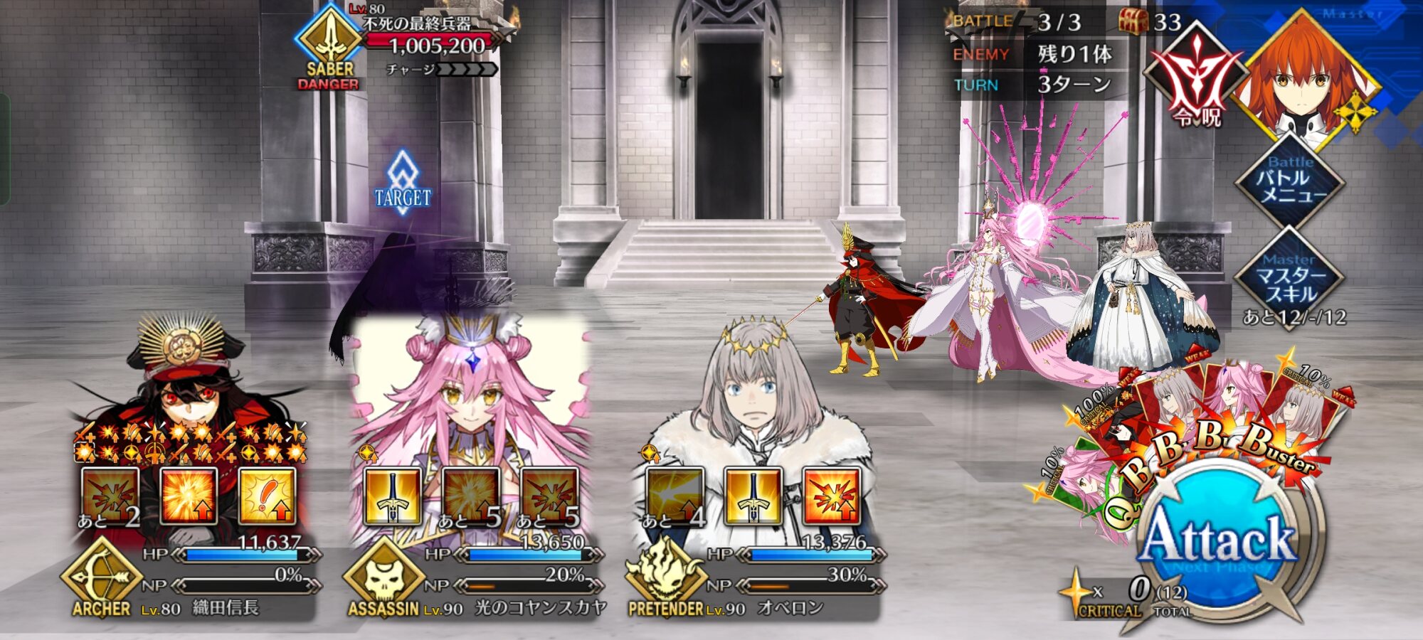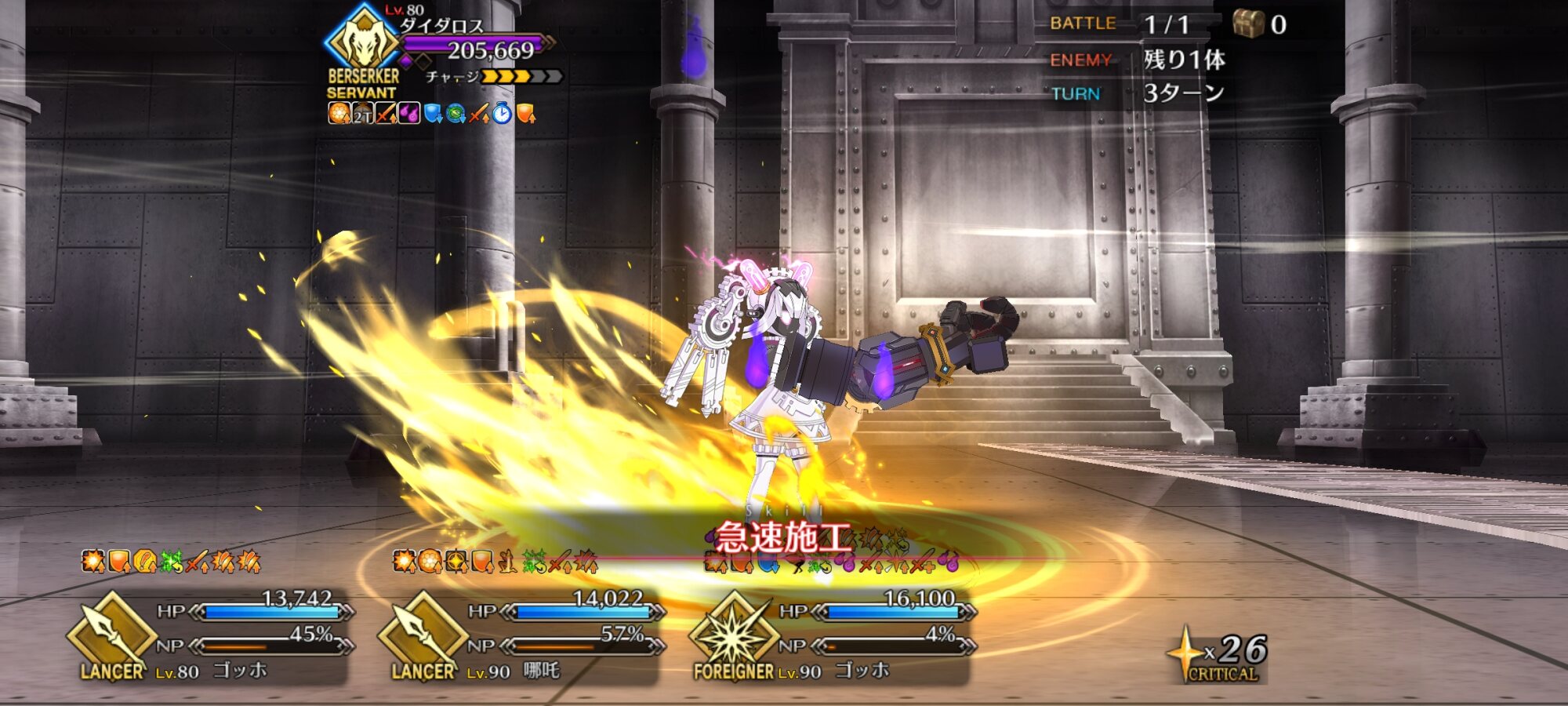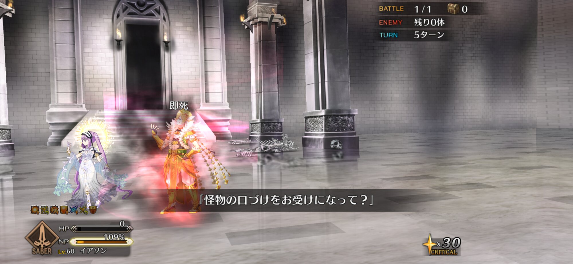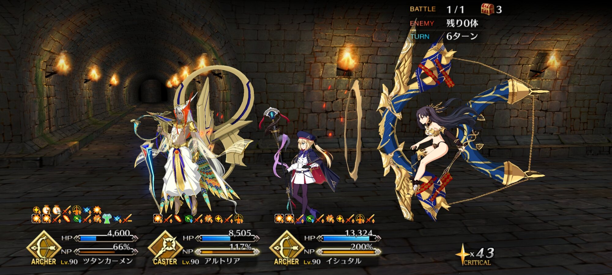 画像ややこしいですが、4枚目は3ターン目にメリュジーヌをスキル3で変身させただけですので…