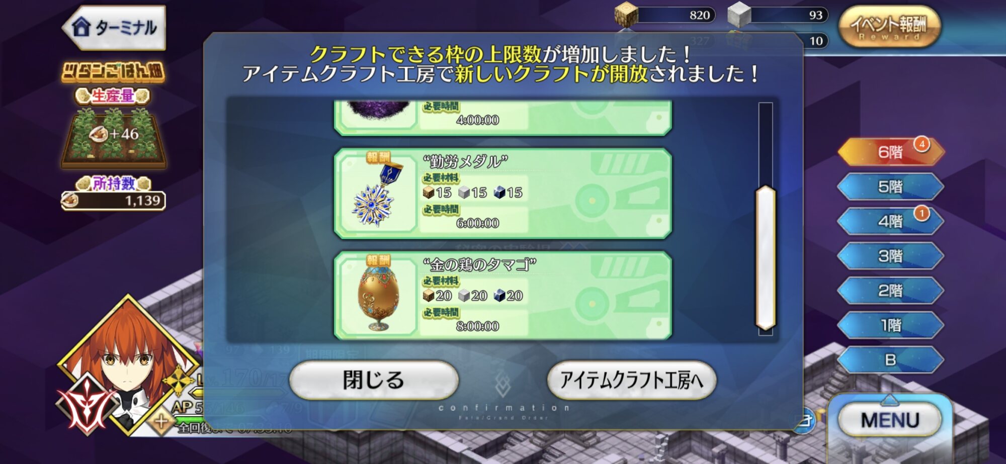 リコレで暴れてたから勘弁してもろてとりあえずクラフトは13時まで新しく取りかかれるから、皆は忘れずにゴッホちゃんに頼むんだぞー