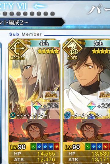 高倍率の耐性が複合とかそもそも無効でない限りはデバフ刺さるようになるはずあと一応は術のクラススコアとか術ギルの強さ次第で未凸特攻礼装で1Wも担当できるのもある