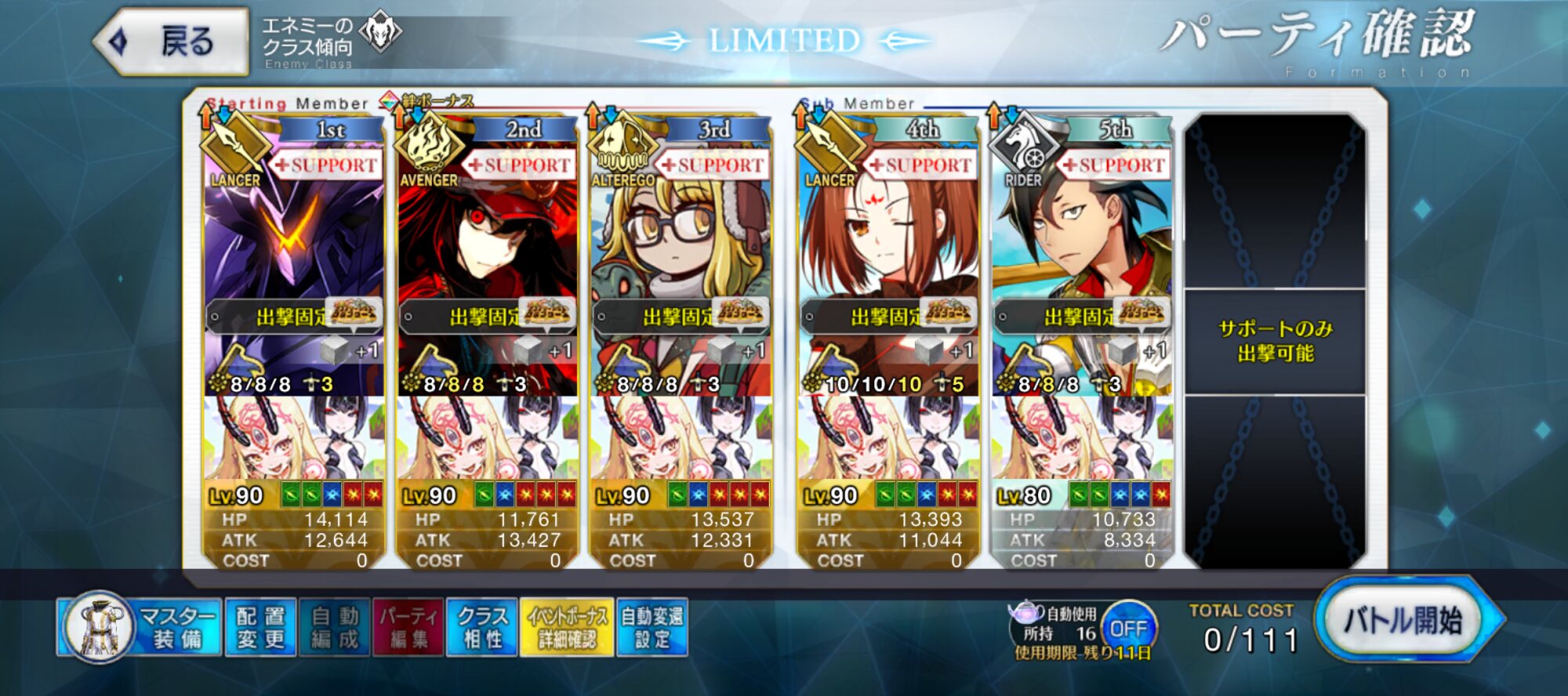 自分は自前のイベ凸礼装120ラシュ+オベロンで1ゲージブレイクさせて野良のイベ凸礼装モルガン(各種サポは自前)で済ませた