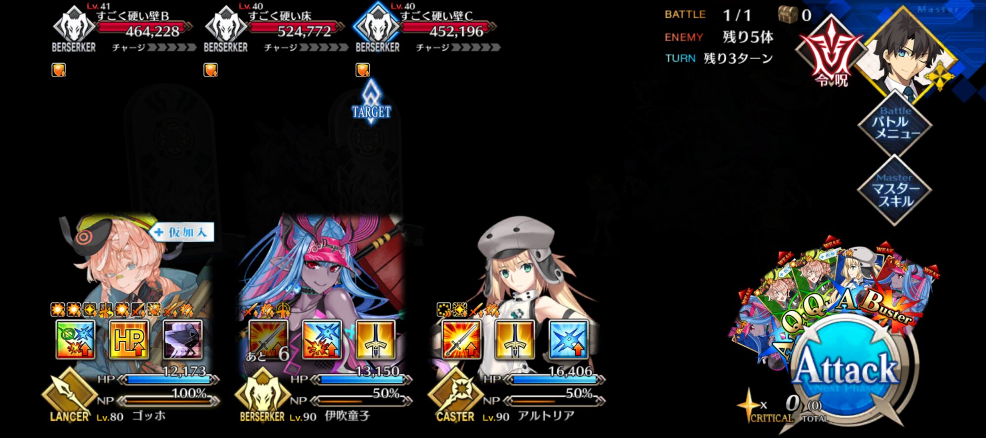 「尻(ケツ)」じゃなくて「決(けつ)」の可能性もまだあるはずだ!90++、シエル先輩と宝具1のプトレでも3ターン周回できるんだ。シエル先輩もプトレも便利すぎる