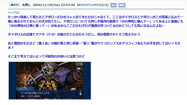 秘密をお漏らししちゃうツタンの呪いと秘密を暴露しちゃうダイダロスゴッホちゃんの幕間の伏線が回収されたし来年に向けて他のサーヴァント達の幕間で出てきた設定や単語もどんどんやって欲しいな